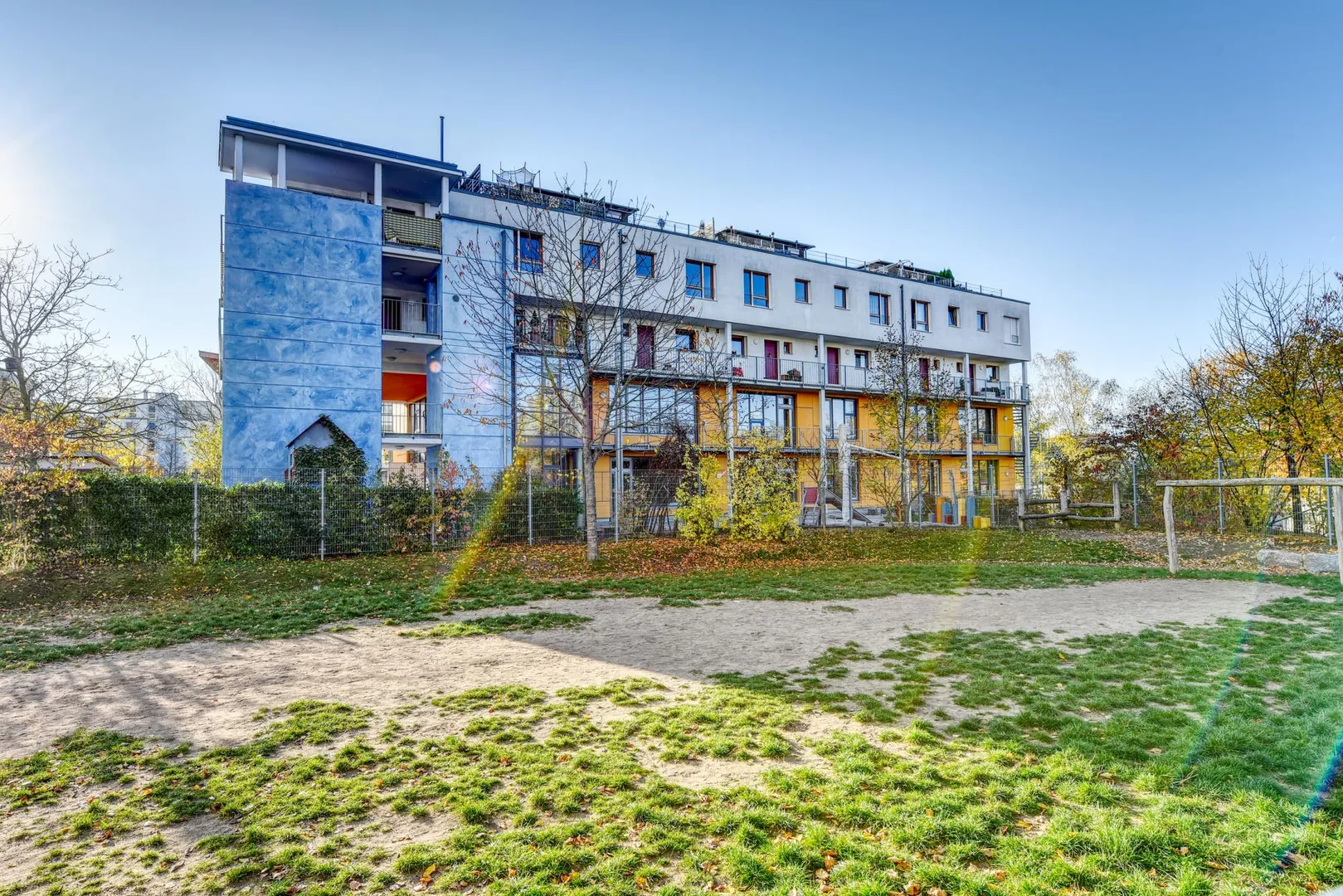 Das 8-Familien-Haus mit einer Kindertagesstätte im Erdgeschoss und 1. Obergeschoss wurde ca. 2003, freistehend, massiv, mit Vollwärmeschutz, 3-geschossig, komplett unterkellert, mit Tiefgarage sowie Dach-Terrassen erstellt.