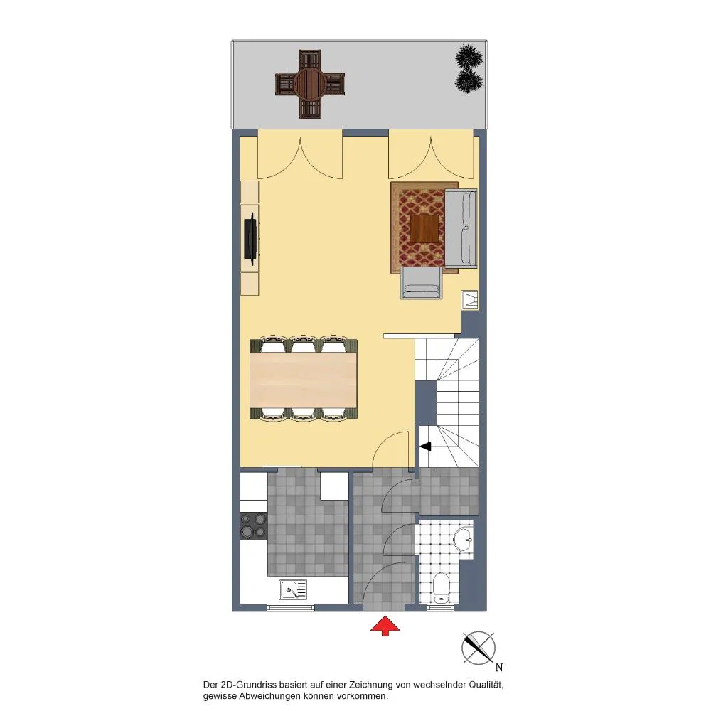 Diese außergewöhnliche 4-Zimmer-Dachgeschoss-Maisonette-Wohnung mit ca. 40 m² Dach-Terrasse und Fernblick befindet sich im 2. Obergeschoss.