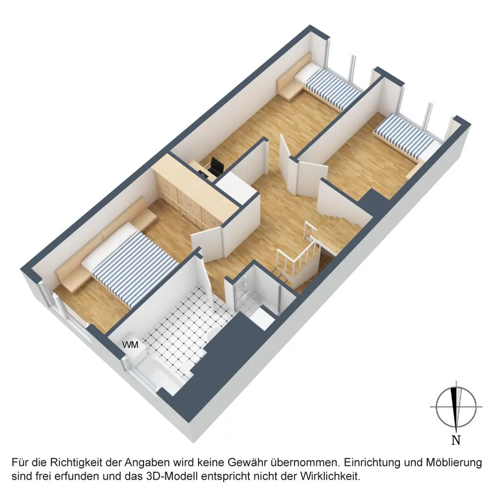 Im 3. Obergeschoss befinden sich 3 Zimmer sowie das Badezimmer.