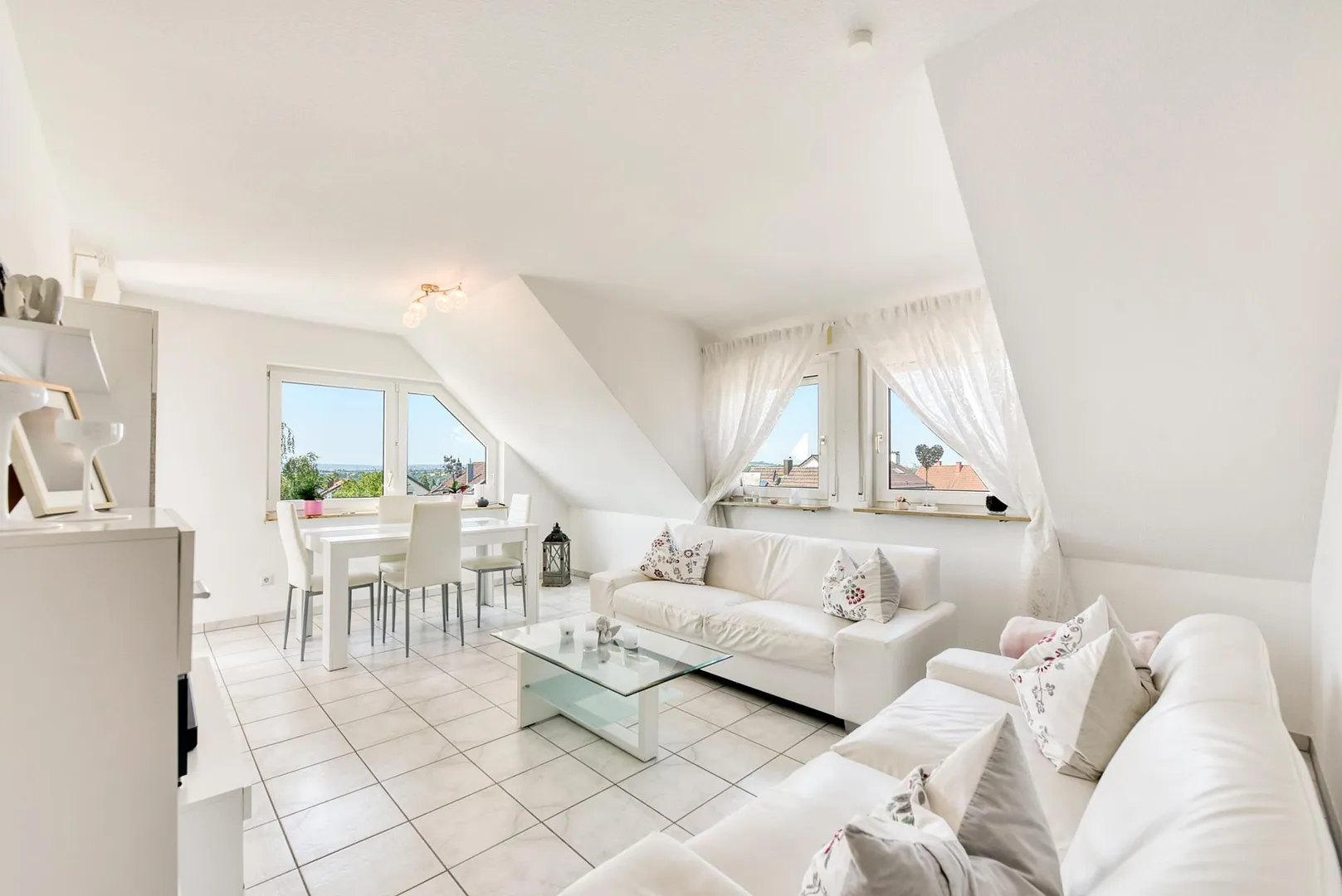 Der Wohnbereich, die Küche, das Schlafzimmer sowie der Balkon sind nach Süden ausgerichtet und verfügen über einen Fernblick.