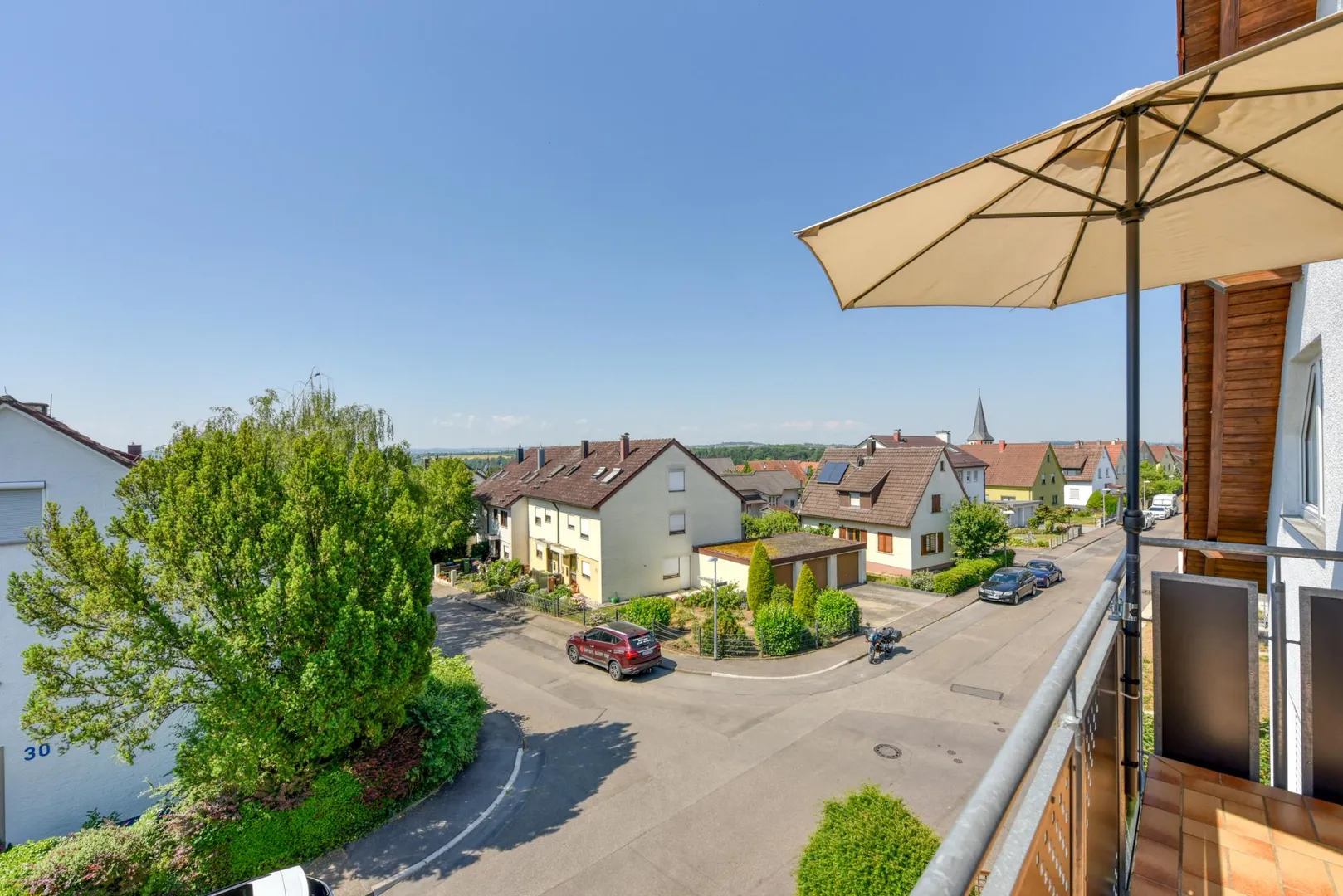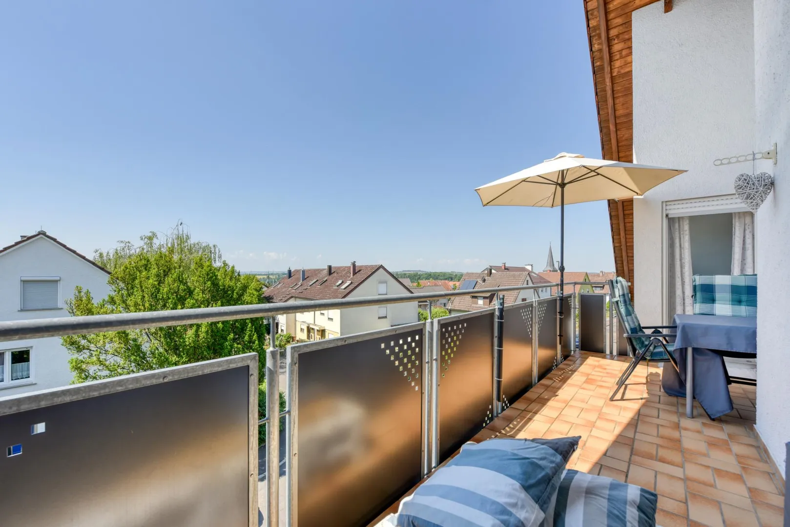 Der überdachte und ca. 8 m² große Süd-Balkon ist sowohl vom Wohnbereich als auch vom Schlafzimmer begehbar.