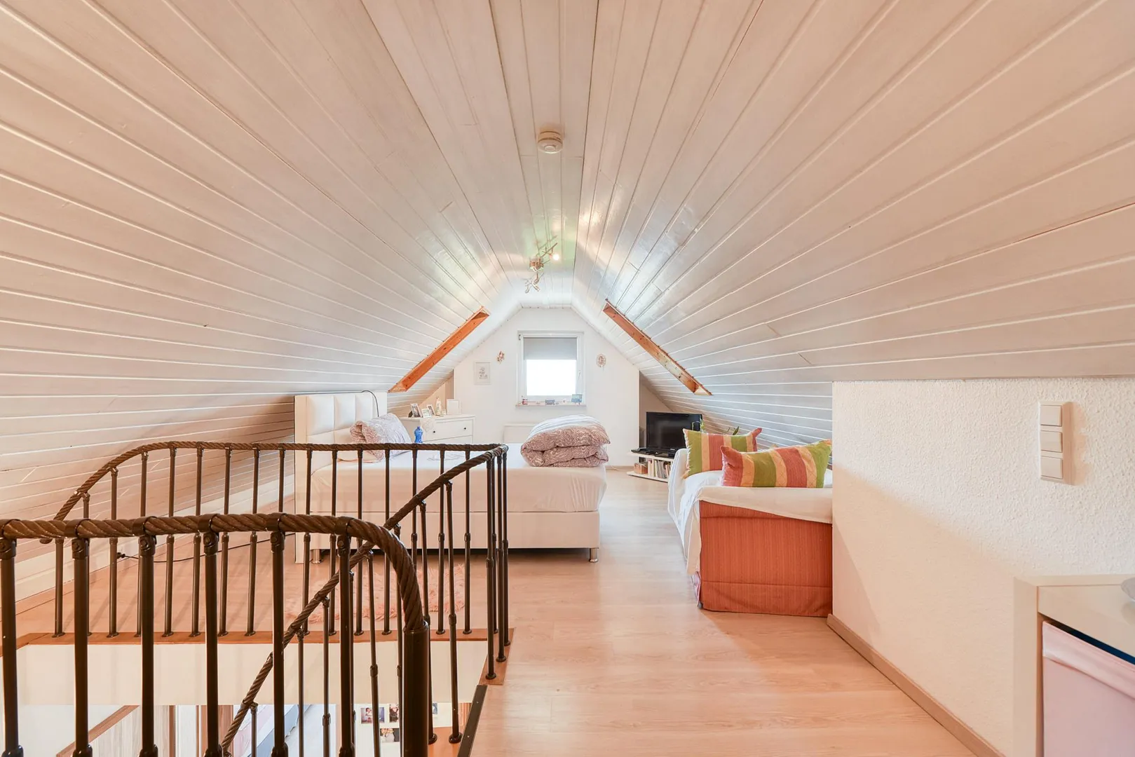 Diese extravagante und individuelle 4-Zimmer-Dachgeschoss-Maisonette-Wohnung mit offenem Studio befindet sich im 2. Obergeschoss.