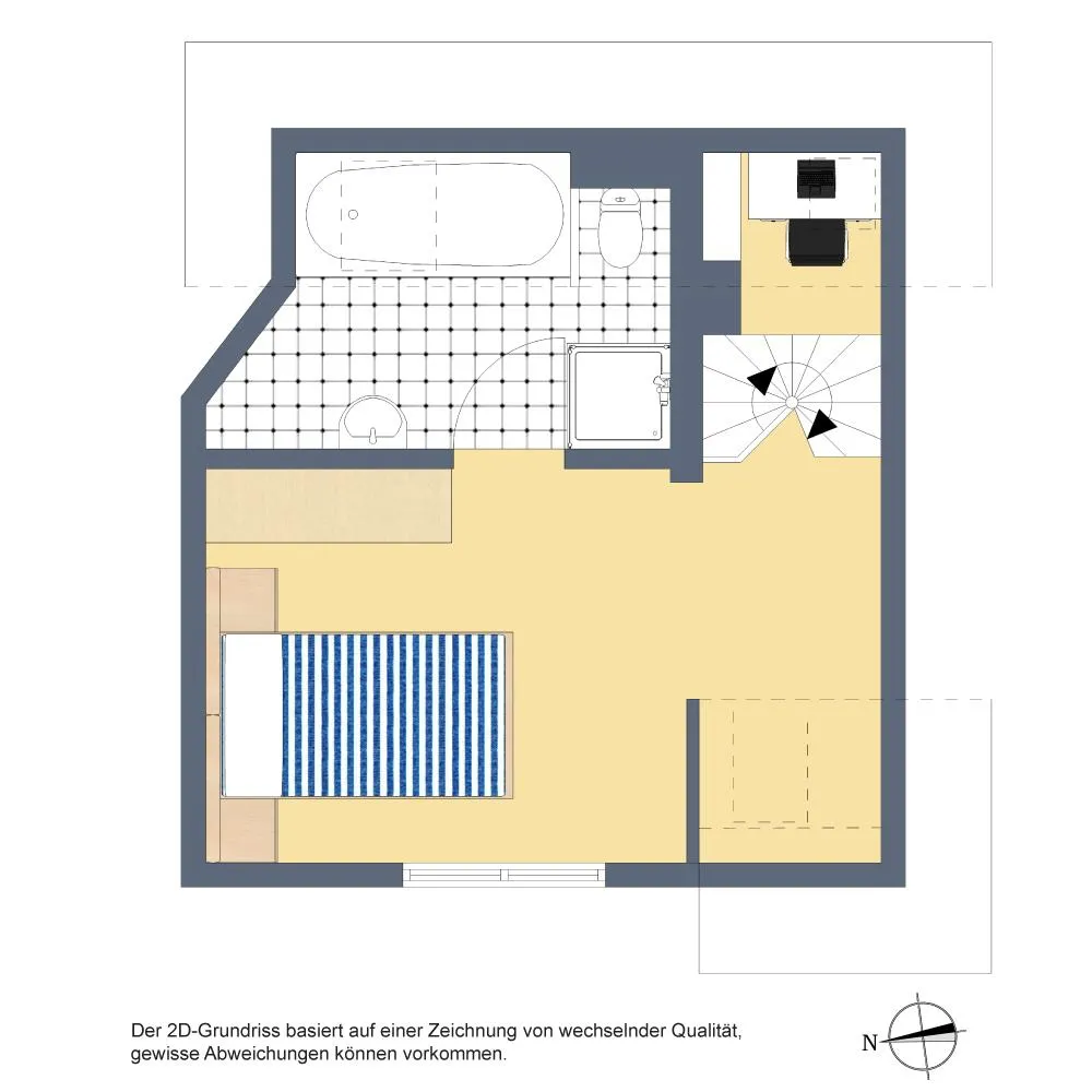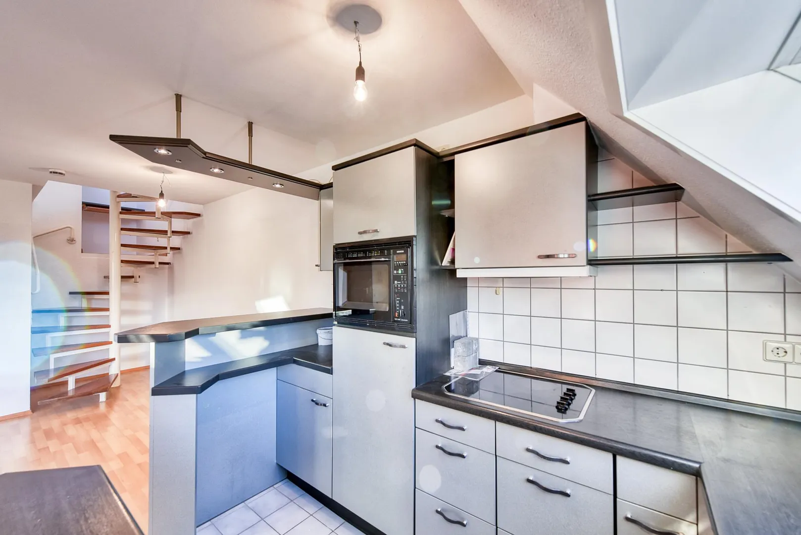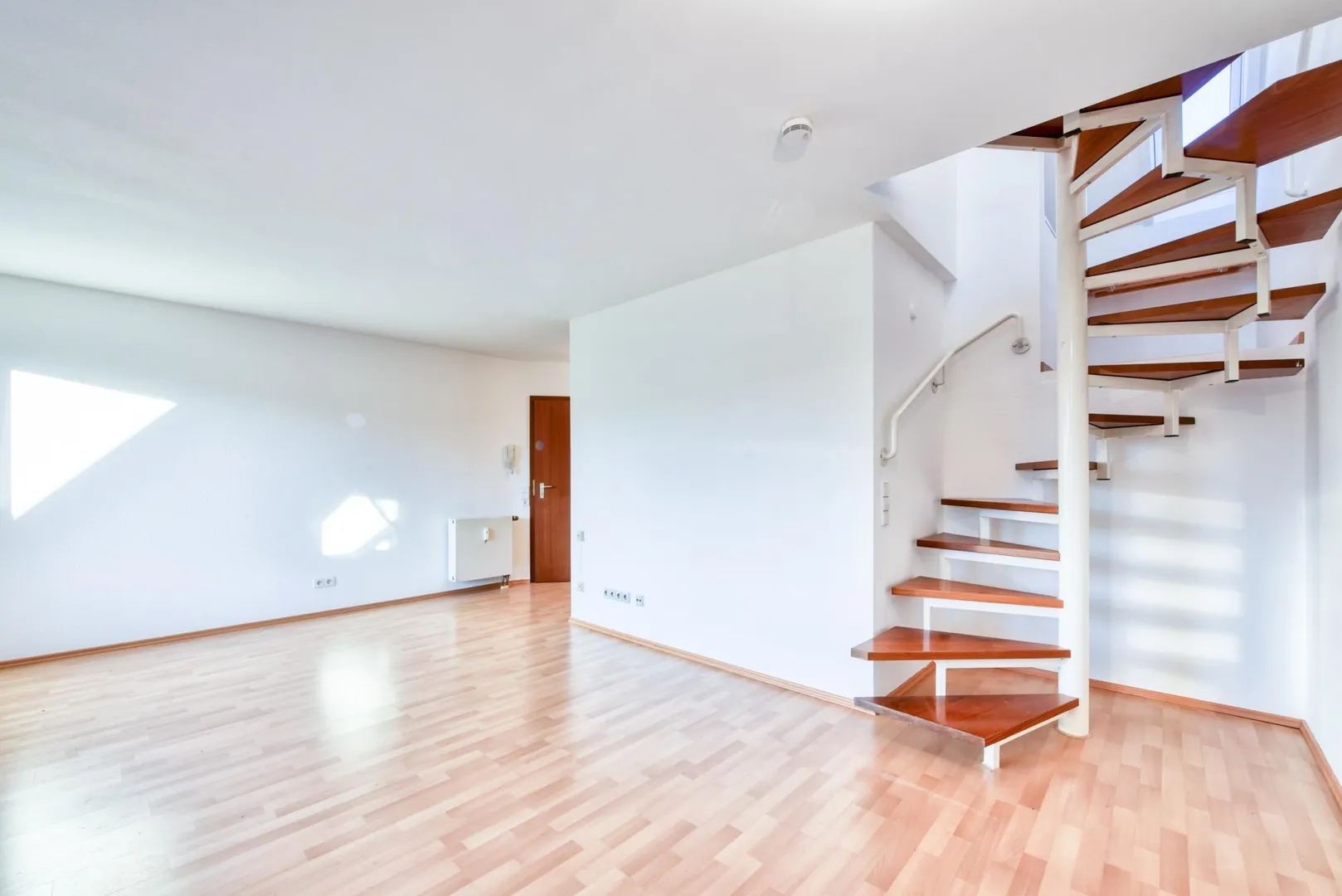 Im Bereich der Wendeltreppe gibt es quasi ein Podest auf dem eine kleine Arbeitsecke integriert werden kann.