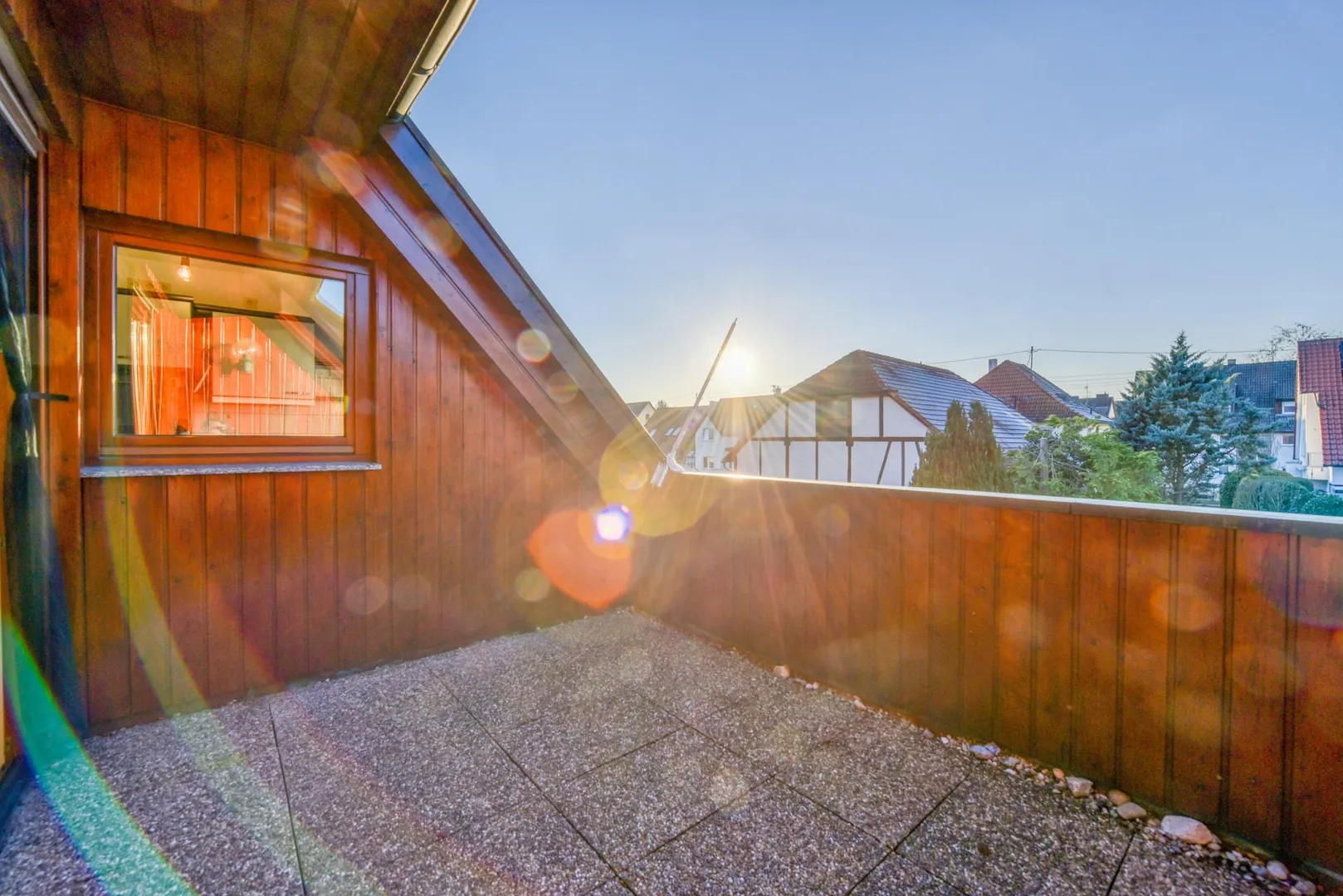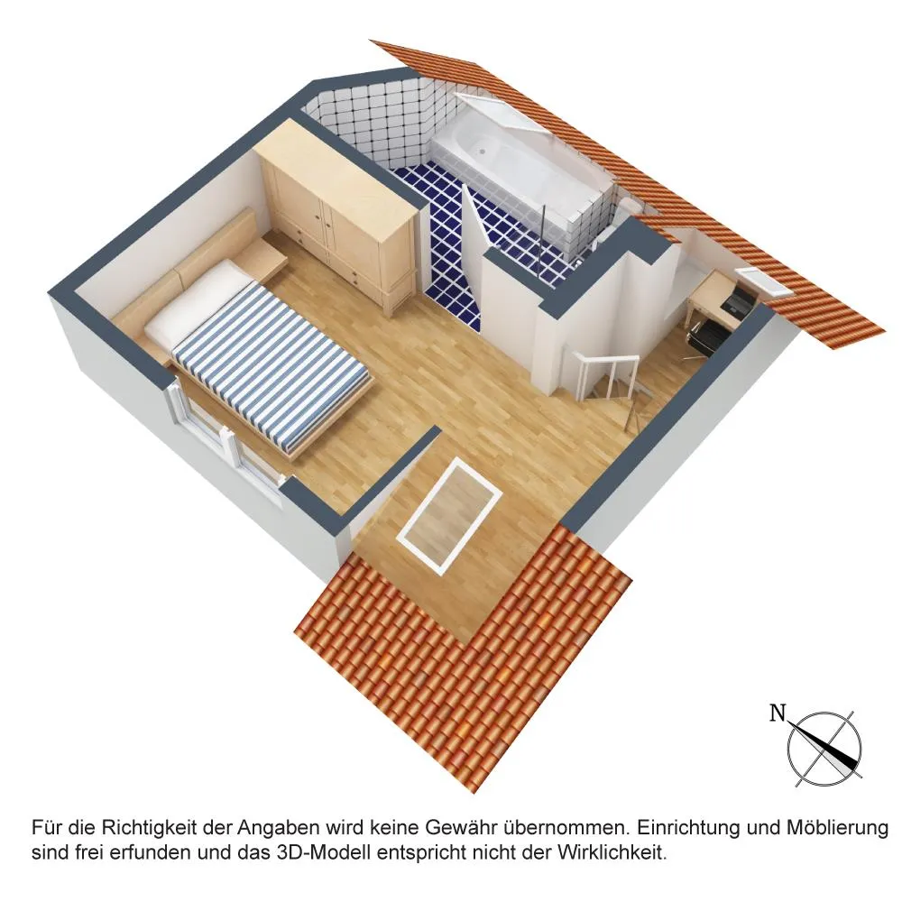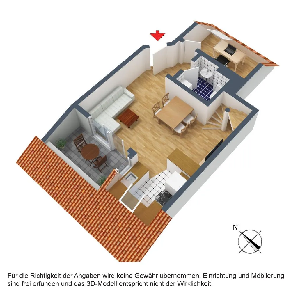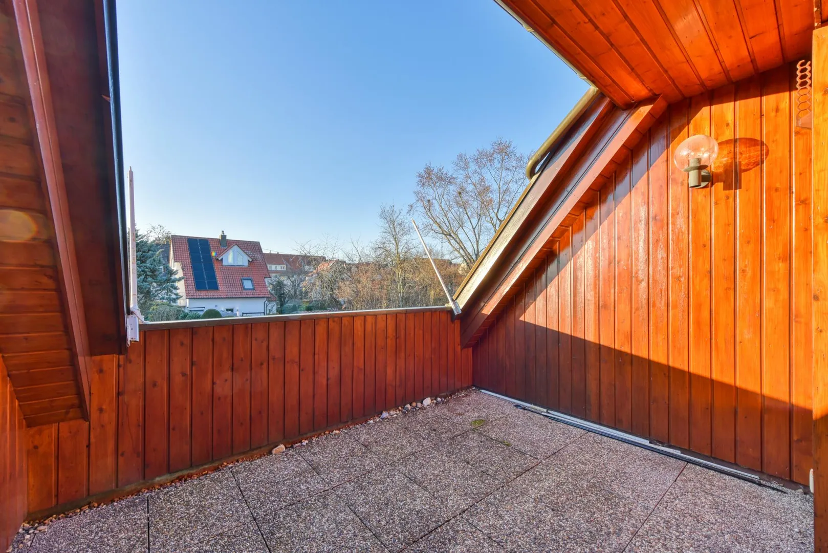 Der ca. 6,5 m² große Dacheinschnitt ist über den Wohnbereich begehbar.