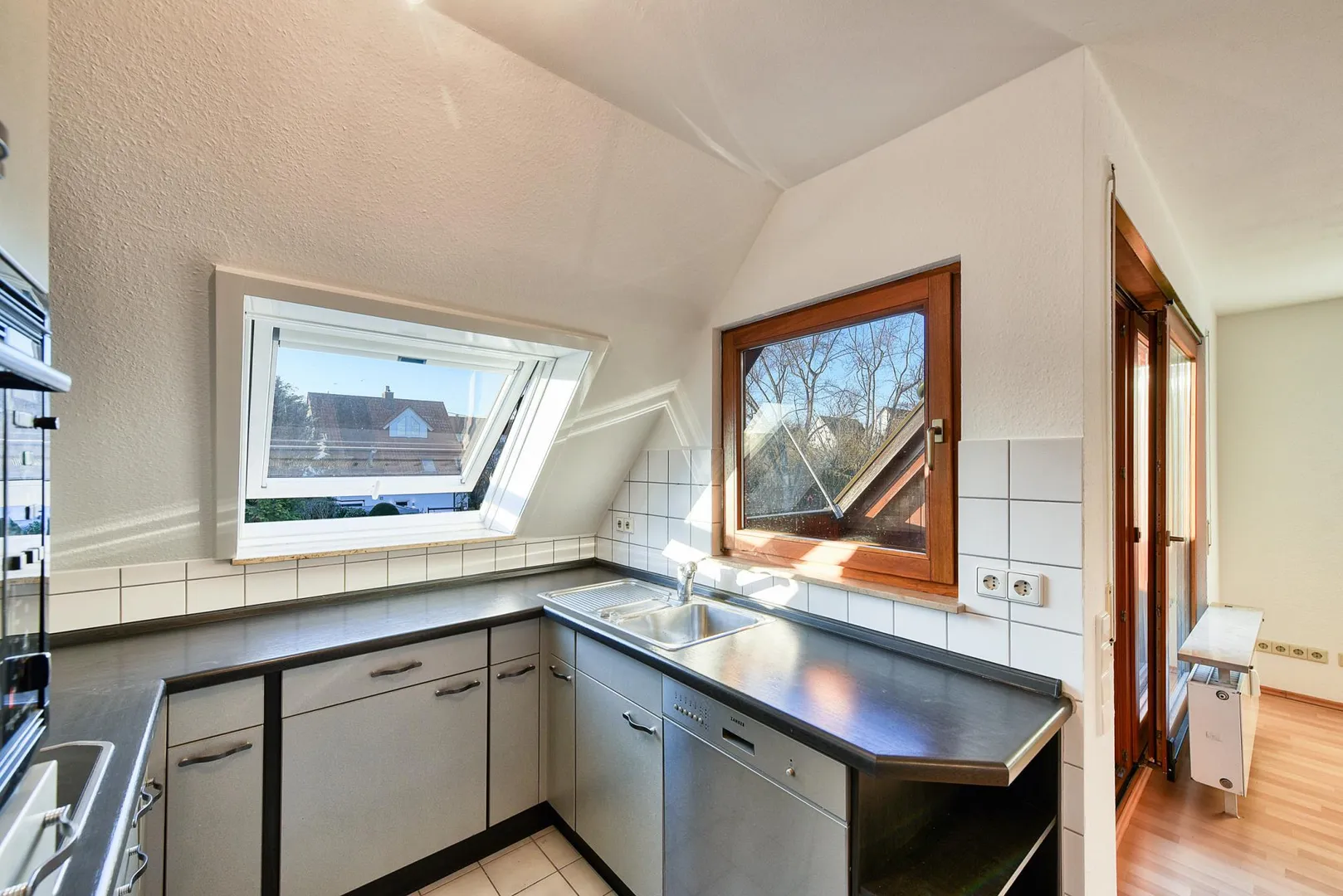 Diese offen gestaltete 3-Zimmer-Dachgeschoss-Maisonette-Wohnung befindet sich im 2. Obergeschoss.