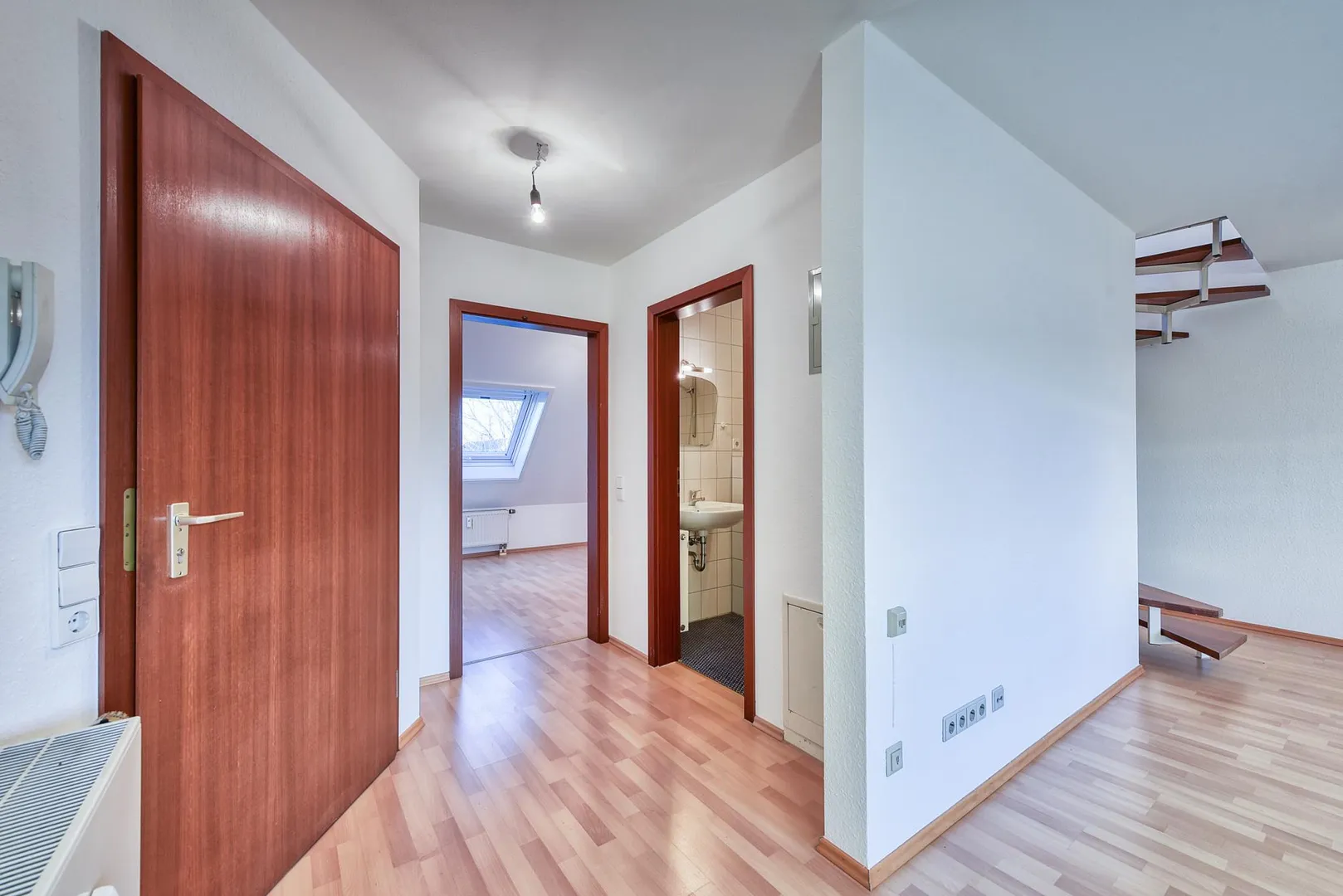 Der Flurbereich sowie die Zimmer sind mit Laminat ausgestattet. Im Studio wurde ein neuer Laminatboden verlegt.