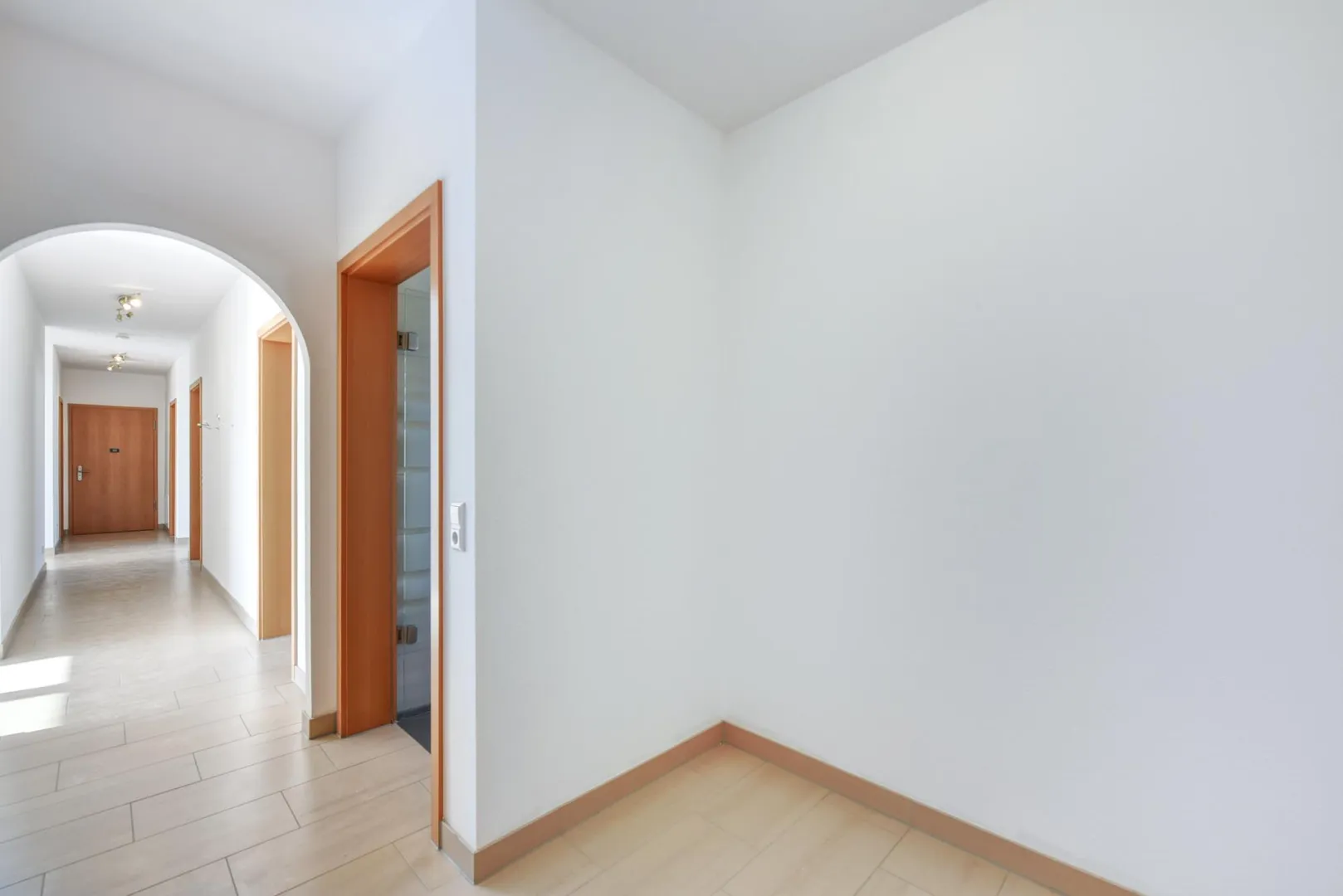 Alle Böden sind gefliest und mit Fußboden-Heizung ausgestattet. Die Rollläden sind elektrisch. Die Wände sind mit Raufasertapeten tapeziert und frisch, weiß gestrichen.