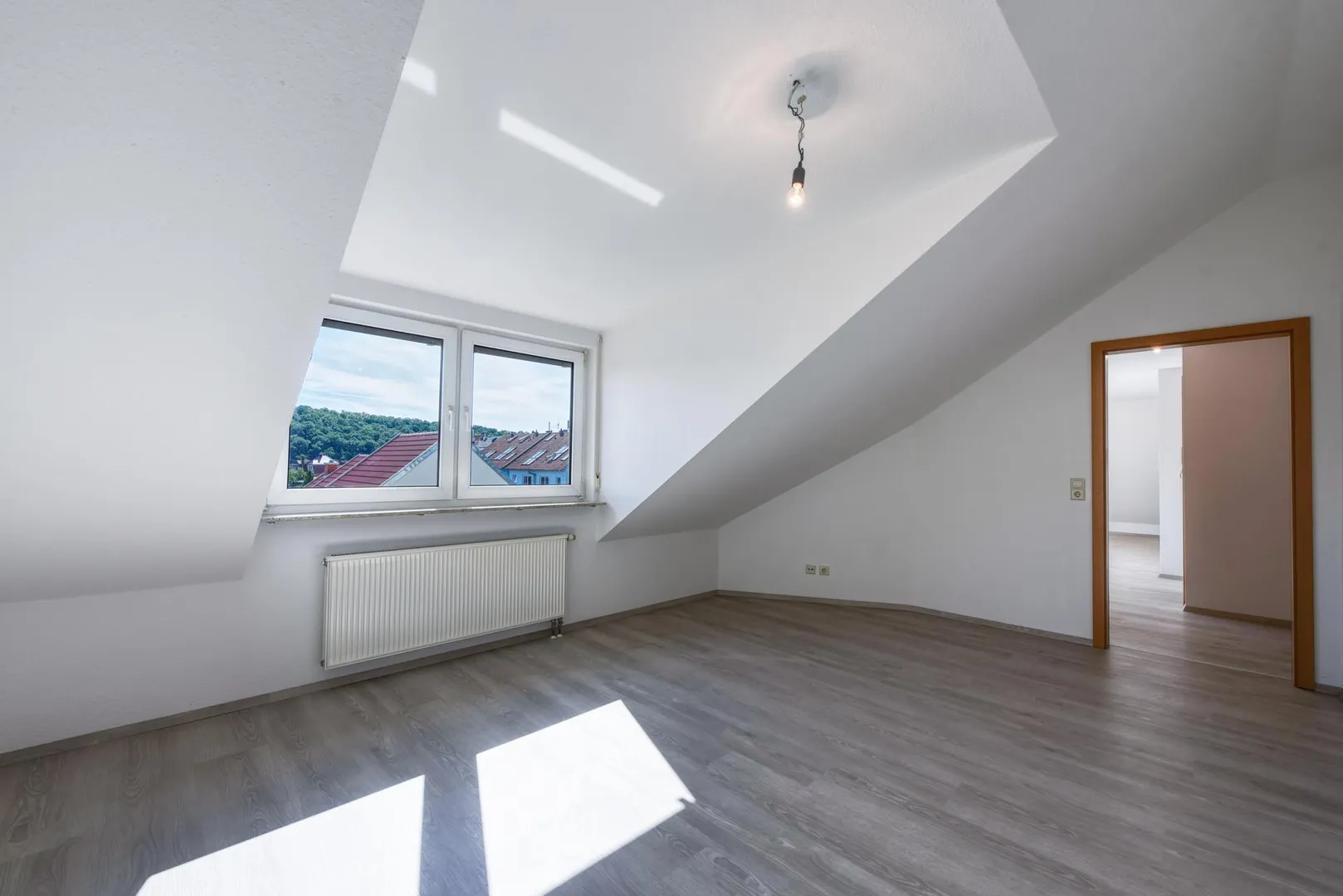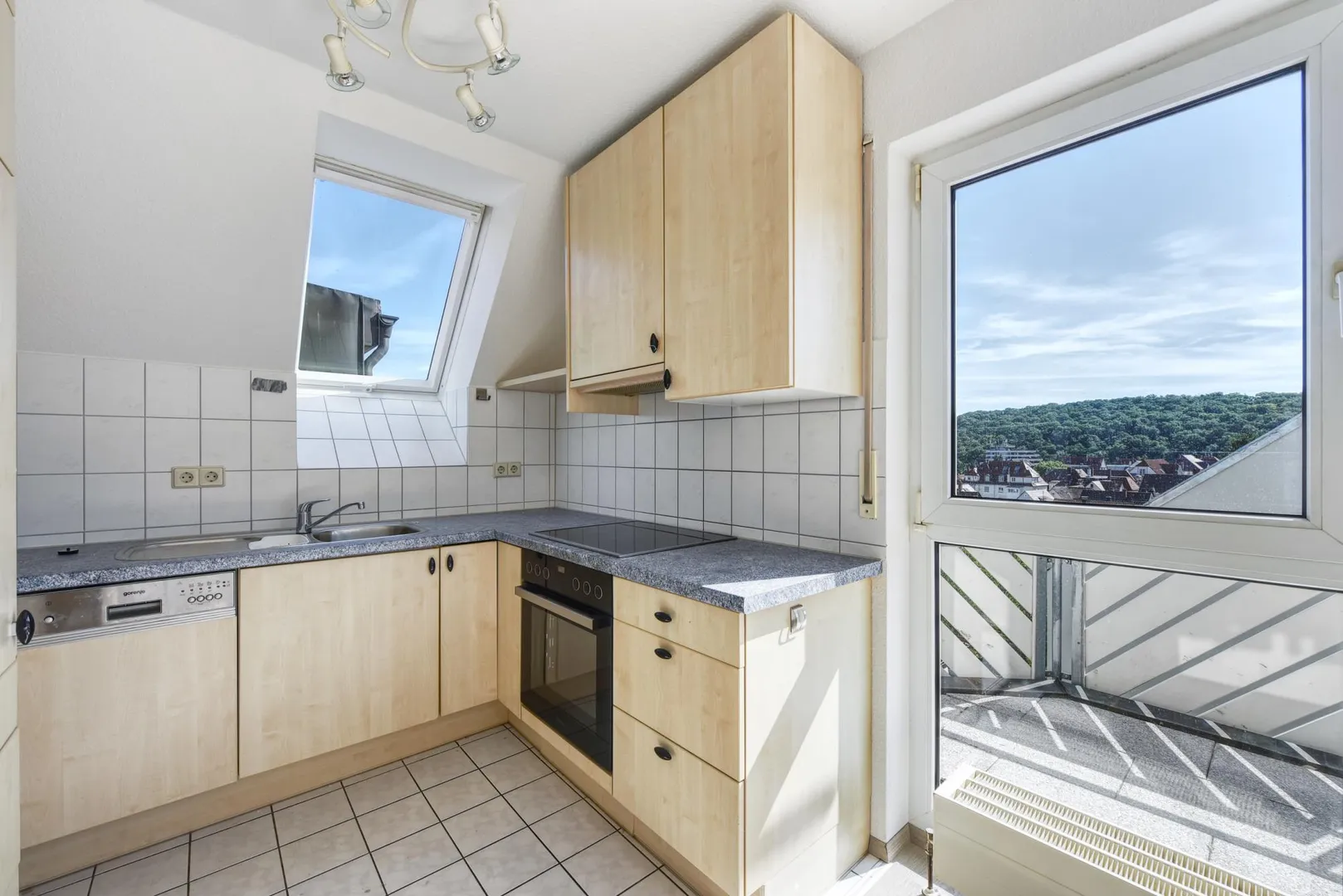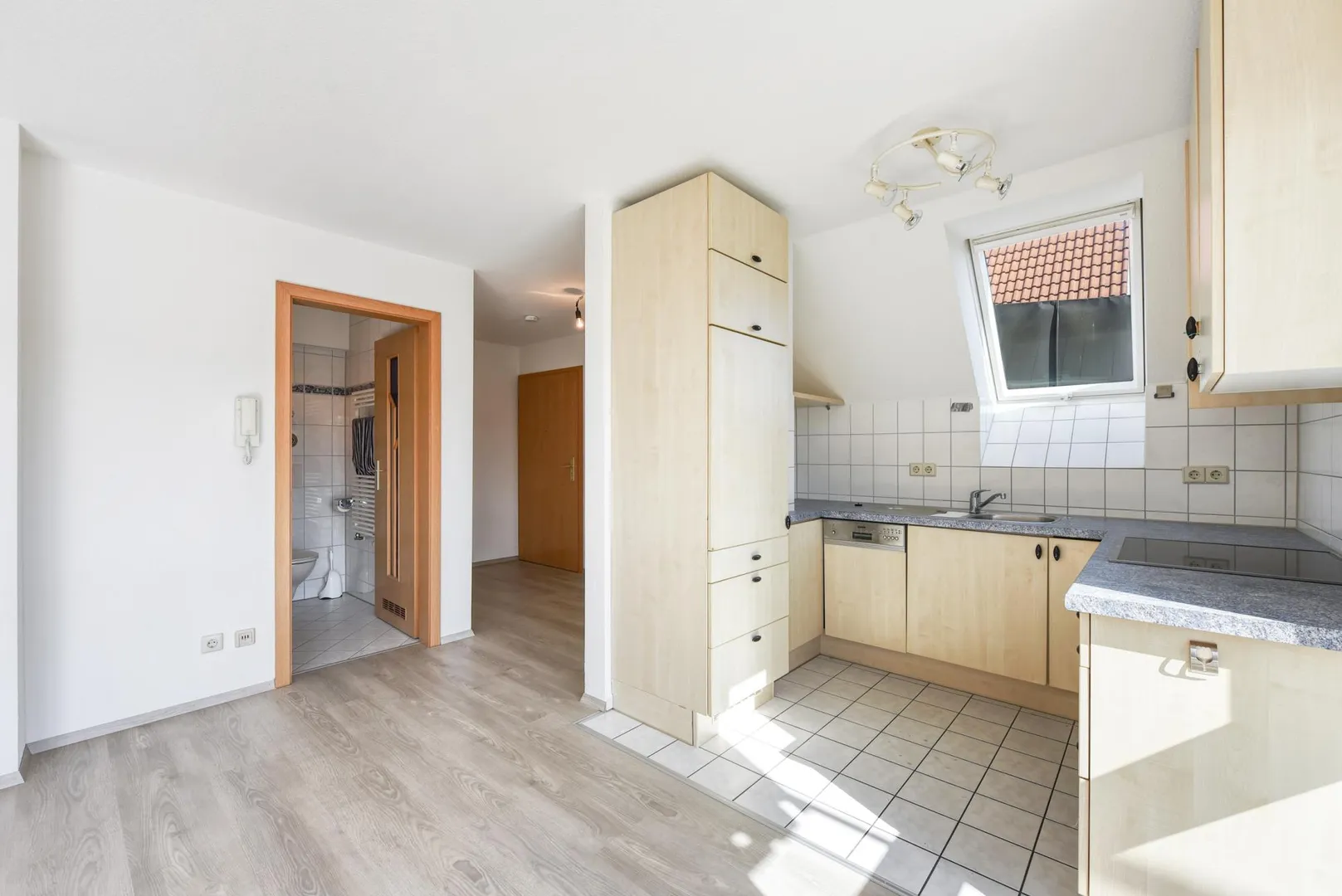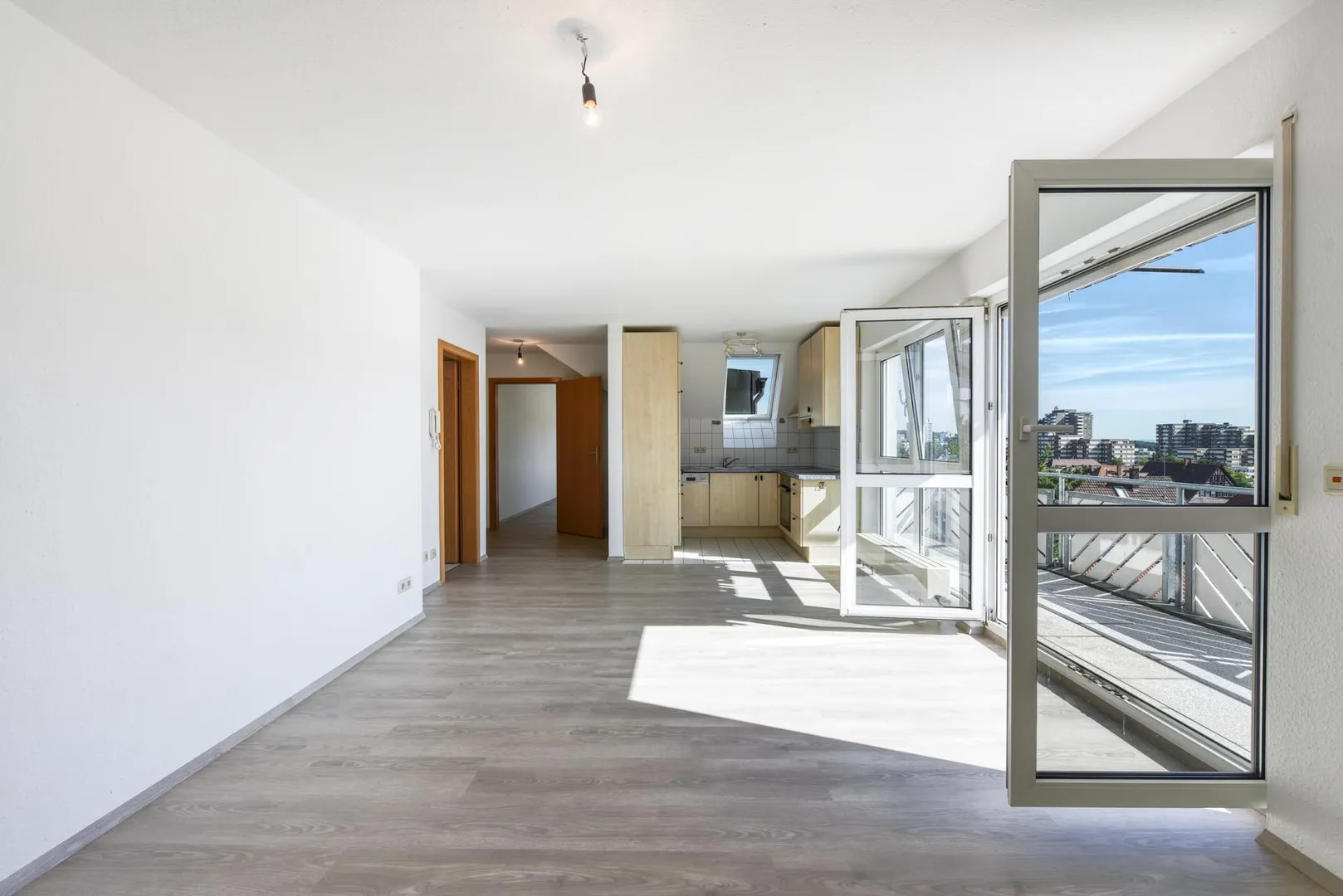 Diese gepflegte 2-Zimmer-Dachgeschoss-Wohnung mit Ost-Balkon und Fernblick befindet sich im 2. Obergeschoss.