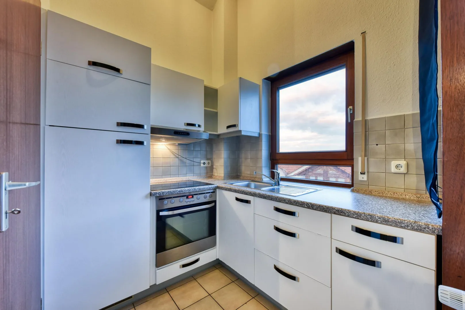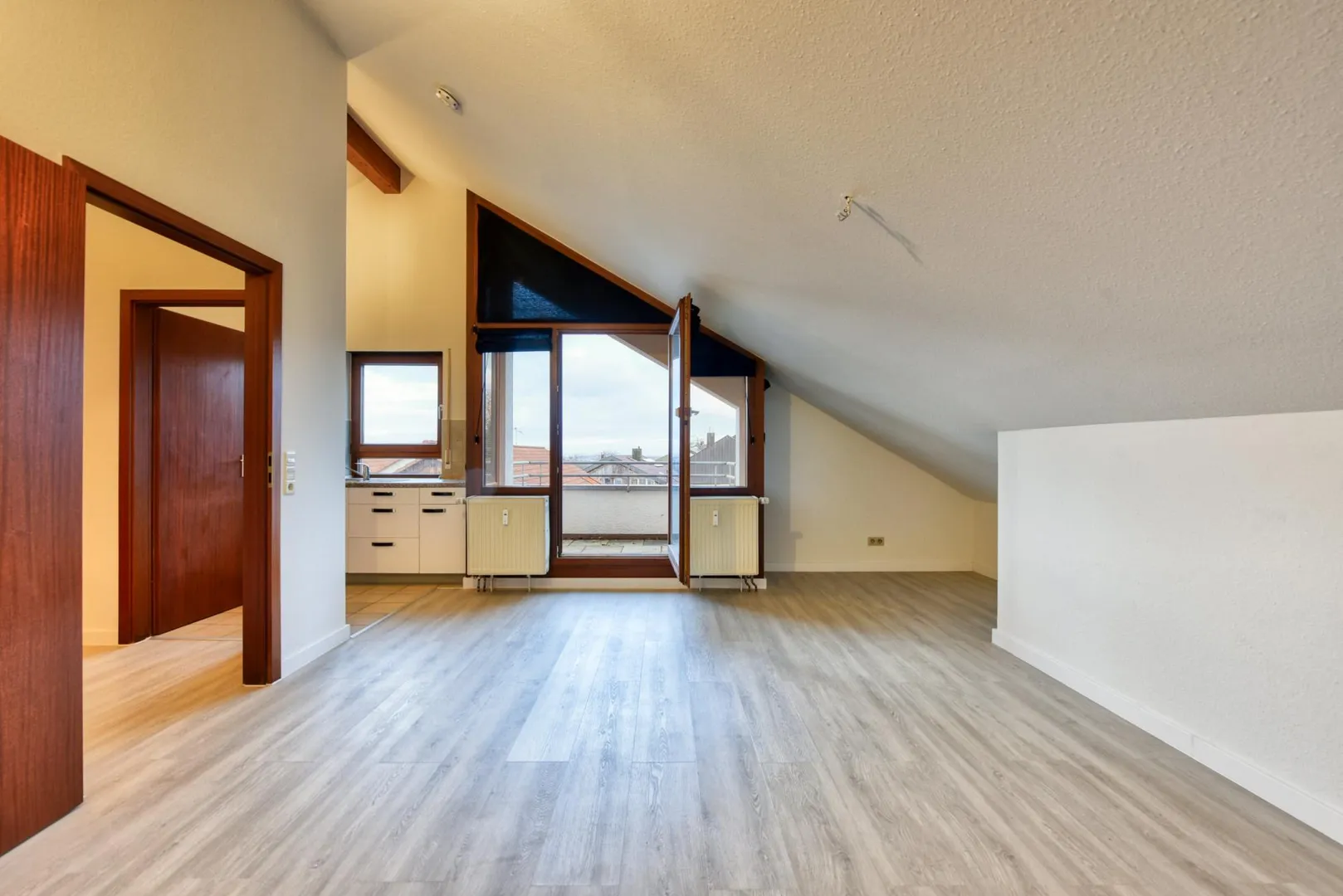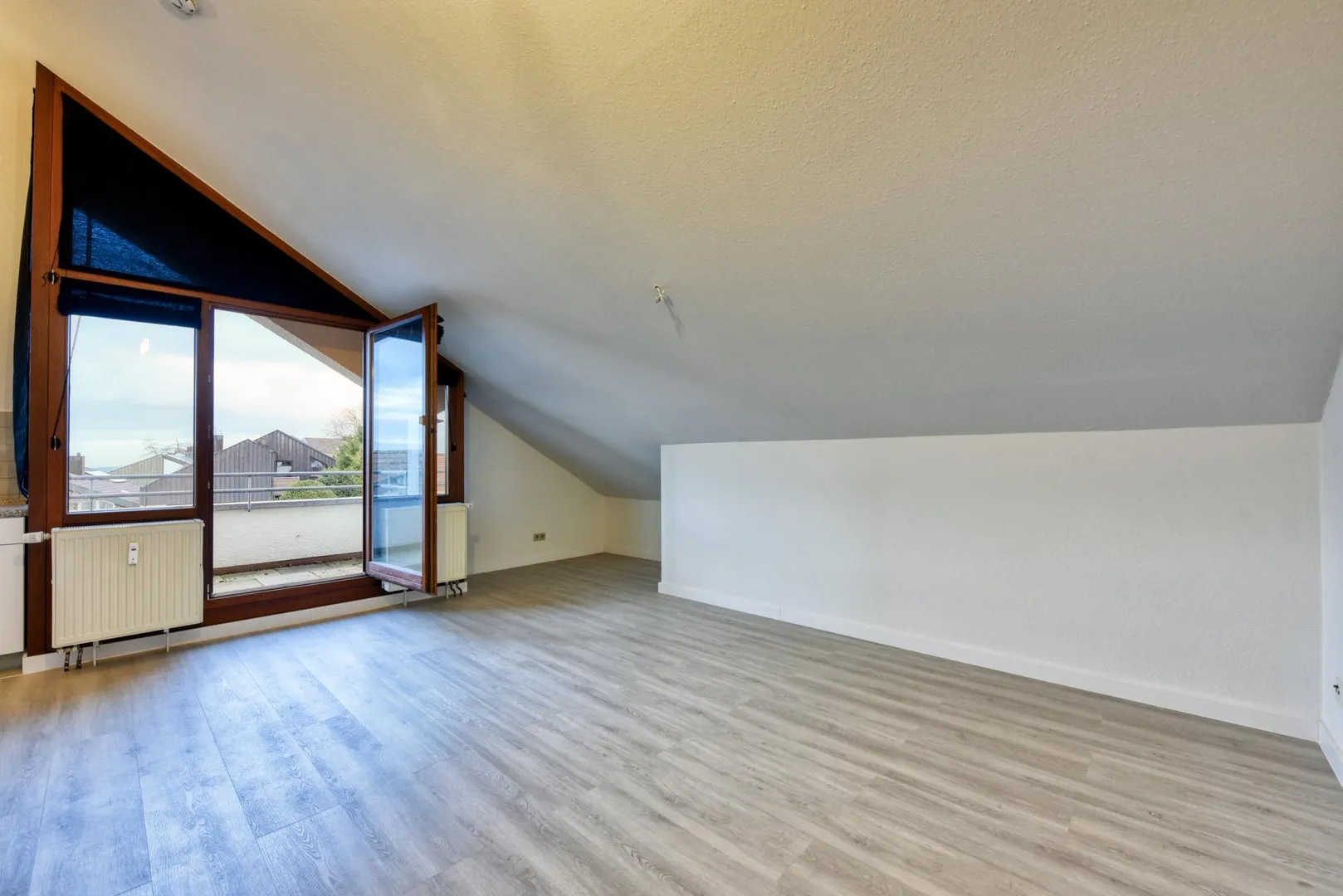 Diese gemütliche und frisch renovierte 1-Zimmer-Dachgeschoss-Wohnung mit Balkon und Fernblick befindet sich im 2. Obergeschoss.