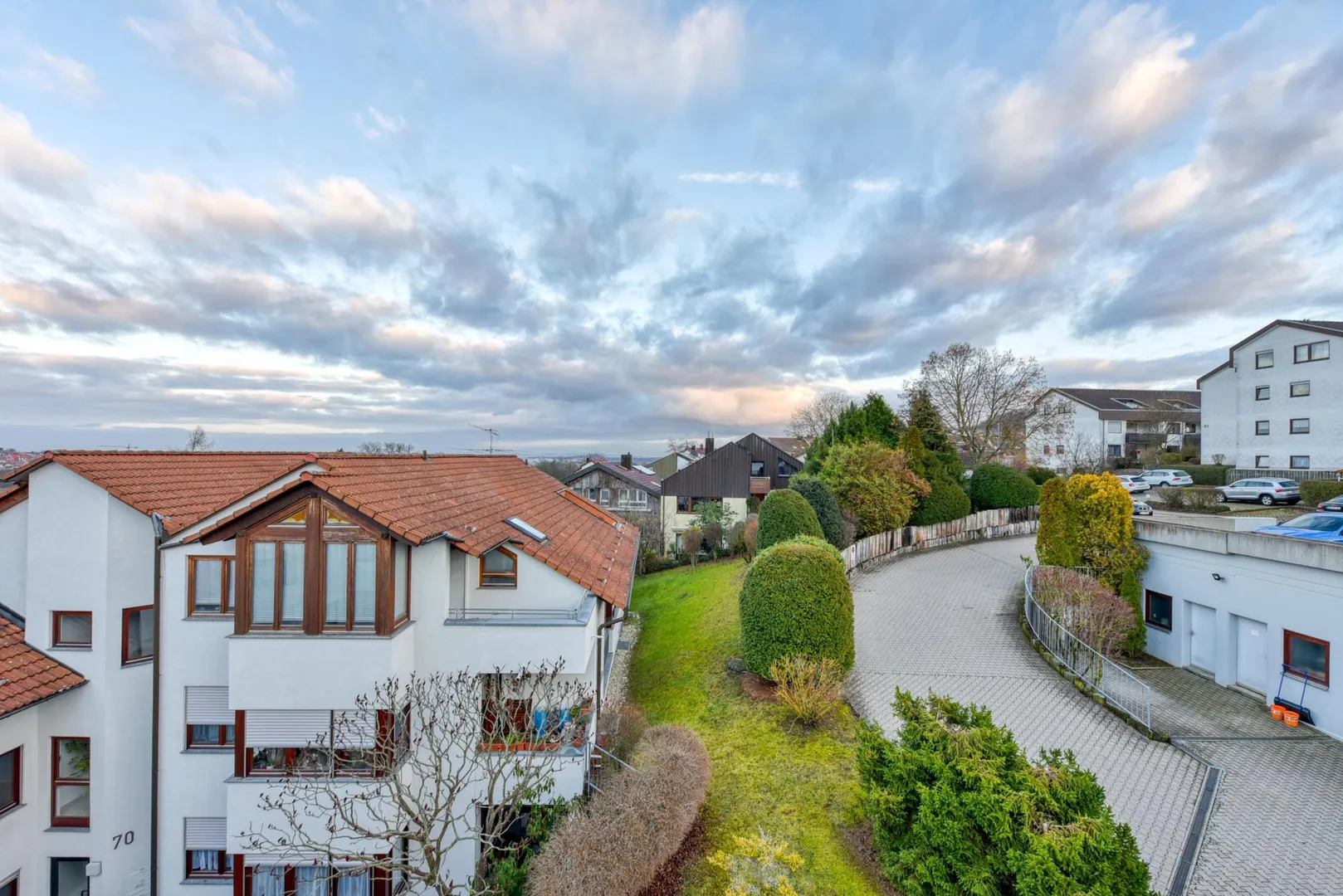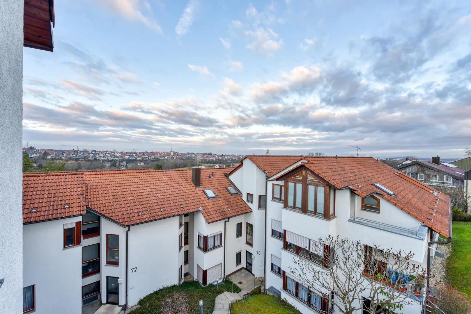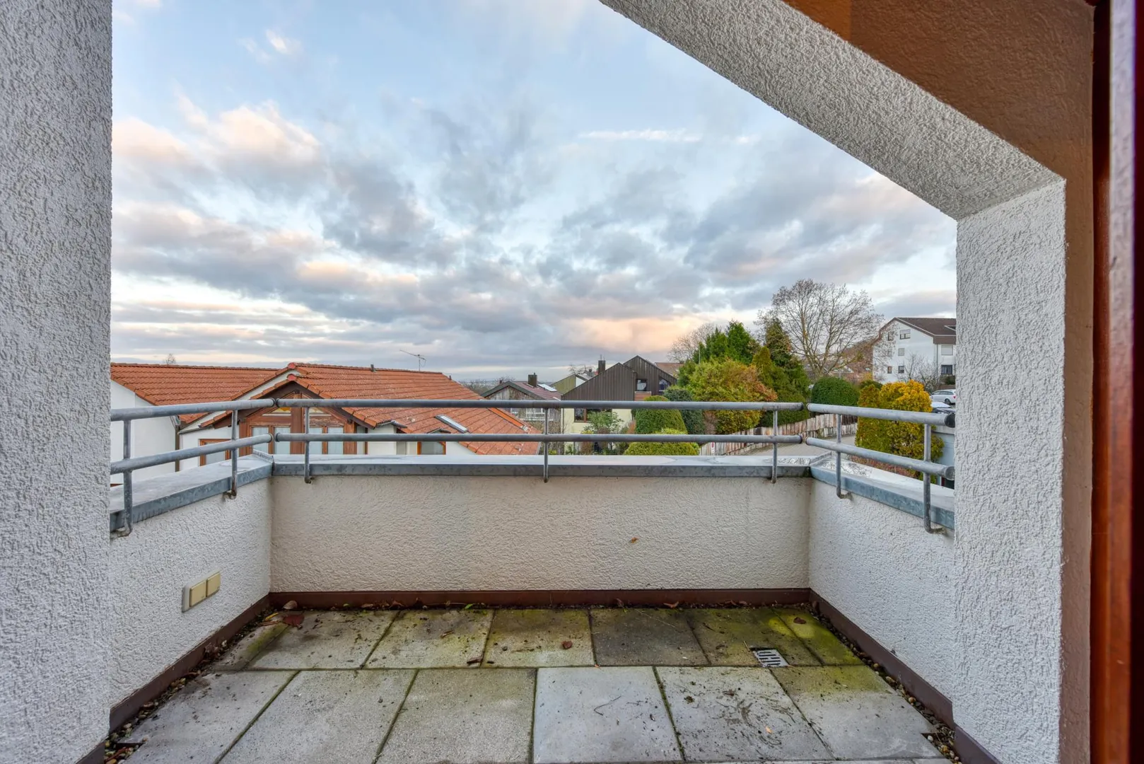 Der knapp 4 m² große und teilweise überdachte Ost-Balkon verfügt über einen Fernblick.
