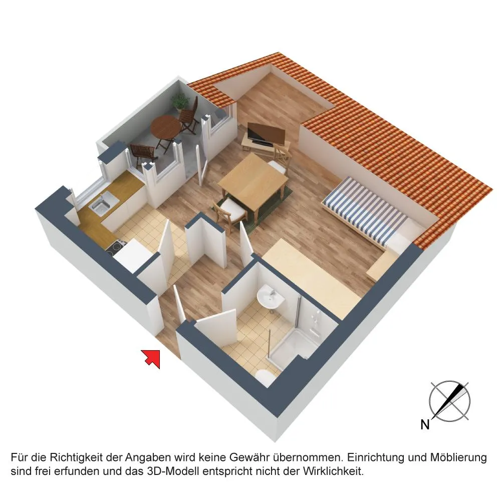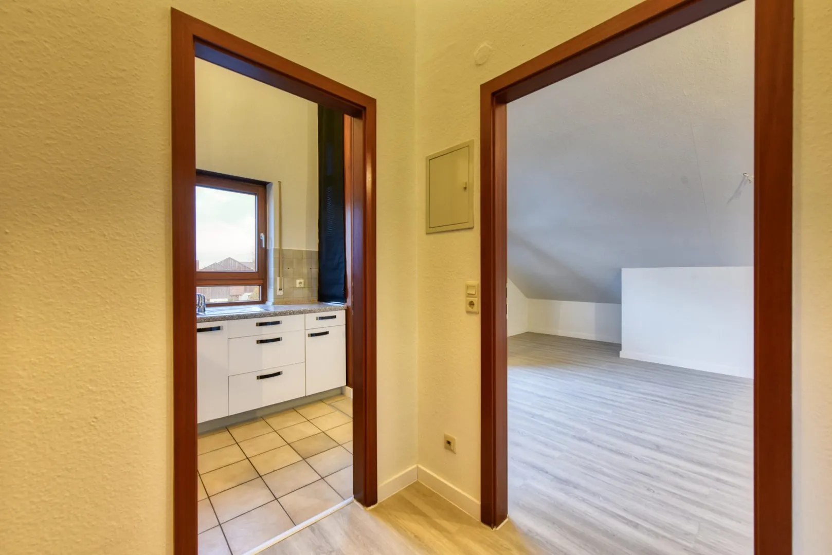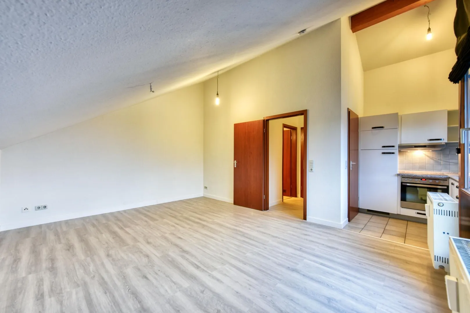 Die Wohnung ist zum Dach-First offen. Die maximale Raumhöhe beträgt ca. 3,50 Meter.