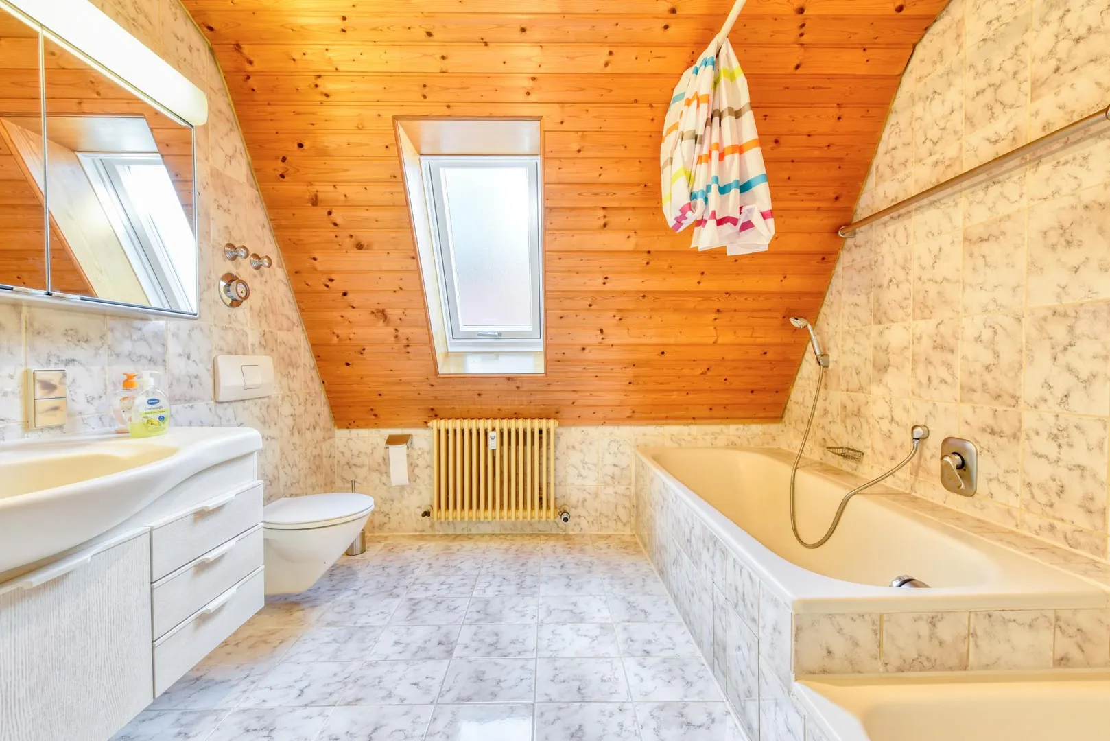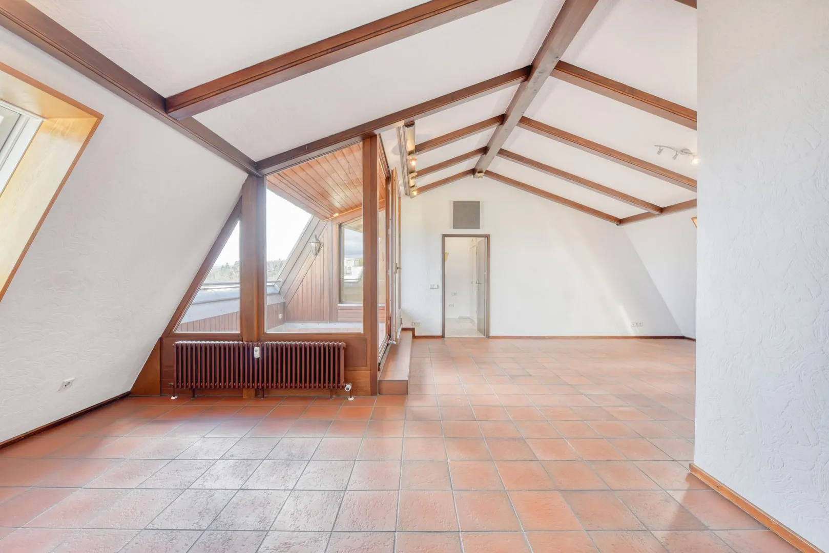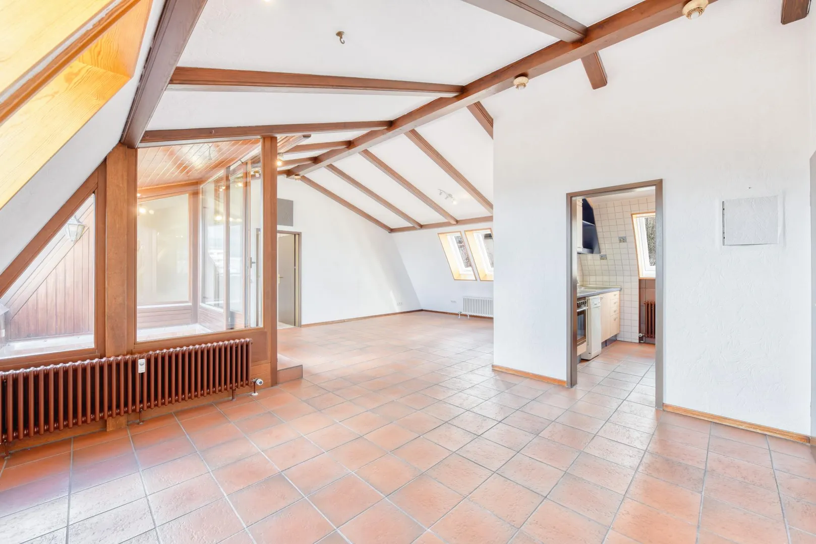 Die Böden sind gefliest. Die Dachflächen-Fenster wurden aktuell mit neuen Kunststofffenstern ausgestattet.