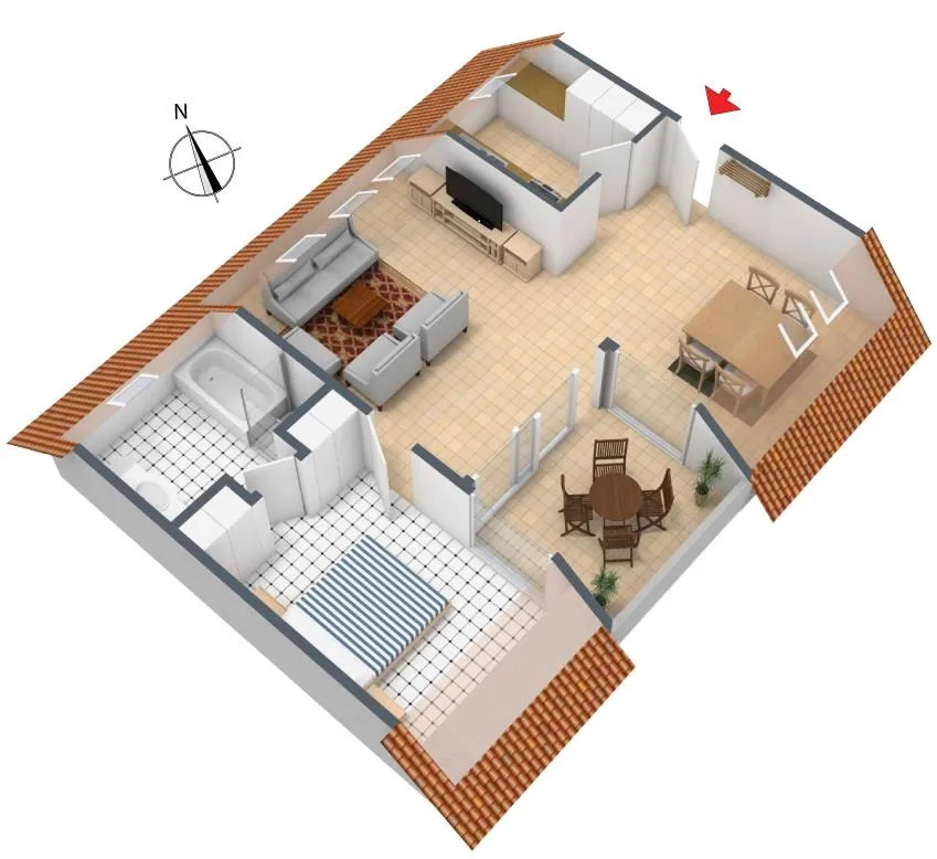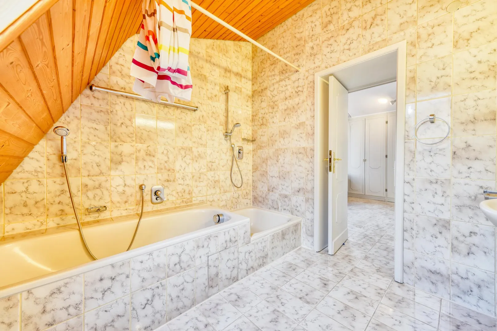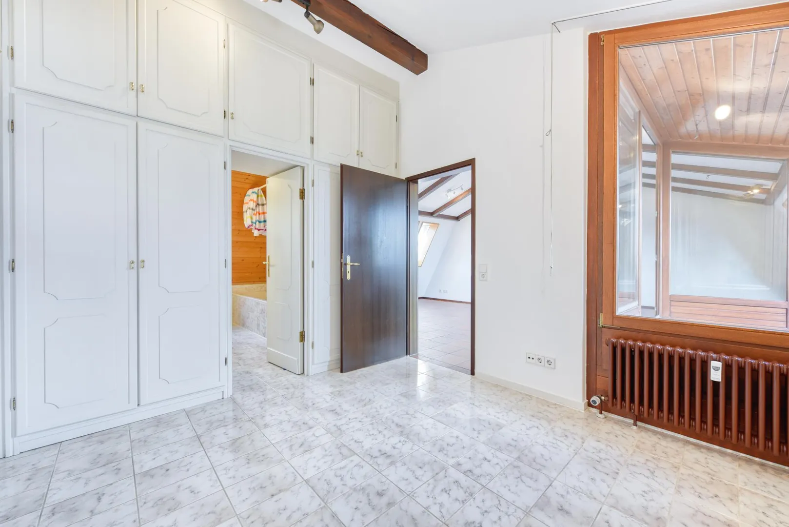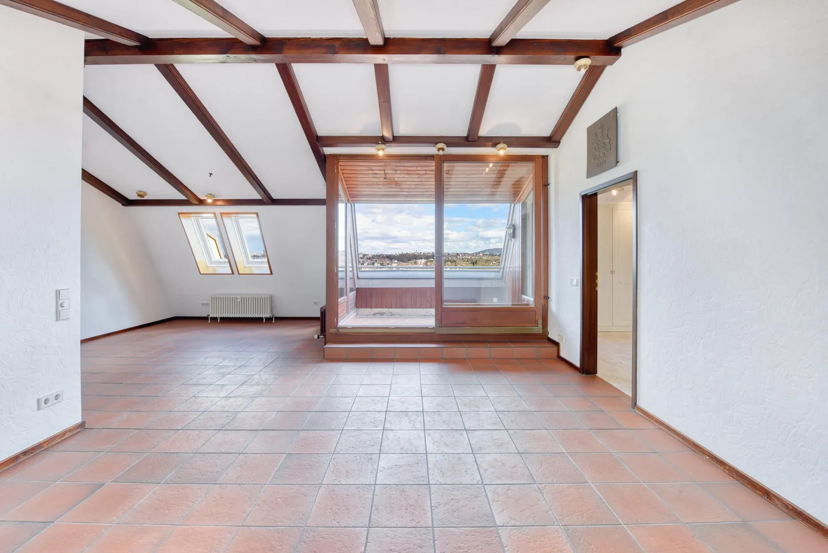 Die Böden sind gefliest. Die Dachflächen-Fenster wurden aktuell mit neuen Kunststofffenstern ausgestattet.