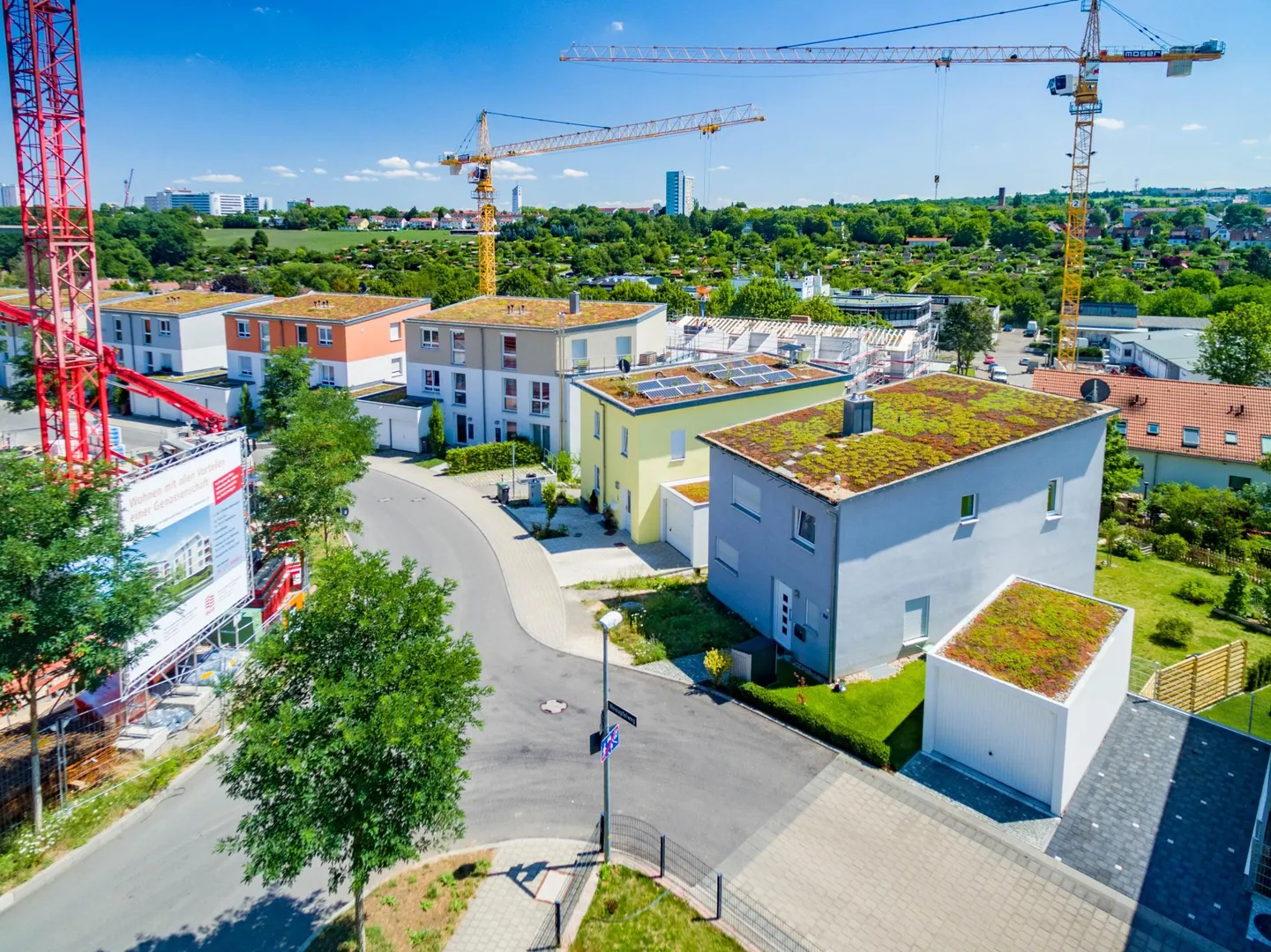 In direkter Umgebung befinden sich Grünflächen mit Schrebergärten, Wiesen und Feldern.