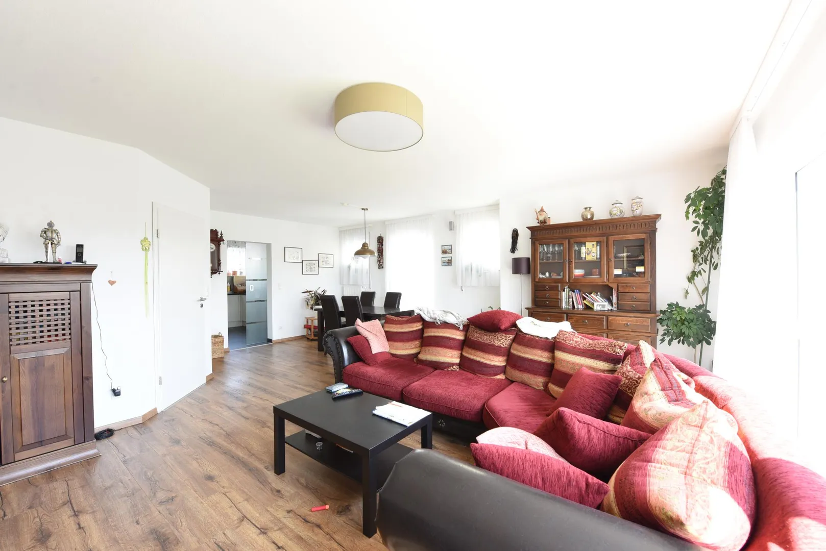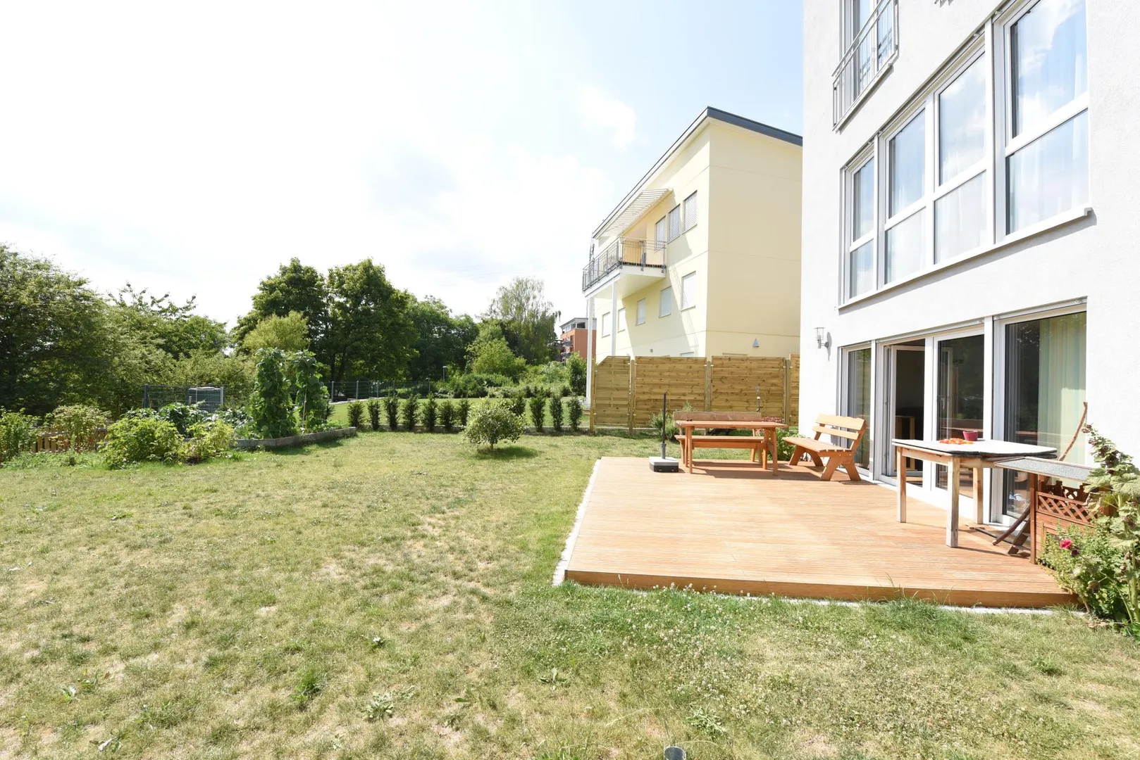 Die Wohnfläche beträgt ca. 120 m², ohne Terrasse zuzüglich ca. 54 m² Nutzfläche im Gartengeschoss und ca. 16 m² Lagerfläche unter der Garage.