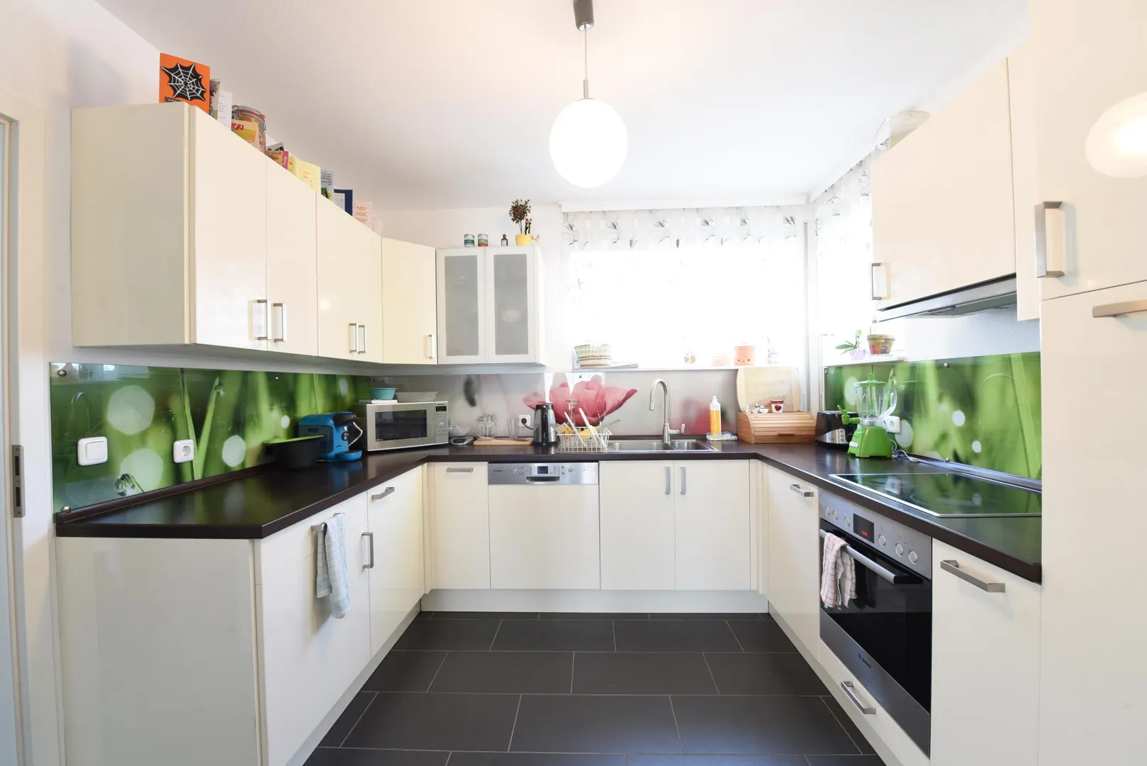 Im Eingangs-/Erdgeschoss befinden sich das Wohn-/Esszimmer, die Küche mit Einbauküche, ein separates WC mit Fenster sowie die Garderobe. Die Raumhöhe beträgt ca. 2,48 Meter.