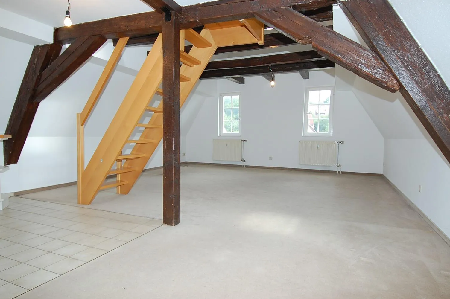 Diese 3 Zimmer-DG-Maisonette-Galerie-Wohnung ist geeignet für Individualisten und Geschichtsliebhaber. Die Wohnfläche nach DIN beträgt ca. 77 m². Die Grundfläche beträgt ca. 130m².
