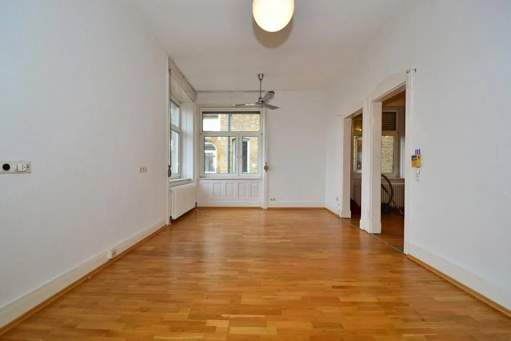 Im Flur und in drei Zimmern wurde Parkett als Landhausdielen verlegt. In zwei Zimmern sind ältere Teppiche vorhanden. Die Teppichböden können auf eigene Kosten ausgewechselt werden.