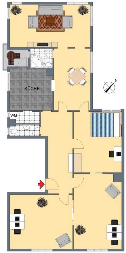 Diese klassische 5 Zimmer-Etagen-Wohnung befindet sich im Hochparterre (Erdgeschoss) eines denkmalgeschützten 5-Familienhauses.