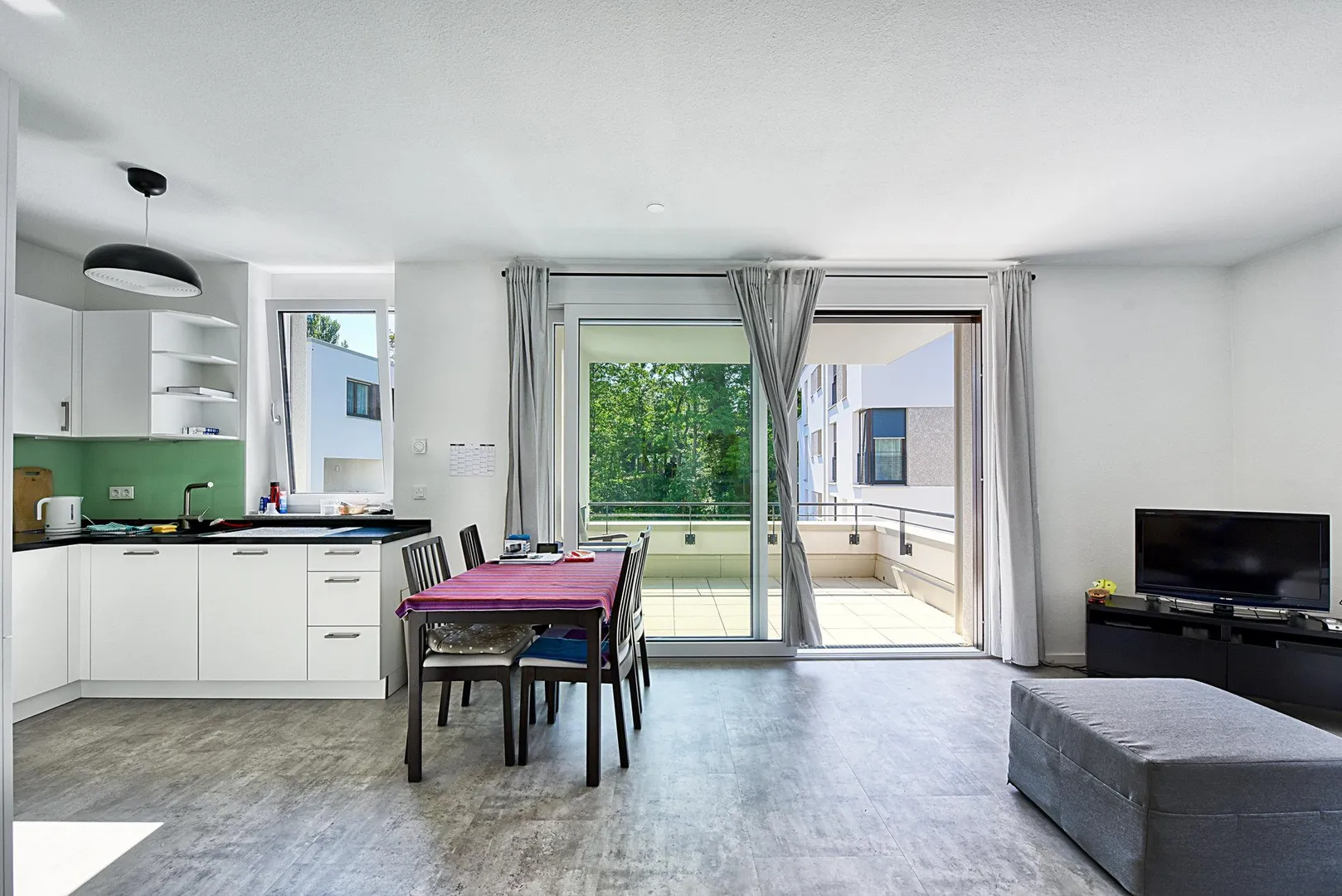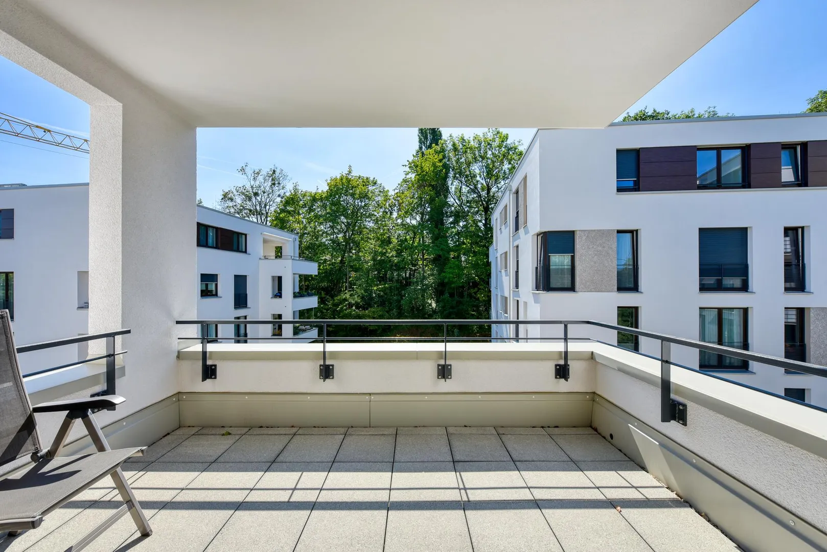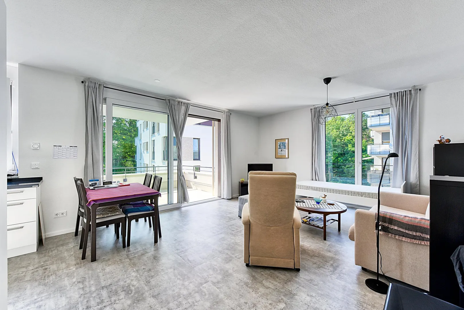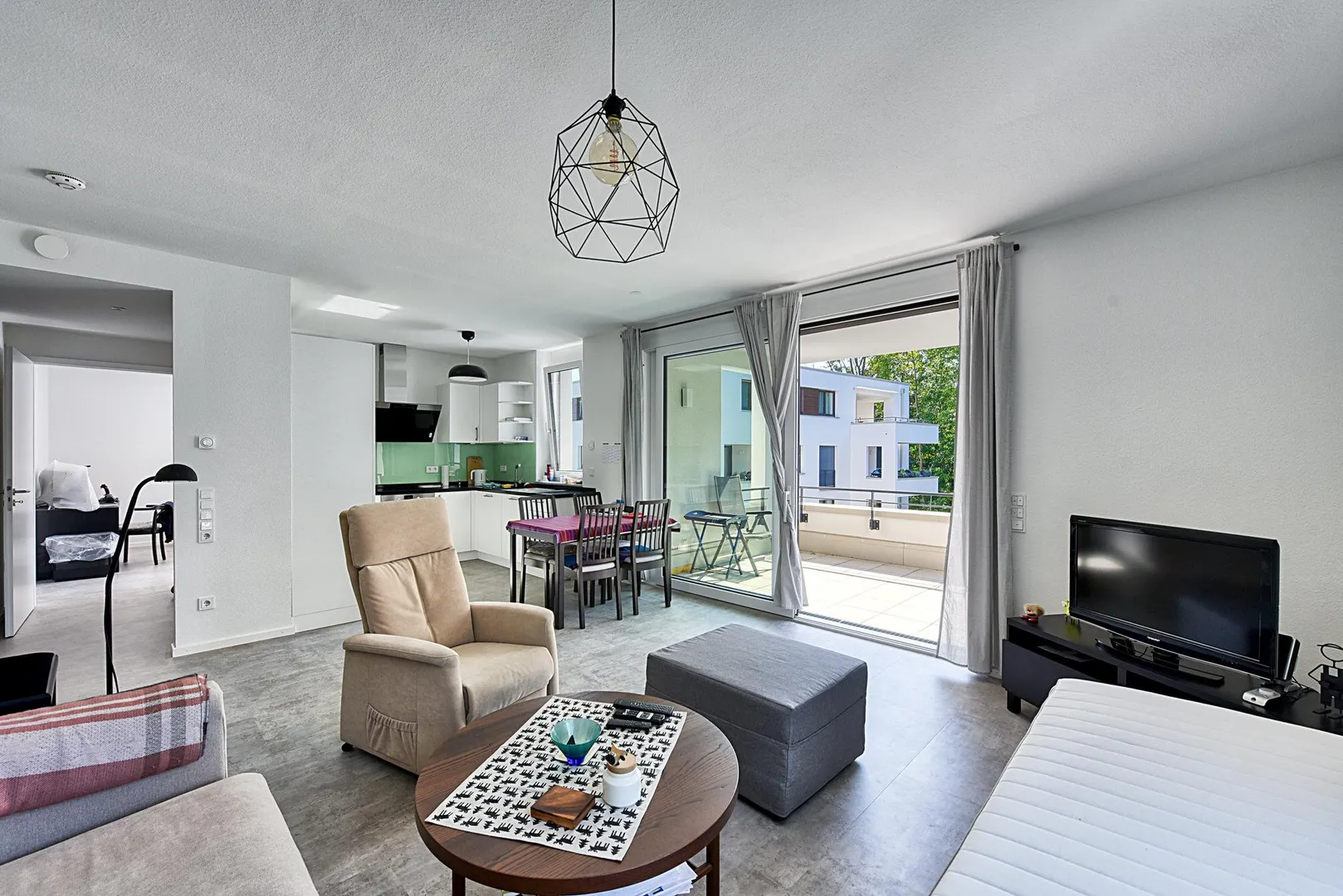 Die Zimmer, die Küche sowie der Balkon sind nach Süden ausgerichtet. Der ca. 10 m² große und überdachte Balkon ist über das Wohnzimmer begehbar.