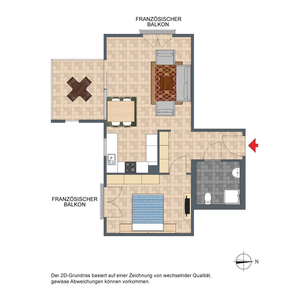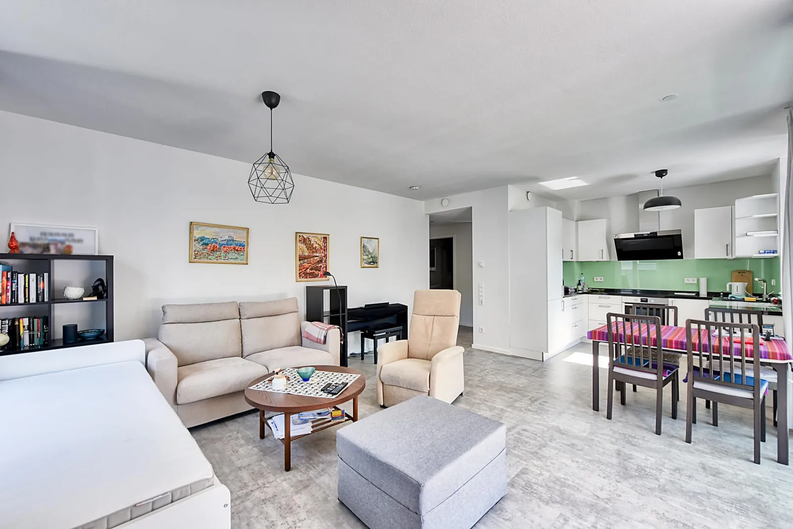 Der Grundriss ist gut. Der Wohnbereich ist zum Flurbereich und zur Küche offen gestaltet und verfügt über keine Zimmertür.