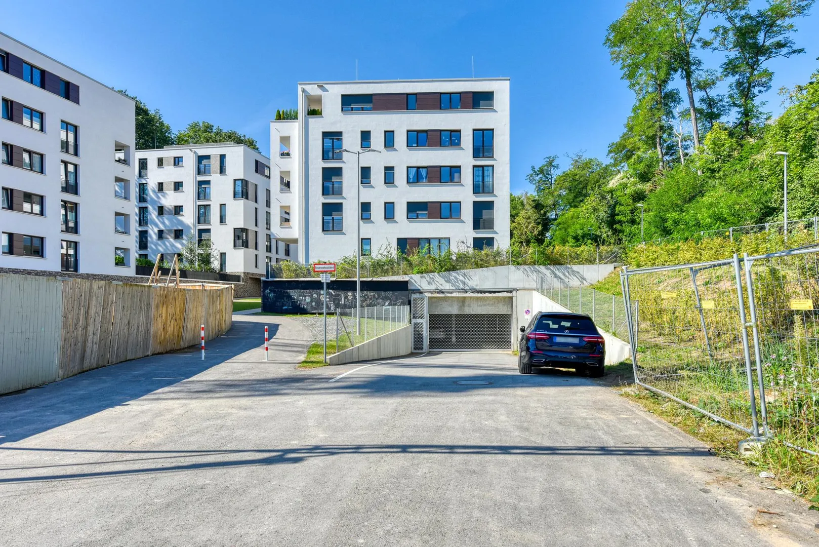 Das Haus wurde zum Erstbezug 2019/2020, freistehend, massiv, 5-geschossig, komplett unterkellert, mit Tiefgarage und mit Flachdach erstellt.