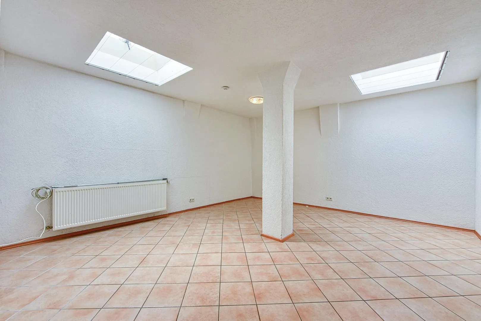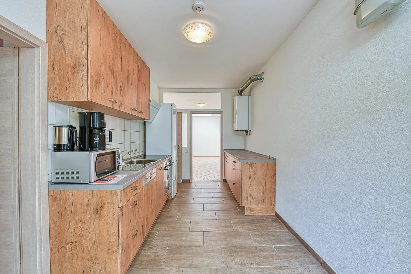 Die Böden in der Wohnung sind komplett gefliest. Die Wände sind von innen gedämmt und verputzt. Die Raumhöhen betragen ca. 2,62 Meter.