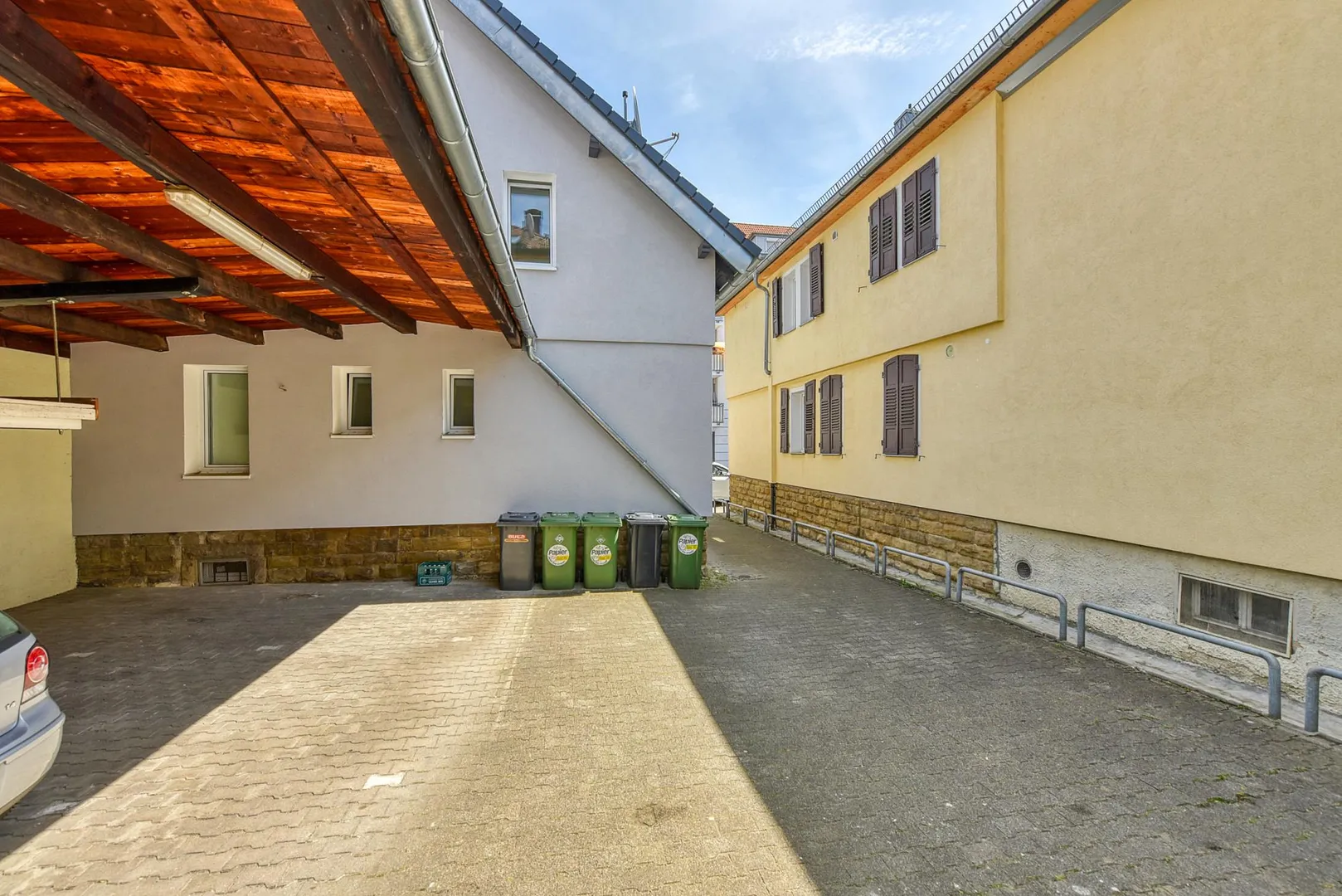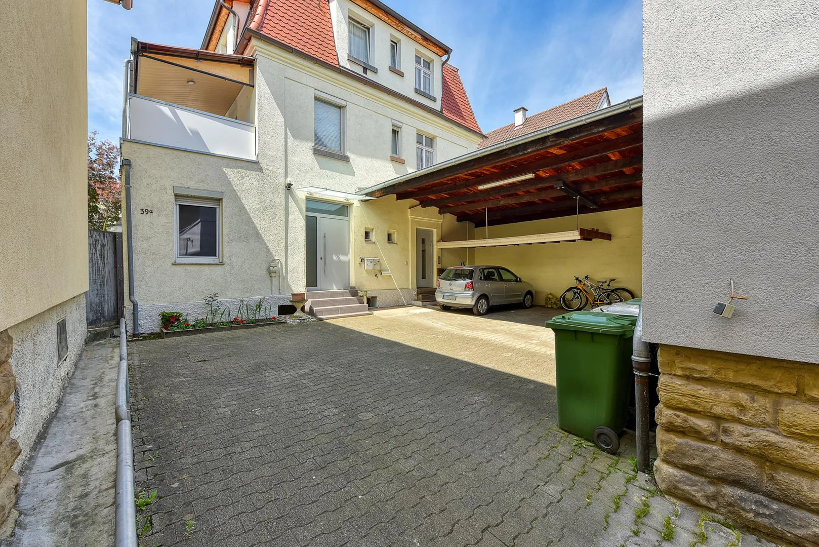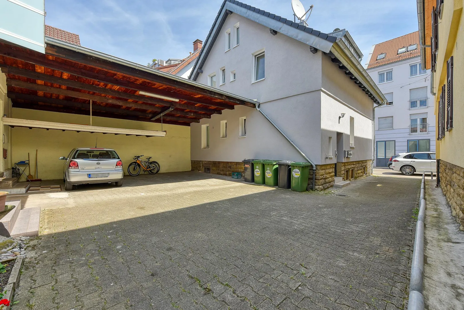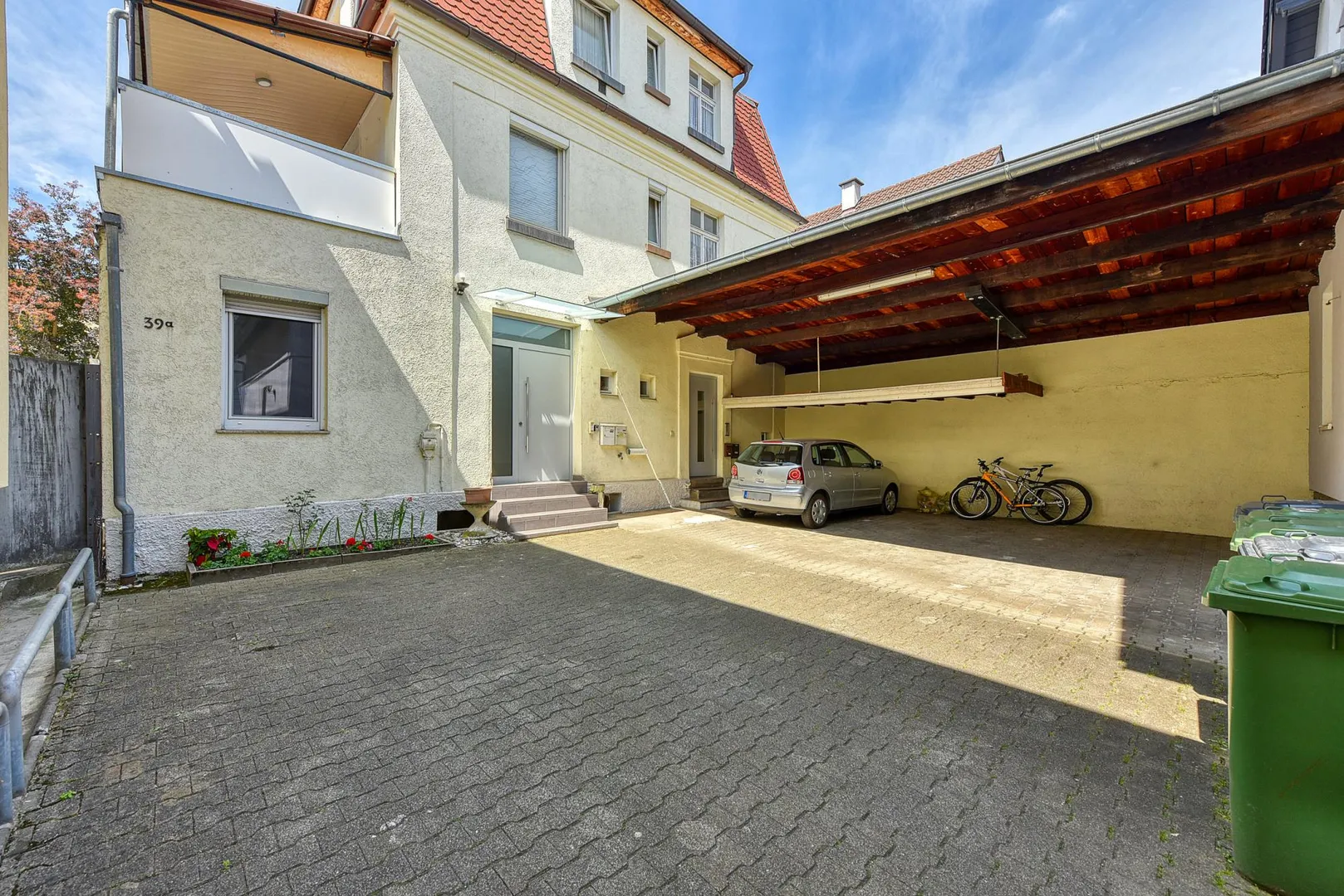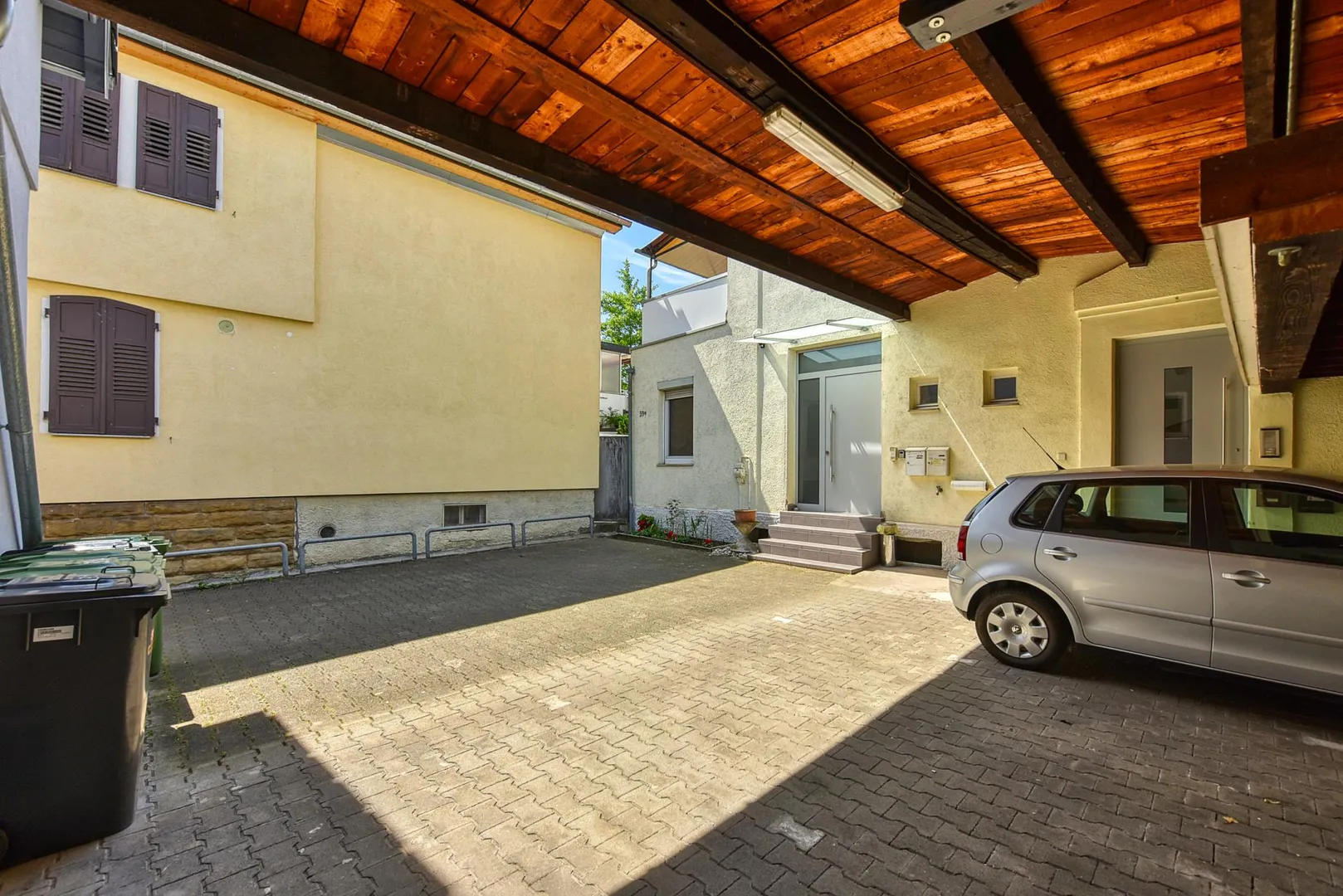 Zur Wohnung gehören ein Abstellraum im Untergeschoss, eine Fahrradabstellecke unter einem Carport sowie ein Carport, welcher bereits mit 50 EUR monatlich in der Angabe der Kalt-Miete enthalten ist.