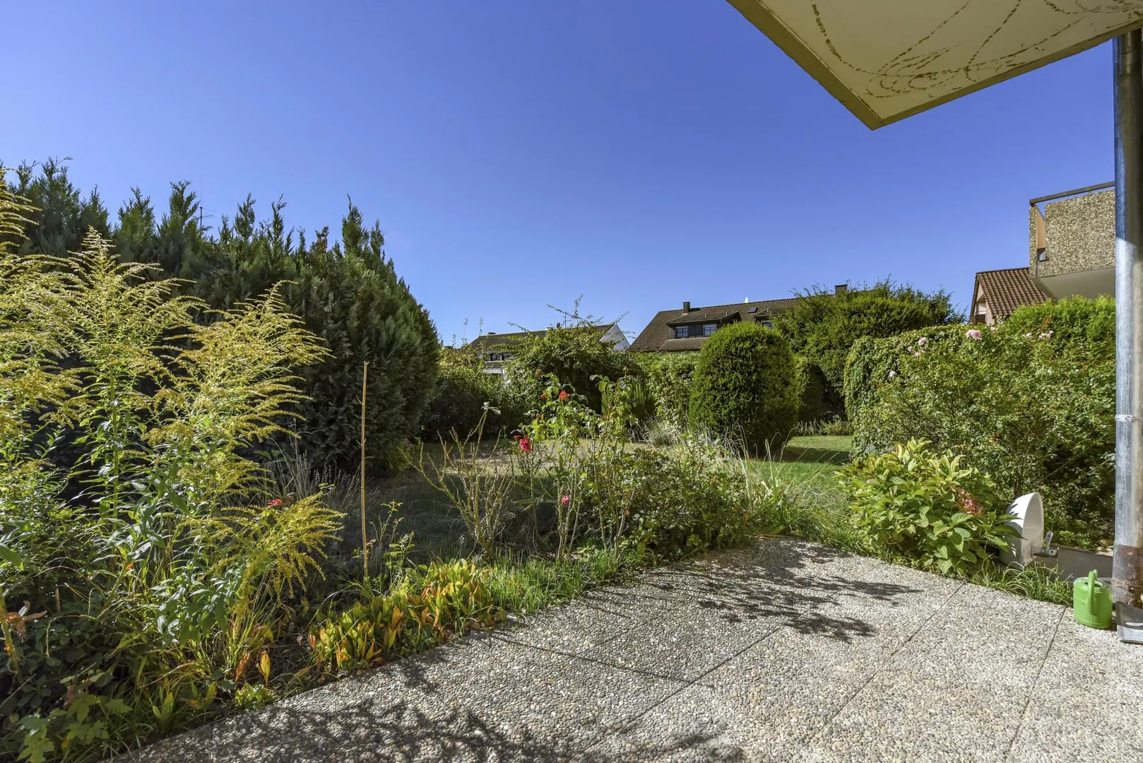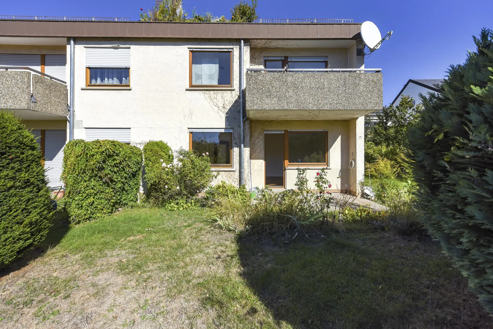 Das Wohnzimmer, die Terrasse und der Garten sind nach Süden ausgerichtet. Das Schlafzimmer sowie das Arbeitszimmer sind nach Osten ausgerichtet.