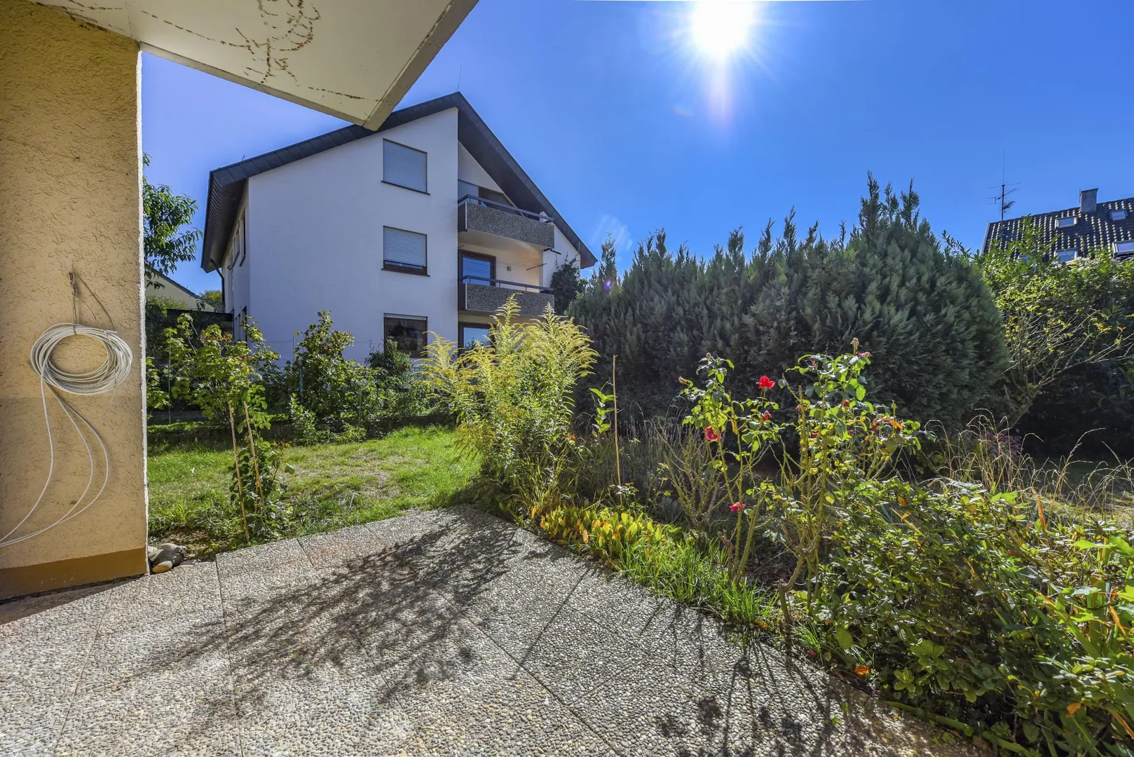 Diese hochwertig ausgestattete 3-Zimmer-Wohnung mit Terrasse und Garten befindet sich im Hochparterre/Erdgeschoss.