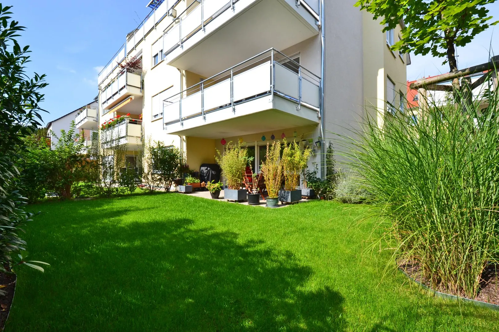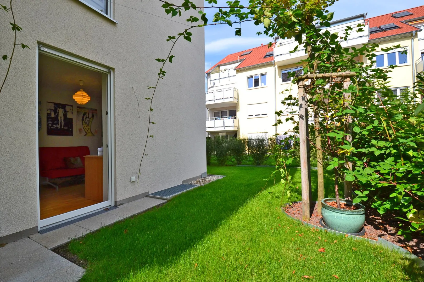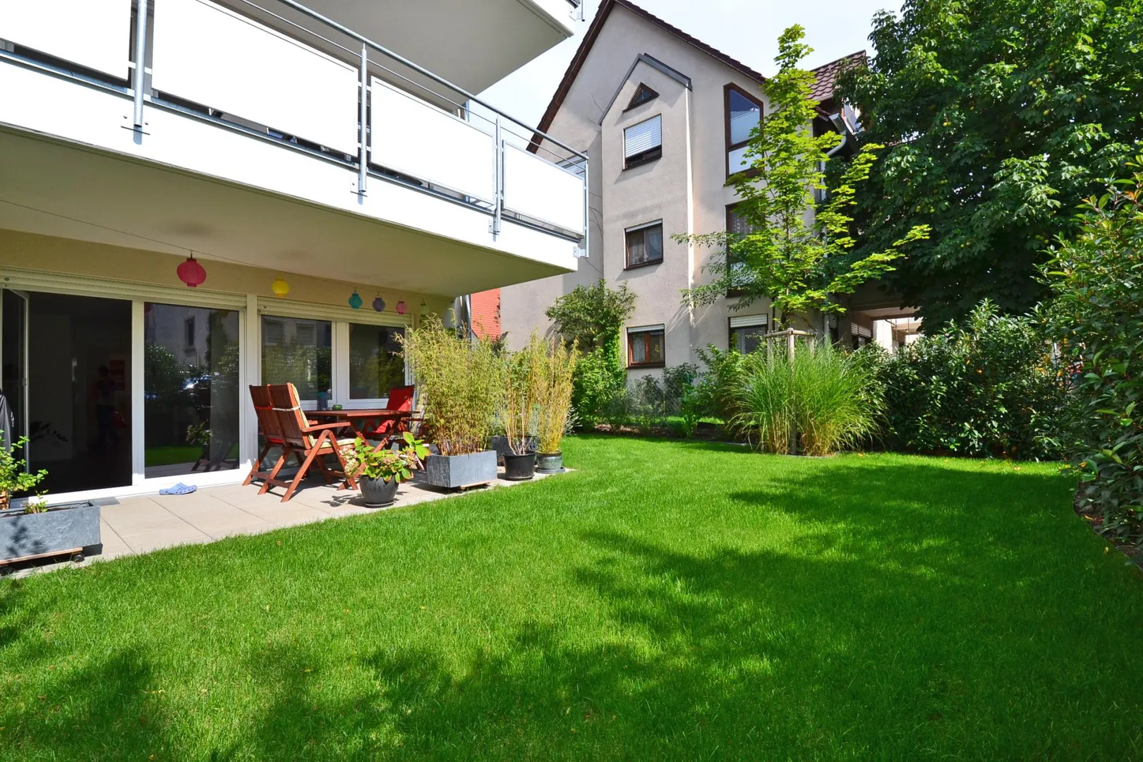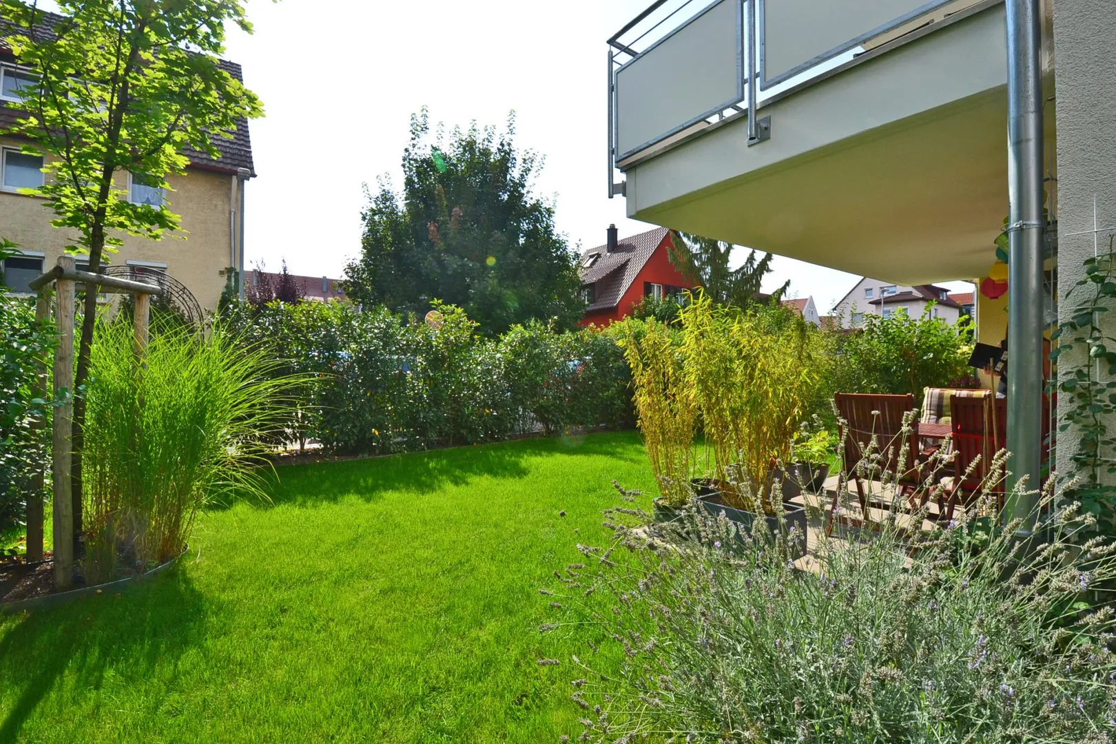 Zur Wohnung gehören ein Garten mit Gartengeräten sowie ein Abstellraum im Untergeschoss.