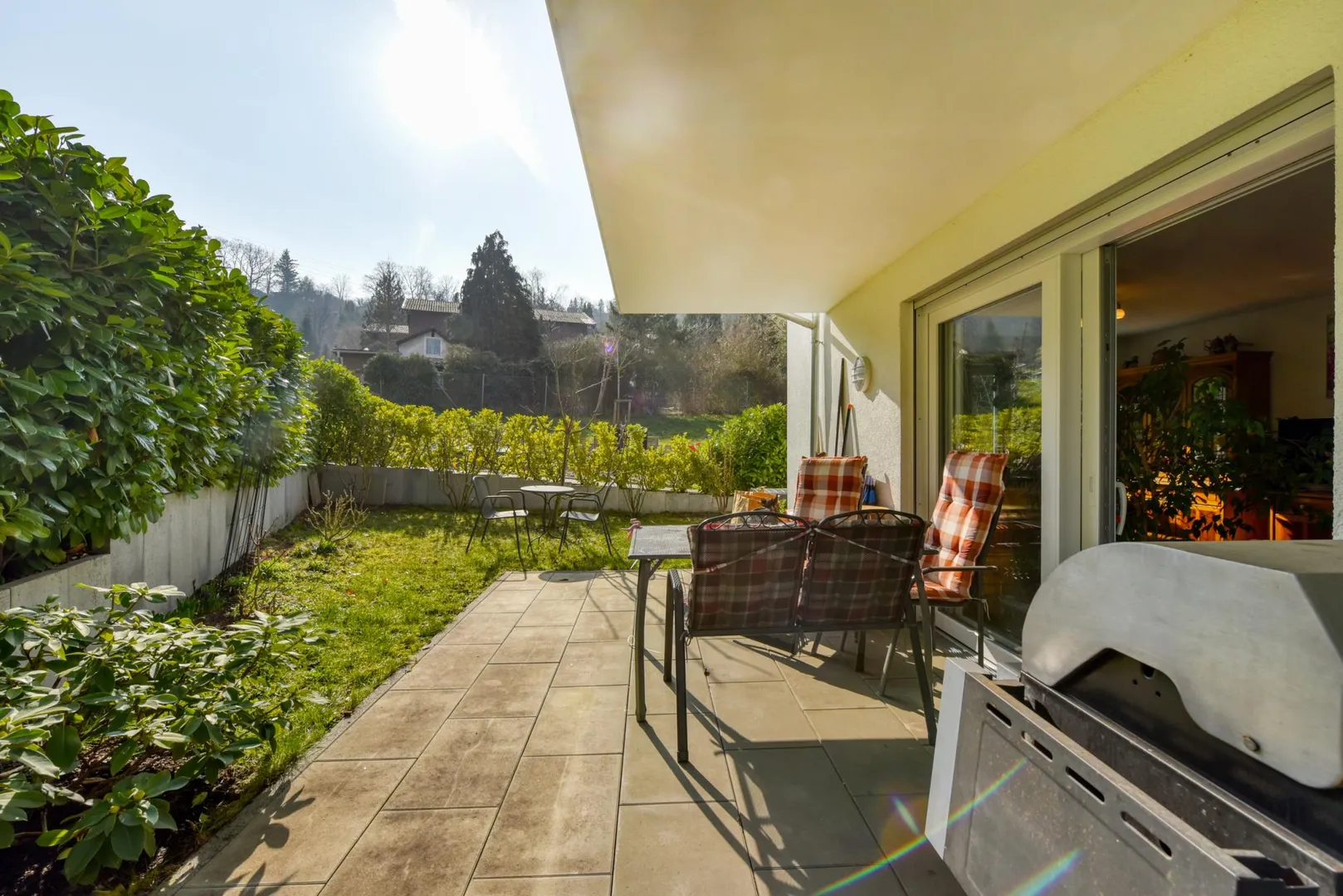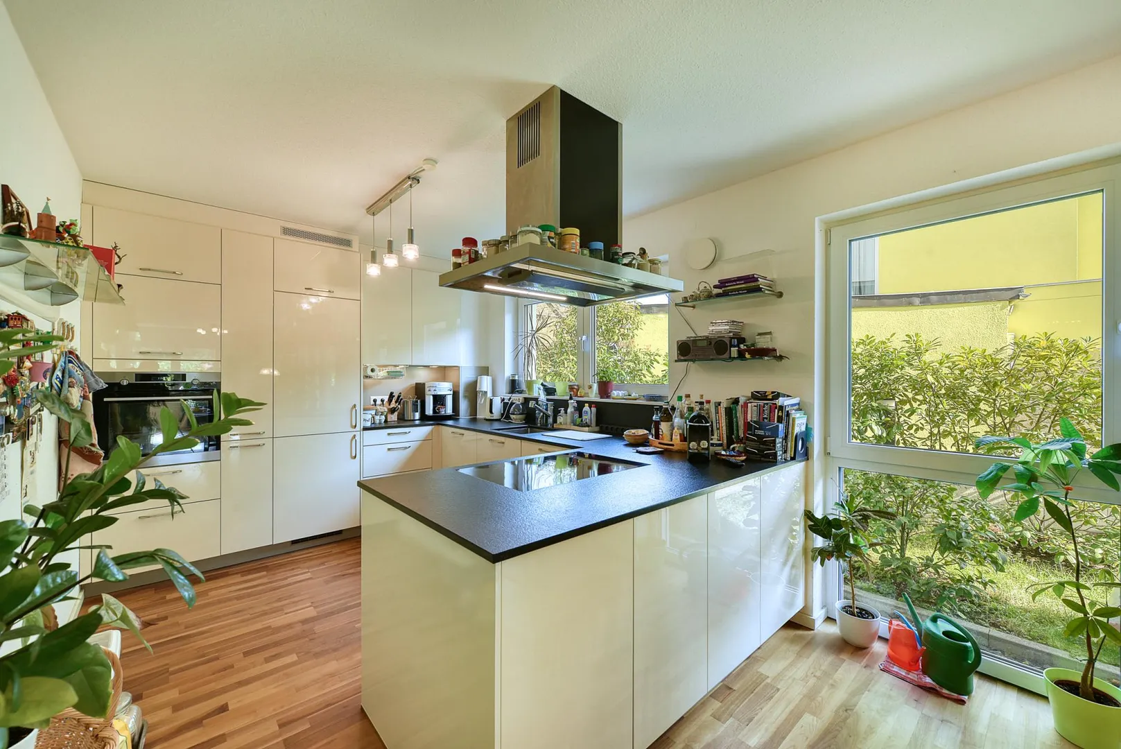 Diese gehoben ausgestattete 3 1/2-Zimmer-Wohnung mit Terrasse und Grünfläche befindet sich im Erdgeschoss eines 10-Familienhauses.