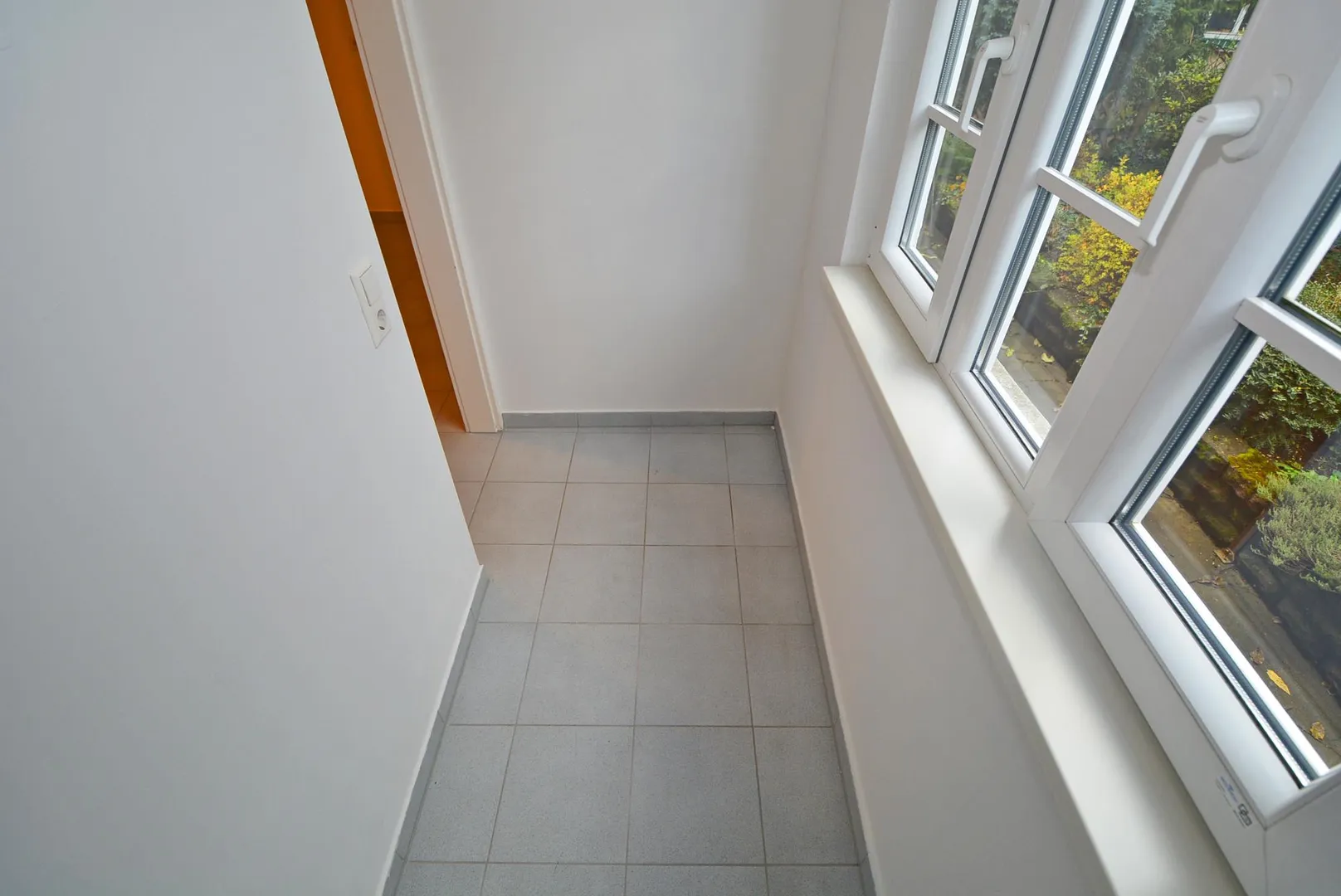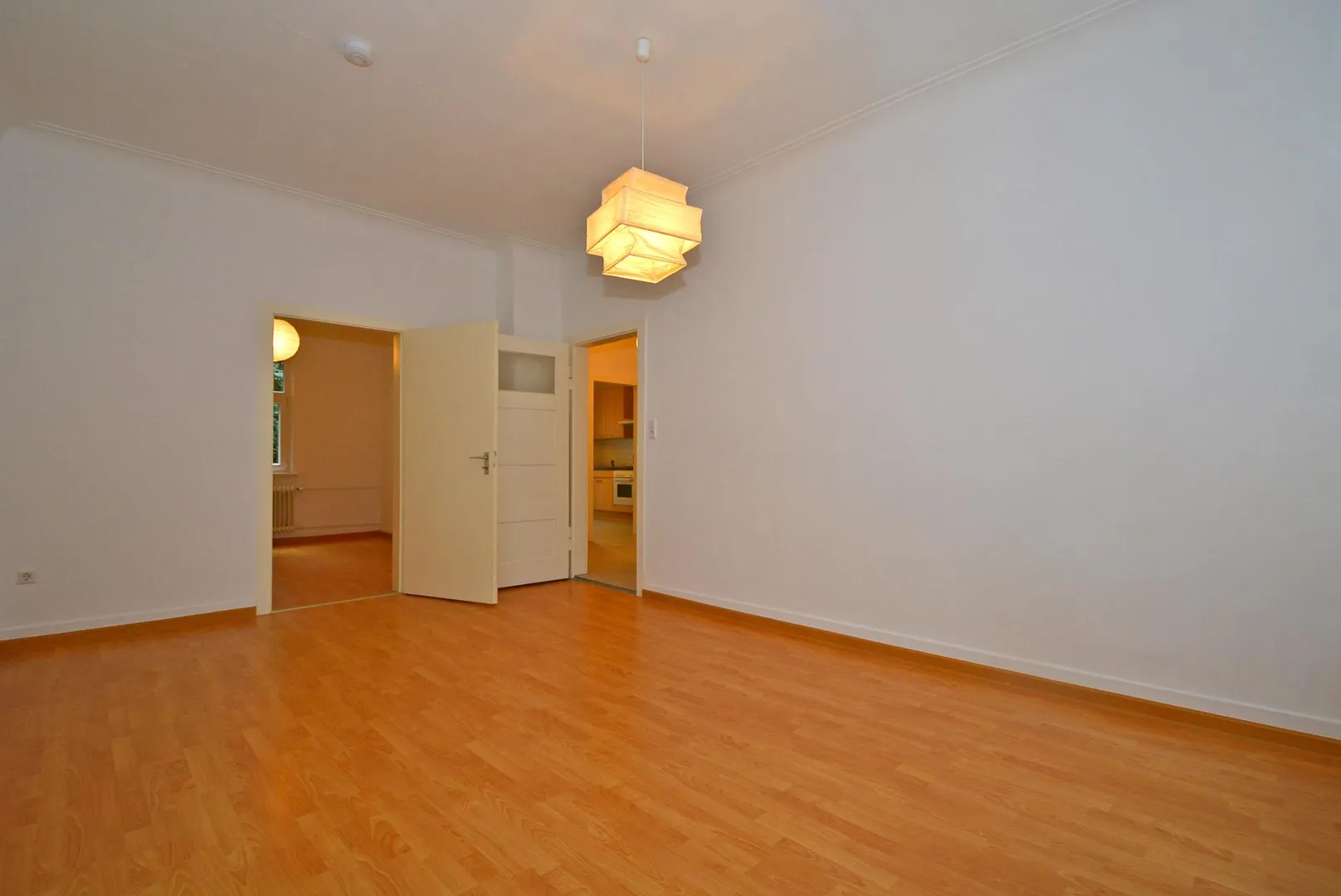 Alle Zimmer sind vom Flur aus begehbar. Eine Zwischentür verbindet das Wohnzimmer mit dem Schlafzimmer. Die Wohnung verfügt über keinen Balkon. Eine Veranda ist von der Küche aus begehbar.