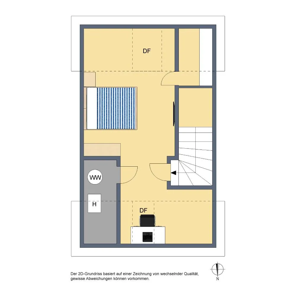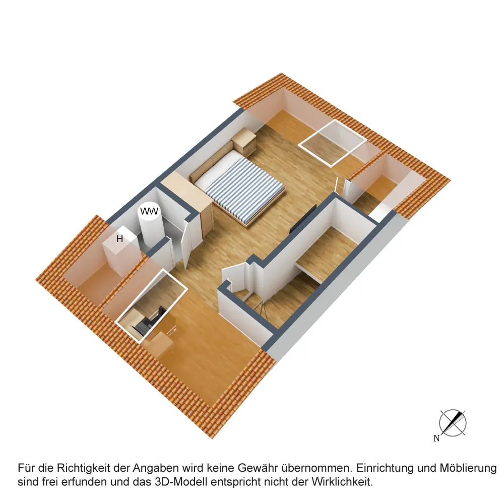 Im Dachgeschoss befinden sich auf ca. 20 m² Wohnfläche ein Kinderzimmer mit Fernblick, ein kleiner Abstellraum sowie der Heizraum.