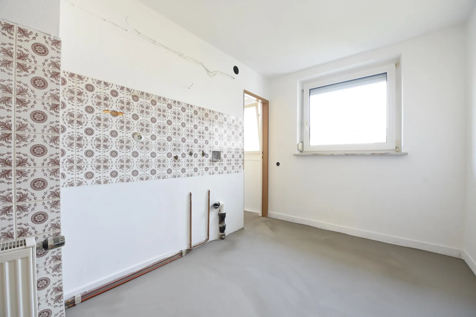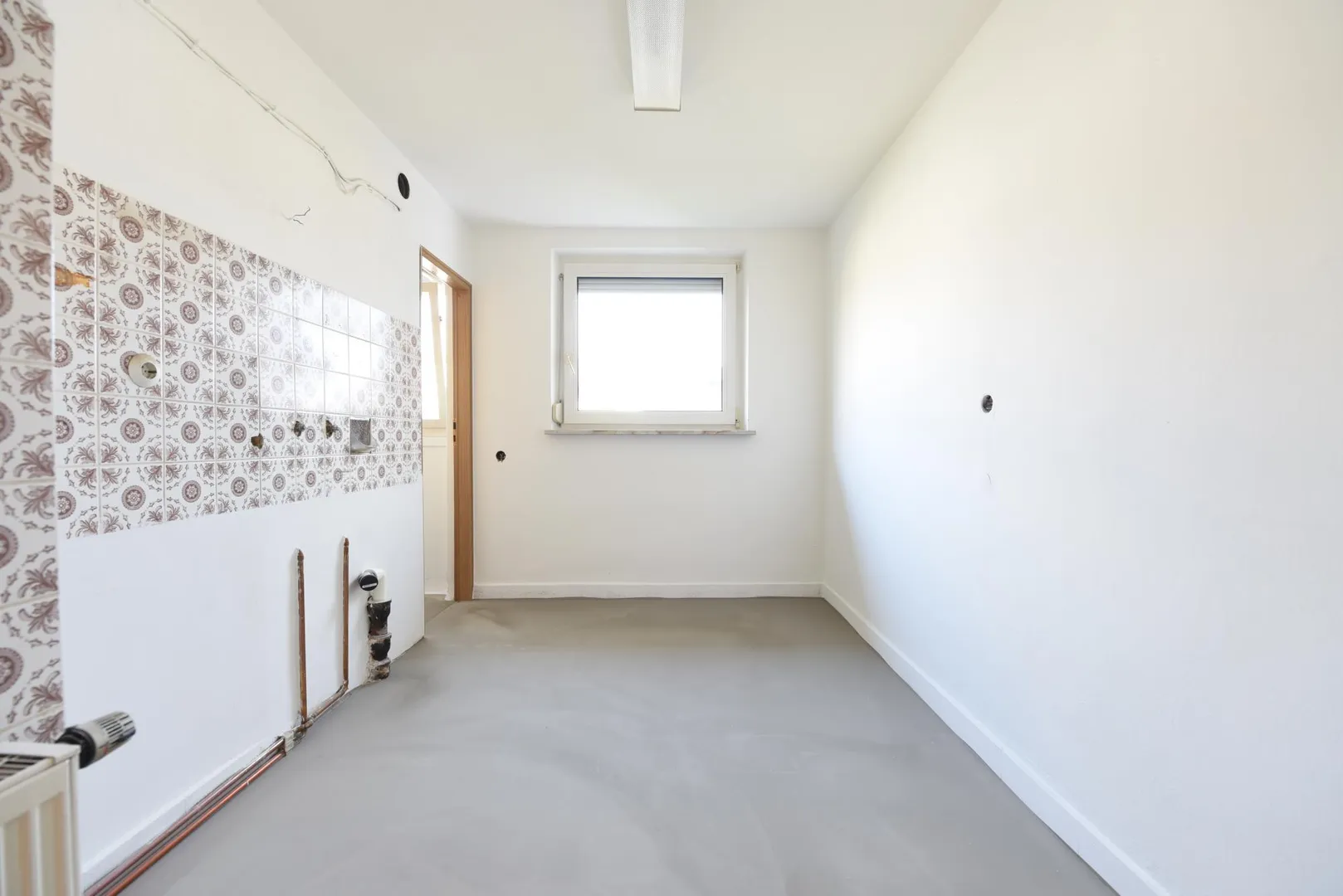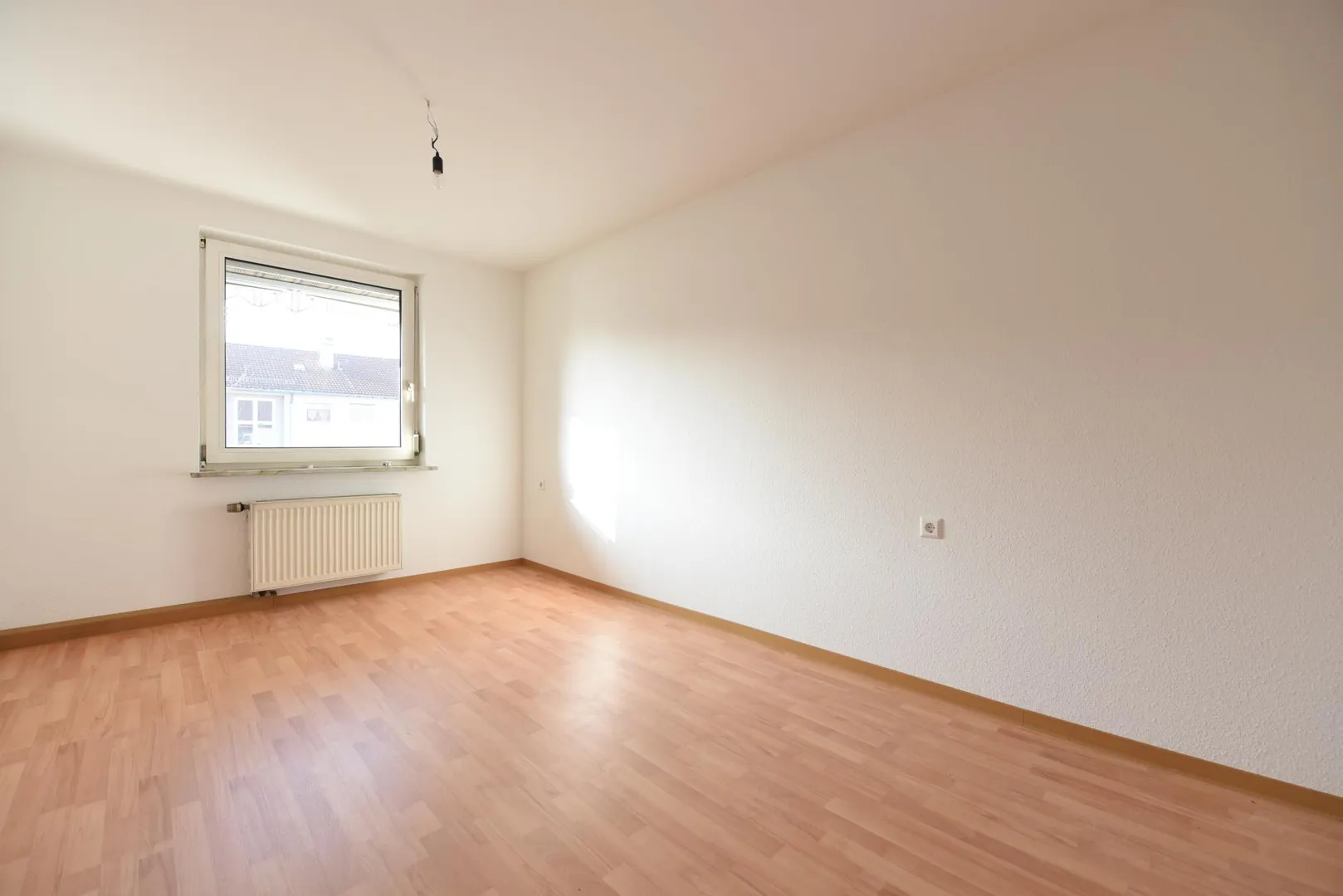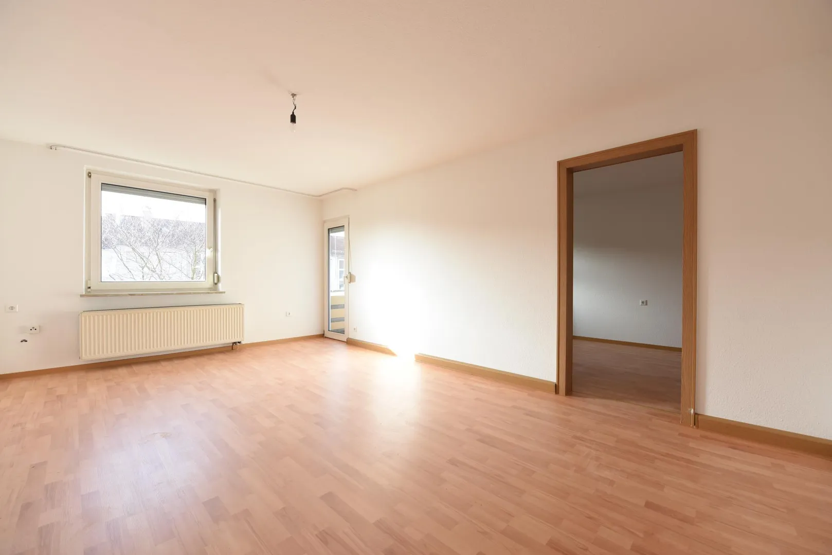 Im Flur und in den Zimmern wurde ein neuer Laminatboden verlegt. Die Wände wurden frisch mit Raufasertapete tapeziert und sind frisch, weiß gestrichen worden.