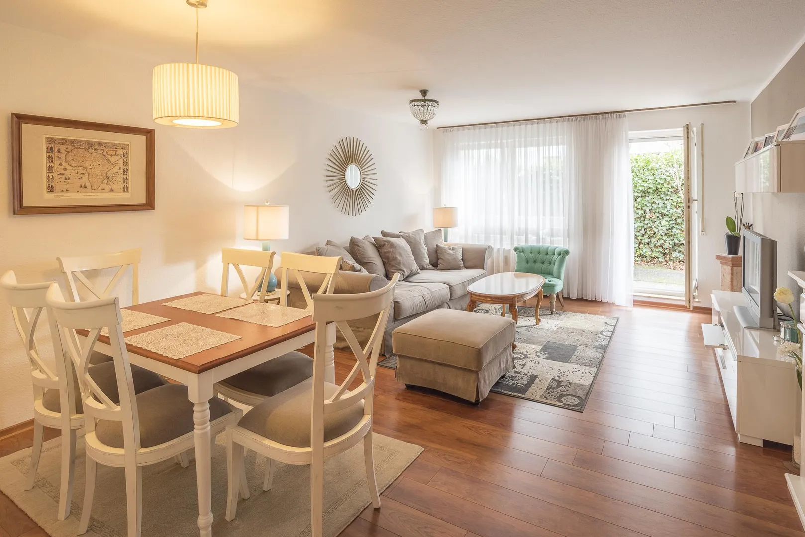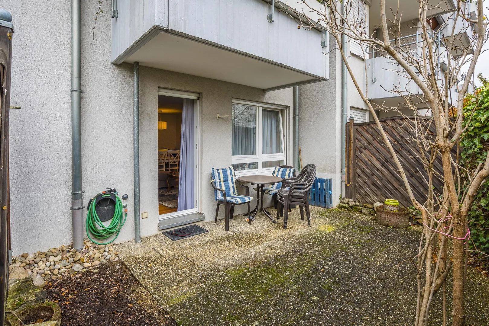 Diese bequeme und sehr gepflegte 2-Zimmer-Wohnung mit Terrasse befindet sich im Hochparterre (Erdgeschoss).