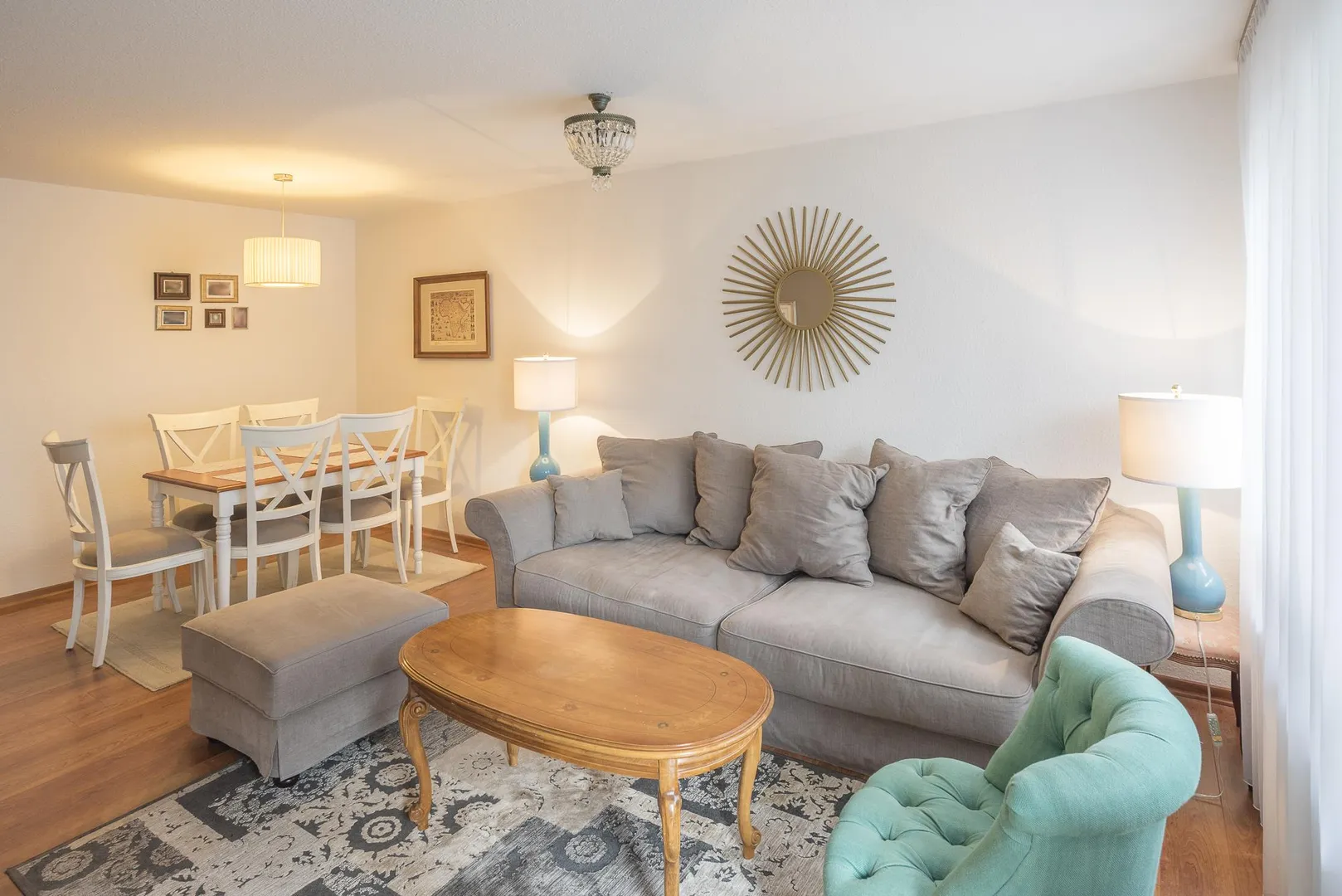 Die Wände sind mit Raufasertapeten tapeziert und befinden sich in einem gepflegten Zustand.