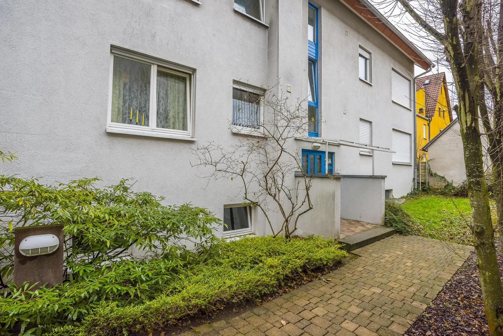 Diese bequeme und sehr gepflegte 2-Zimmer-Wohnung mit Terrasse befindet sich im Hochparterre (Erdgeschoss) einer 9-Familien-Doppelhaushälfte.