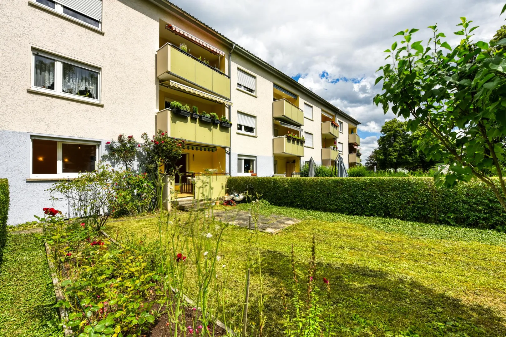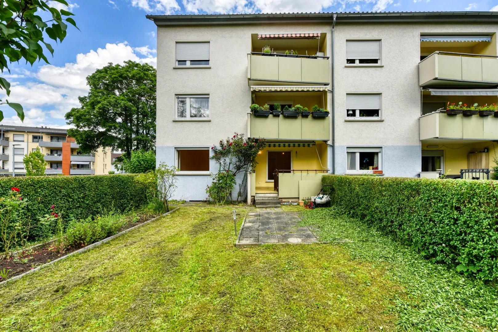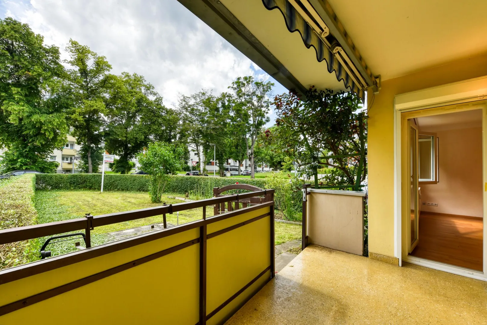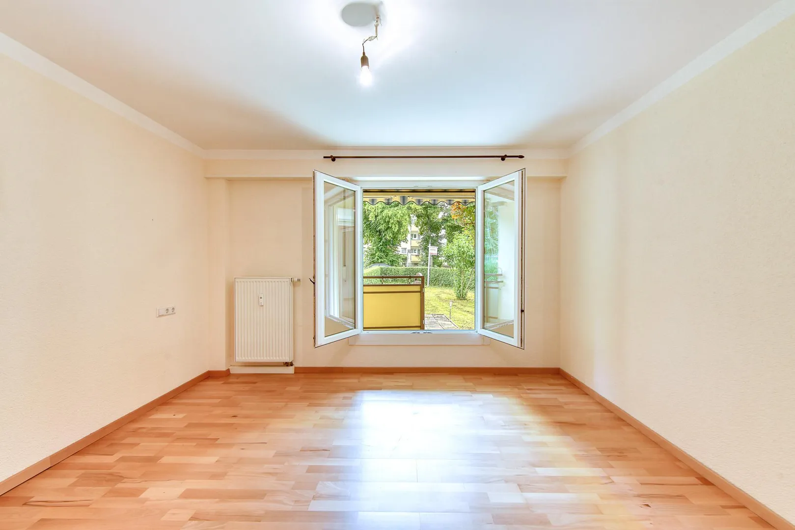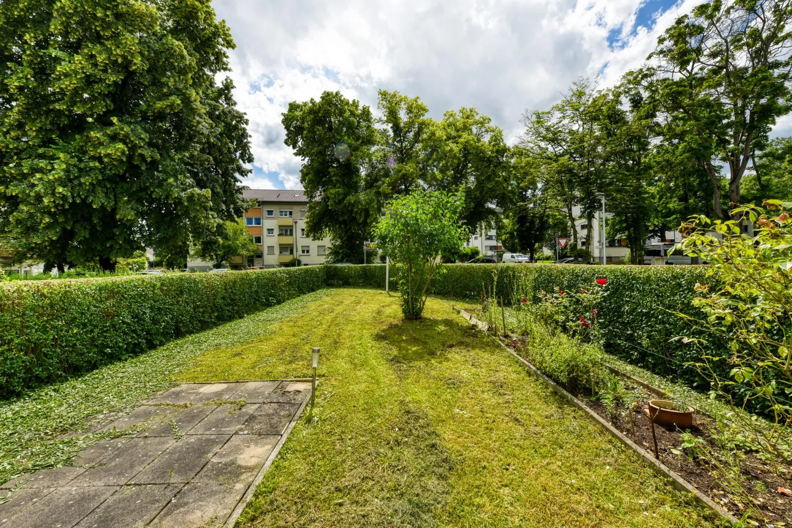 Diese sonnige und modernisierte 3-Zimmer-Erdgeschoss-Wohnung mit Balkon, Terrasse und Garten befindet sich im Hochparterre.