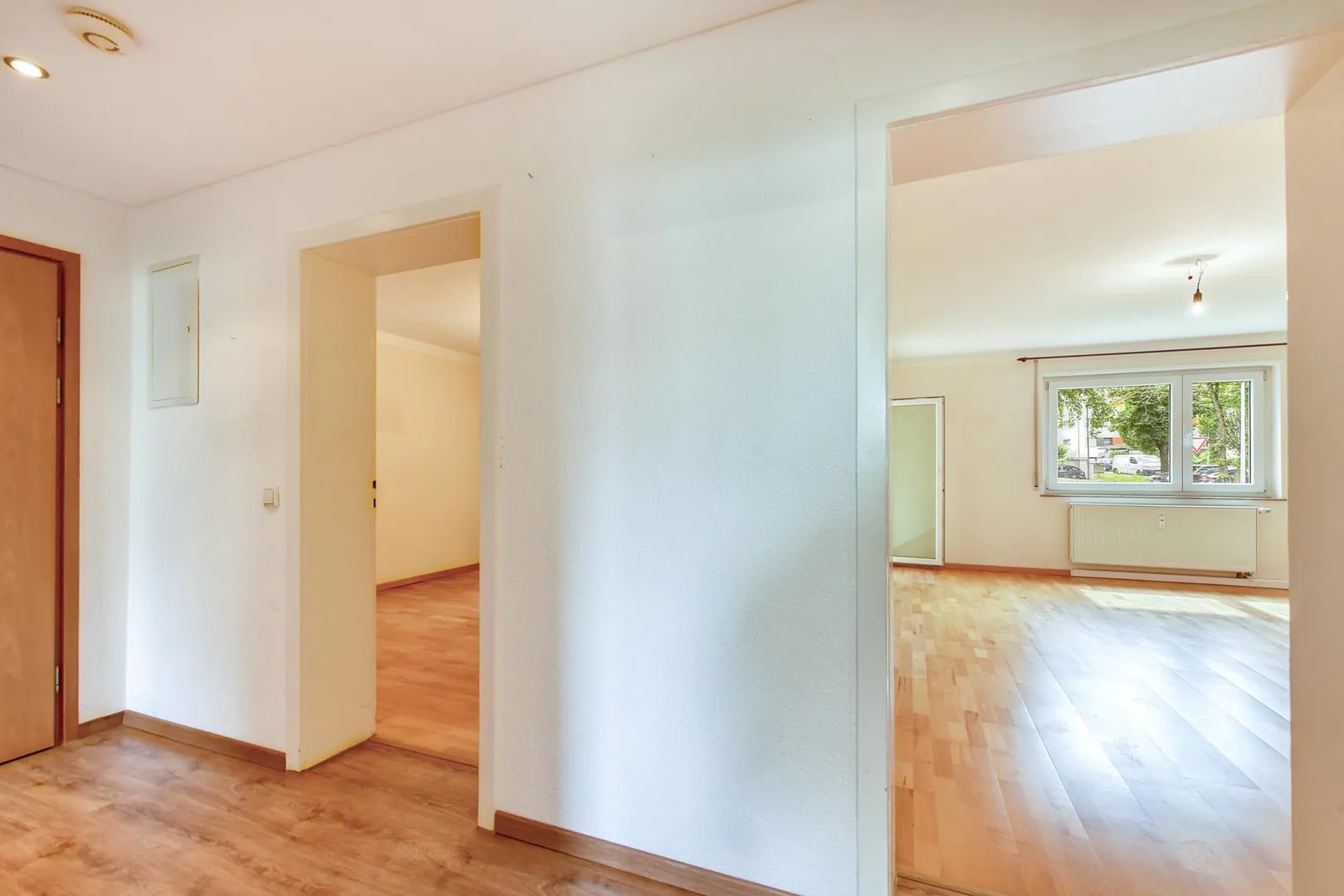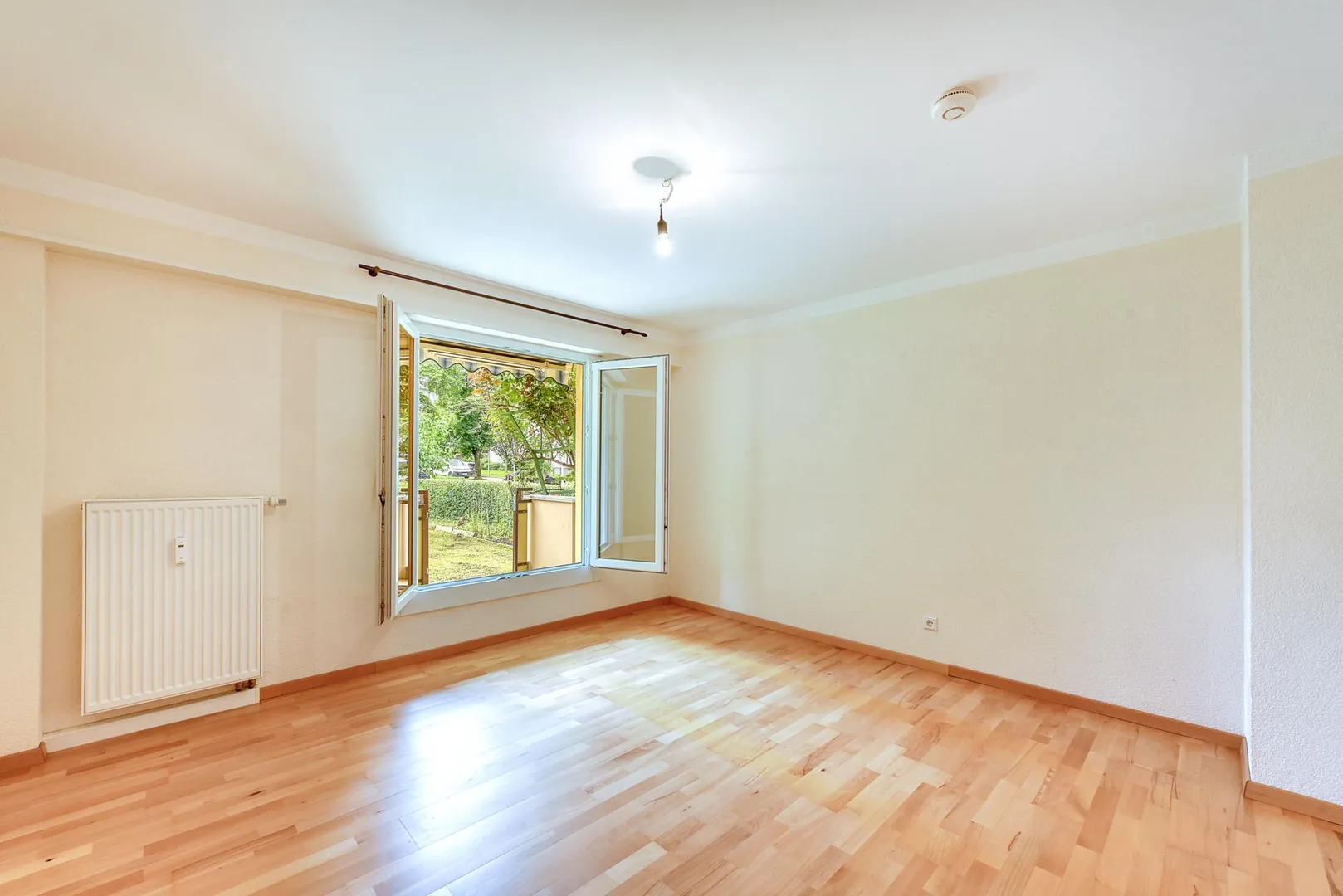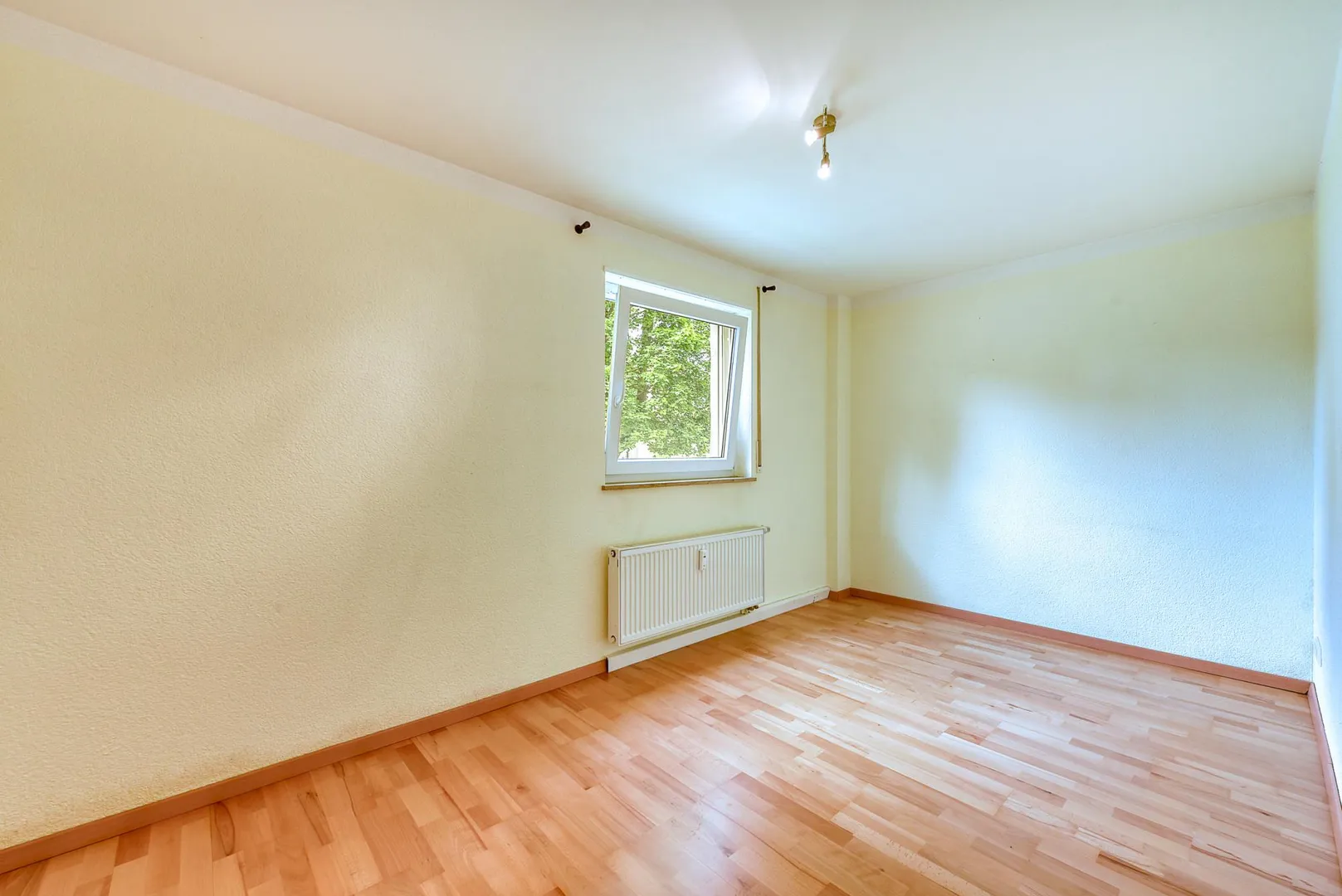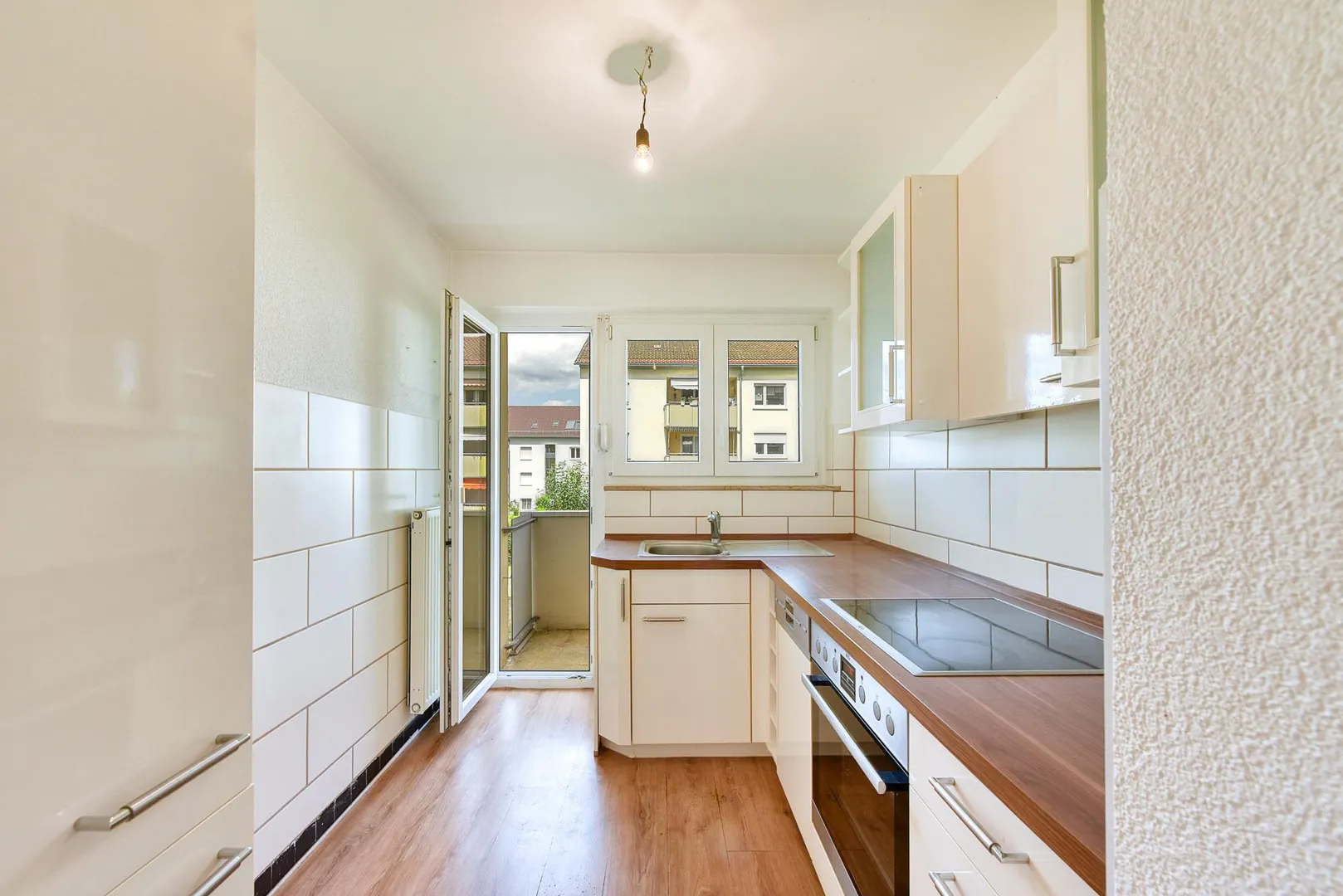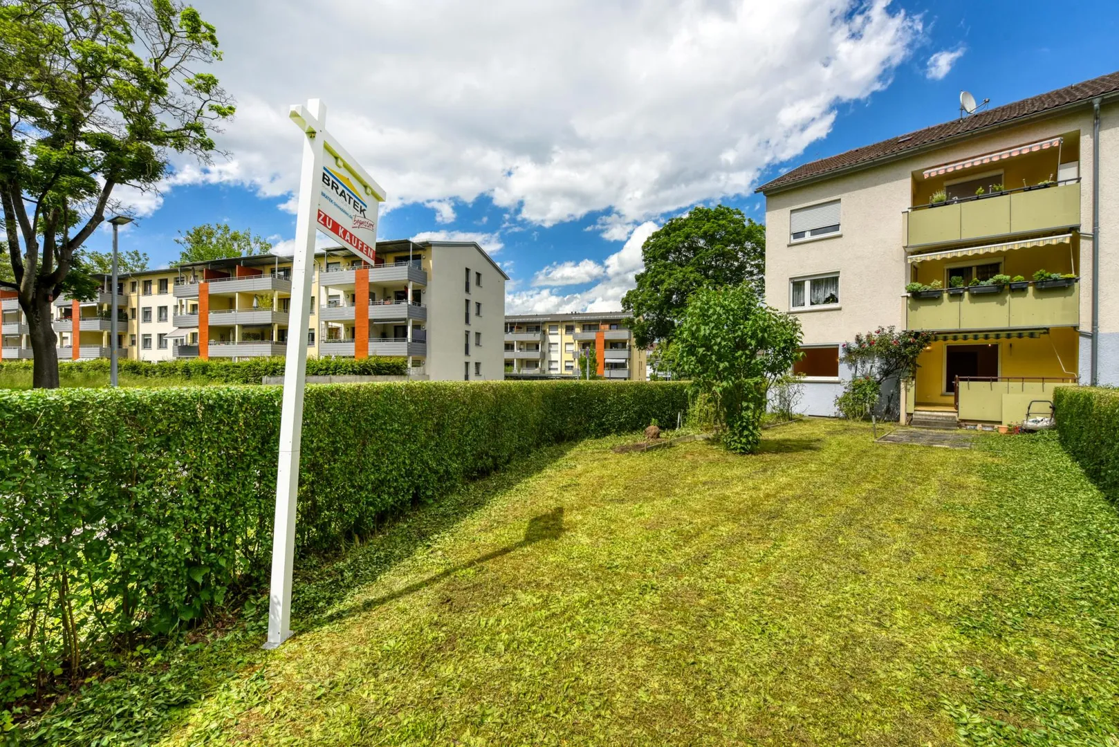 Diese sonnige und modernisierte 3-Zimmer-Erdgeschoss-Wohnung mit Balkon, Terrasse und Garten befindet sich im Hochparterre.