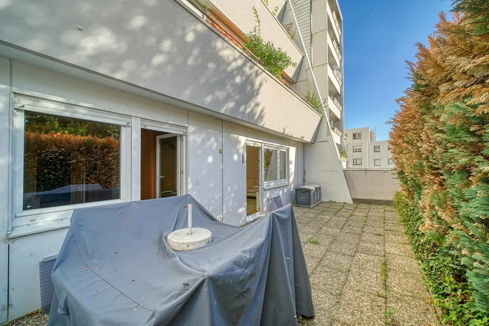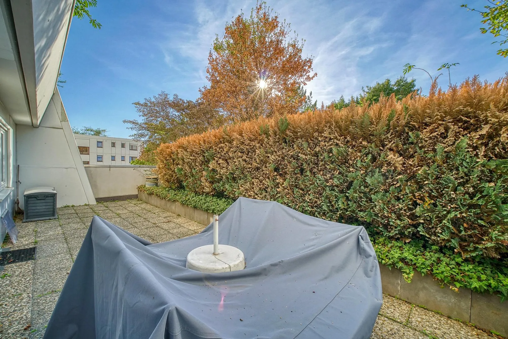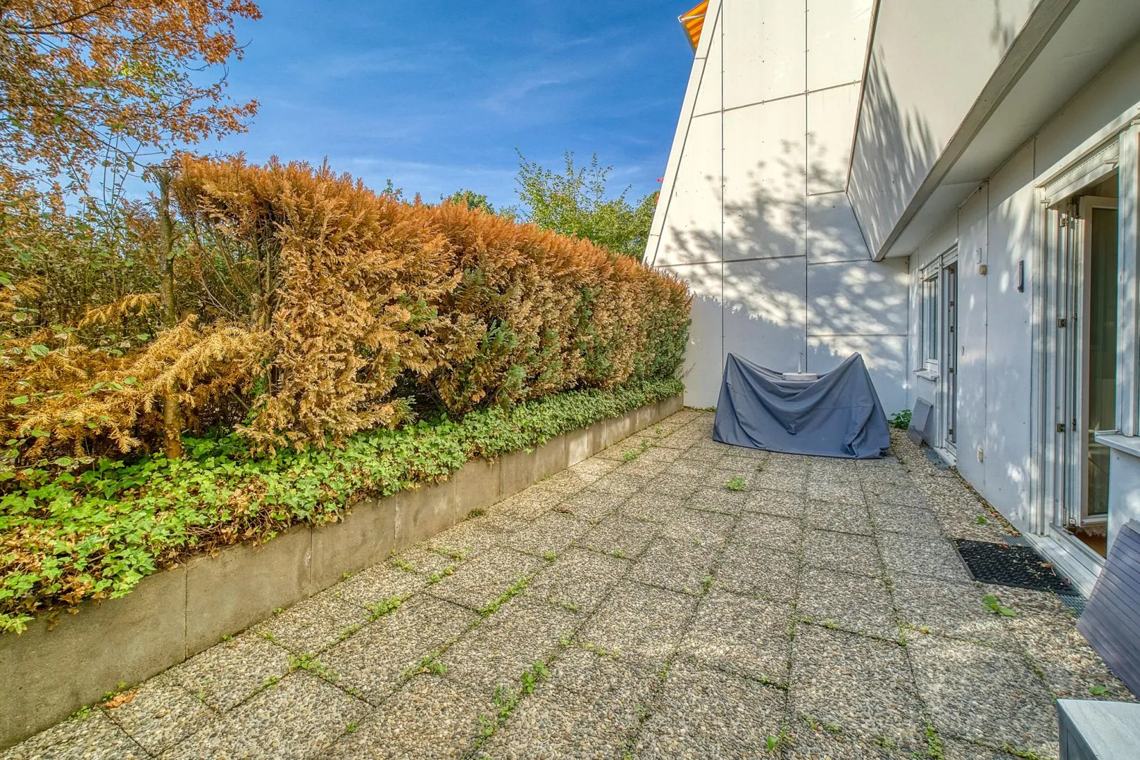Die Terrasse ist nach Nord-Westen ausgerichtet und ist sowohl vom Wohnbereich als auch vom Schlafzimmer begehbar.