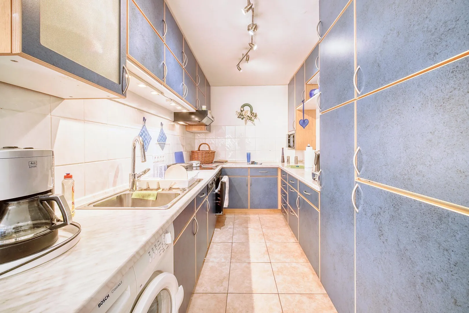 Die offene Einbauküche ist ausgestattet mit einer Einbauküche sowie einem Waschmaschinenanschluss.