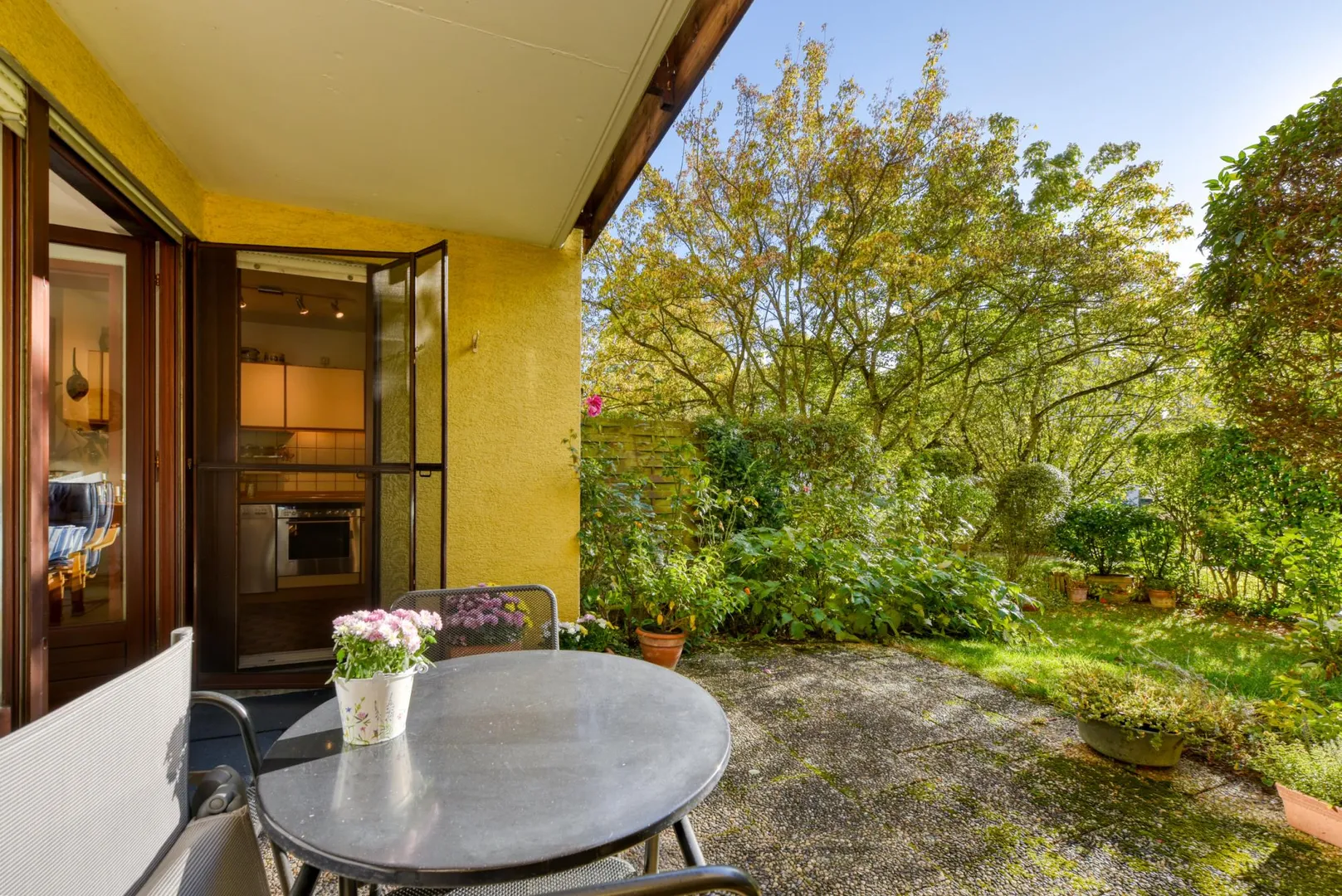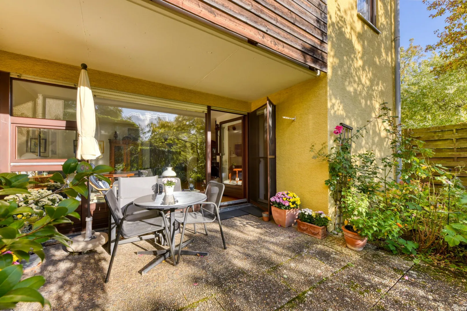 Diese gepflegte 2 1/2-Zimmer-Erdgeschoss-Wohnung mit Süd/West-Terrasse und Grünfläche befindet sich in einem 8-Familienhaus.