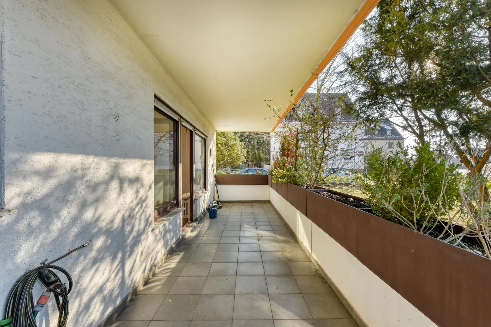 Diese gemütliche 4-Zimmer-Wohnung mit Balkon befindet sich im Erdgeschoss einer 5-Familien-Doppelhaushälfte.
