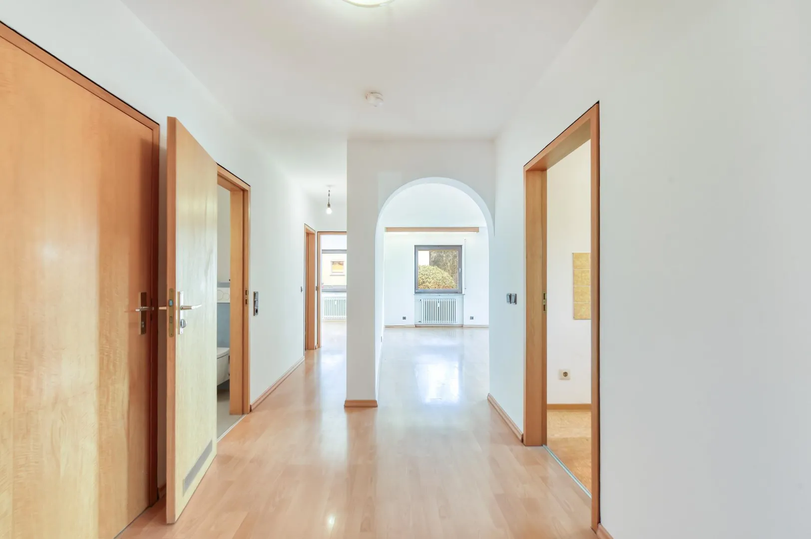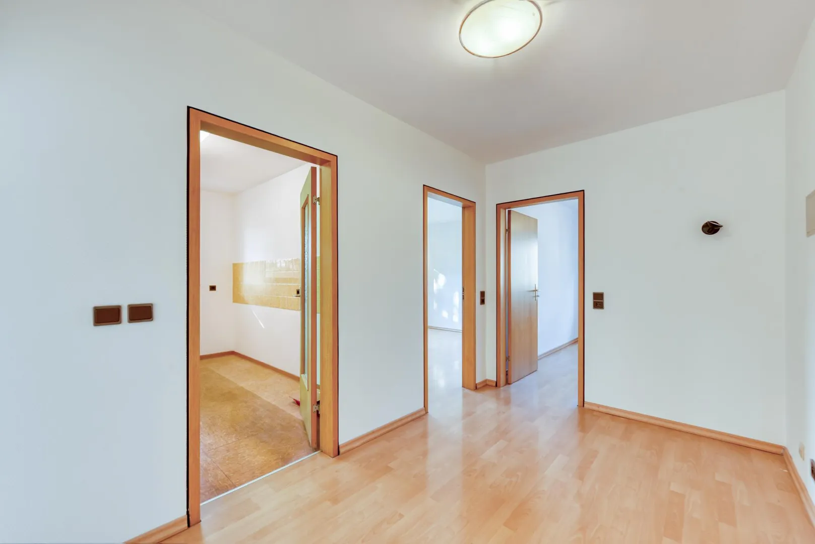 In der Diele sowie in den Zimmer ist Laminat verlegt. Die Wände sind überwiegend tapeziert und frisch, weiß gestrichen. Die Raumhöhen betragen ca. 2,46 Meter.