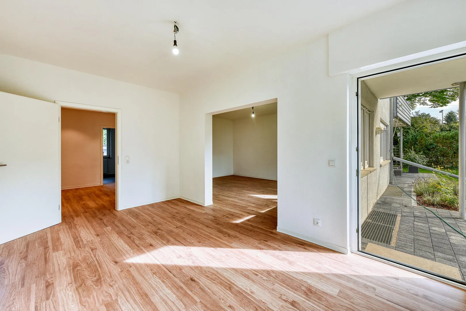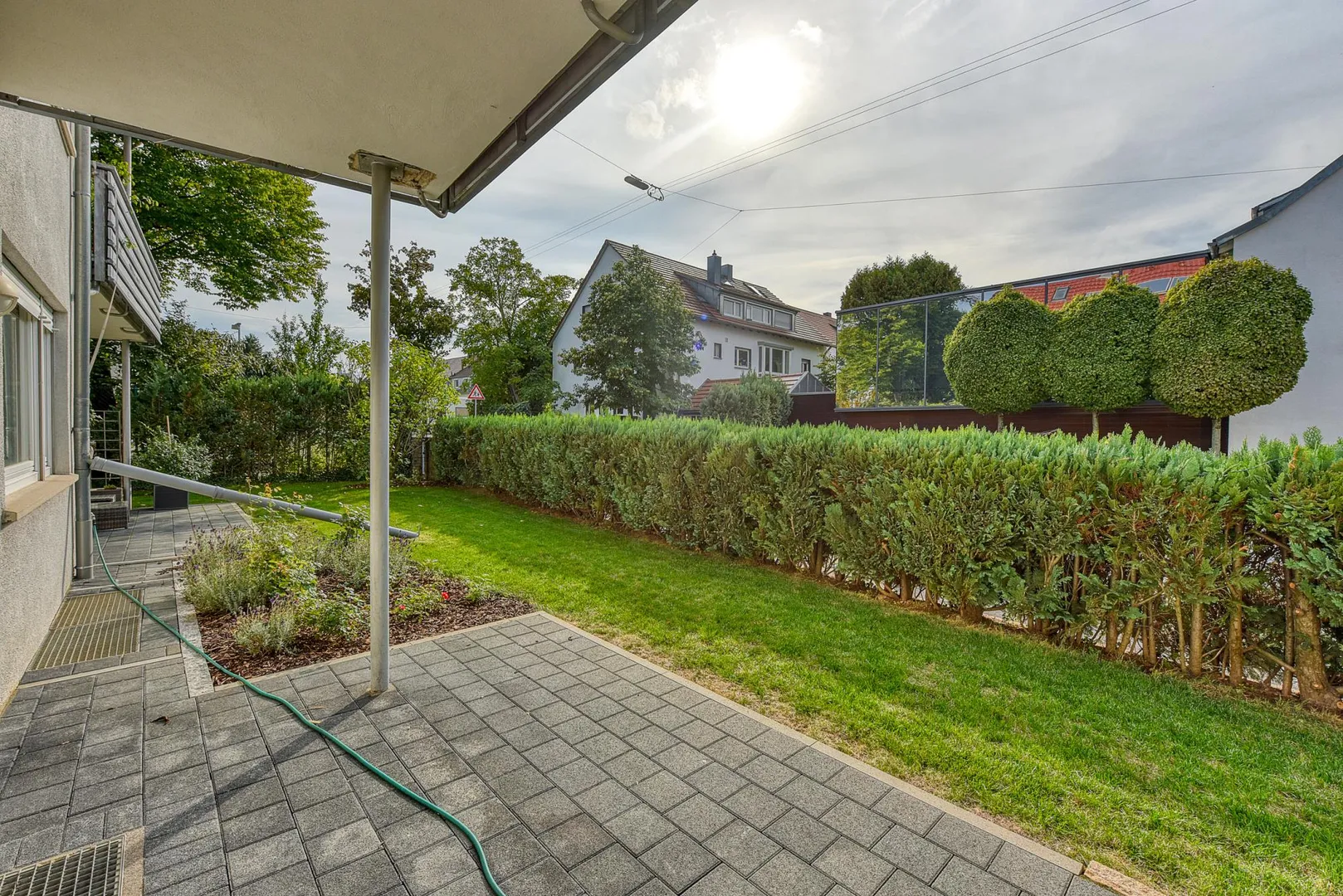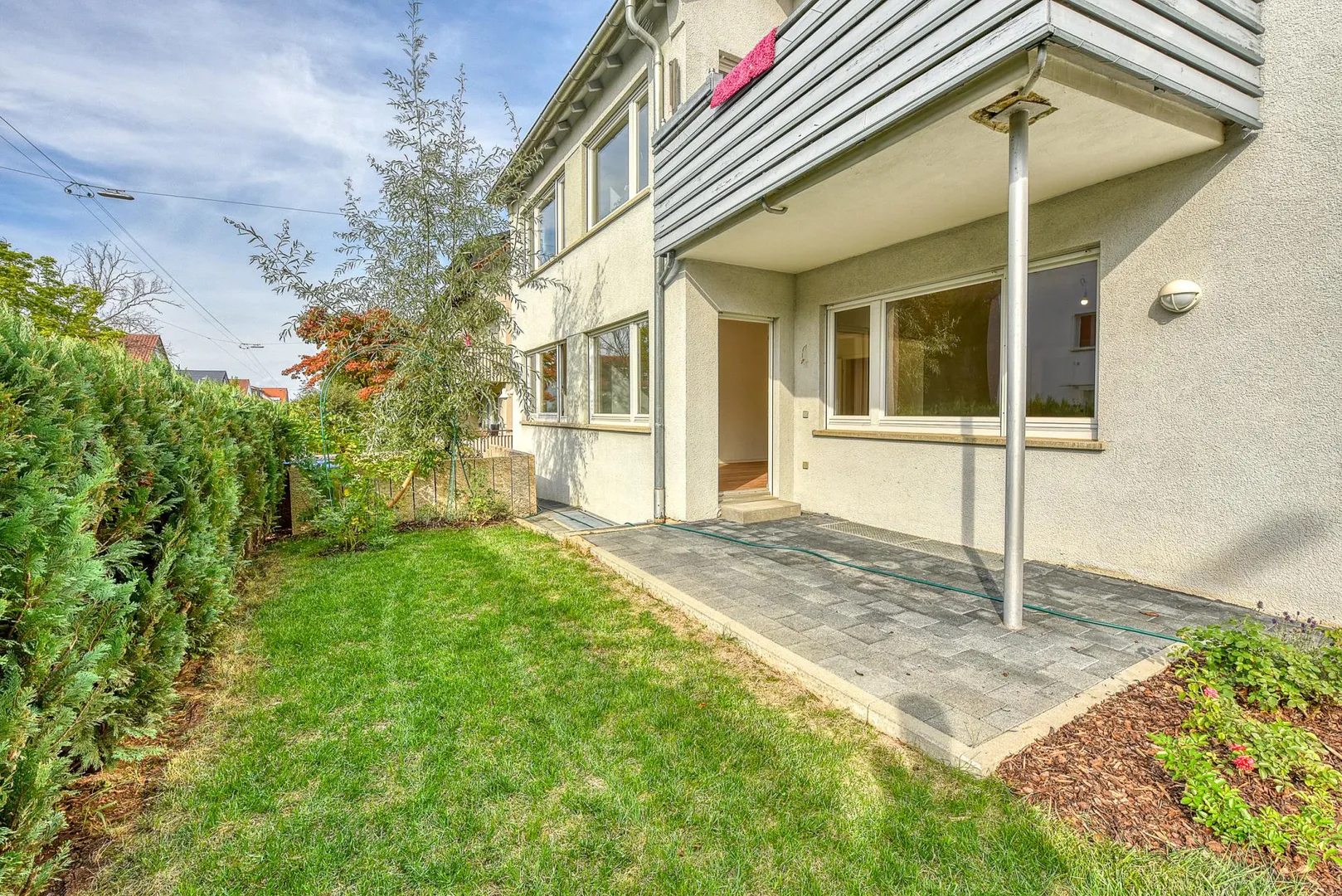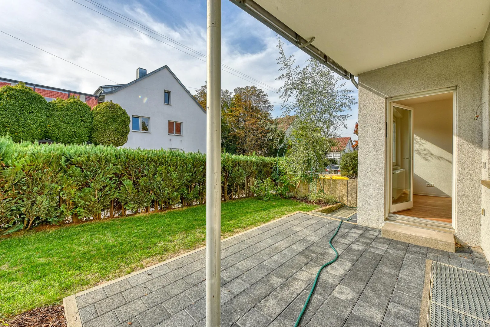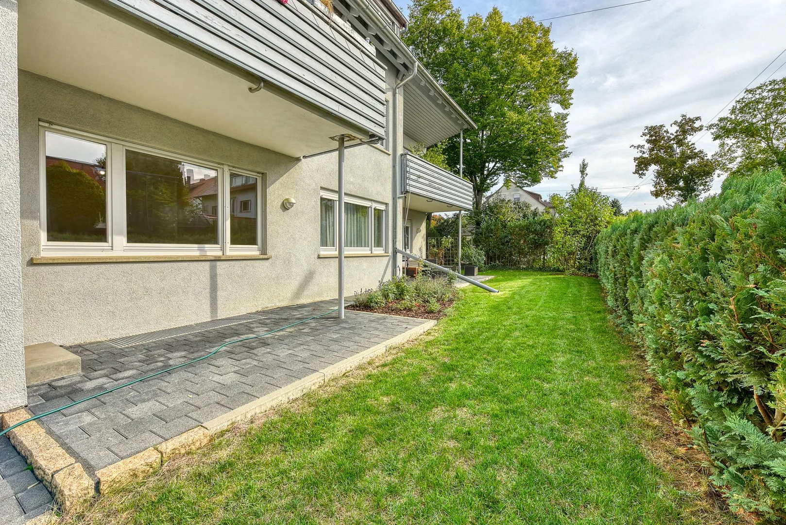 Die Grünfläche vor der Terrasse wird nicht mitvermietet.