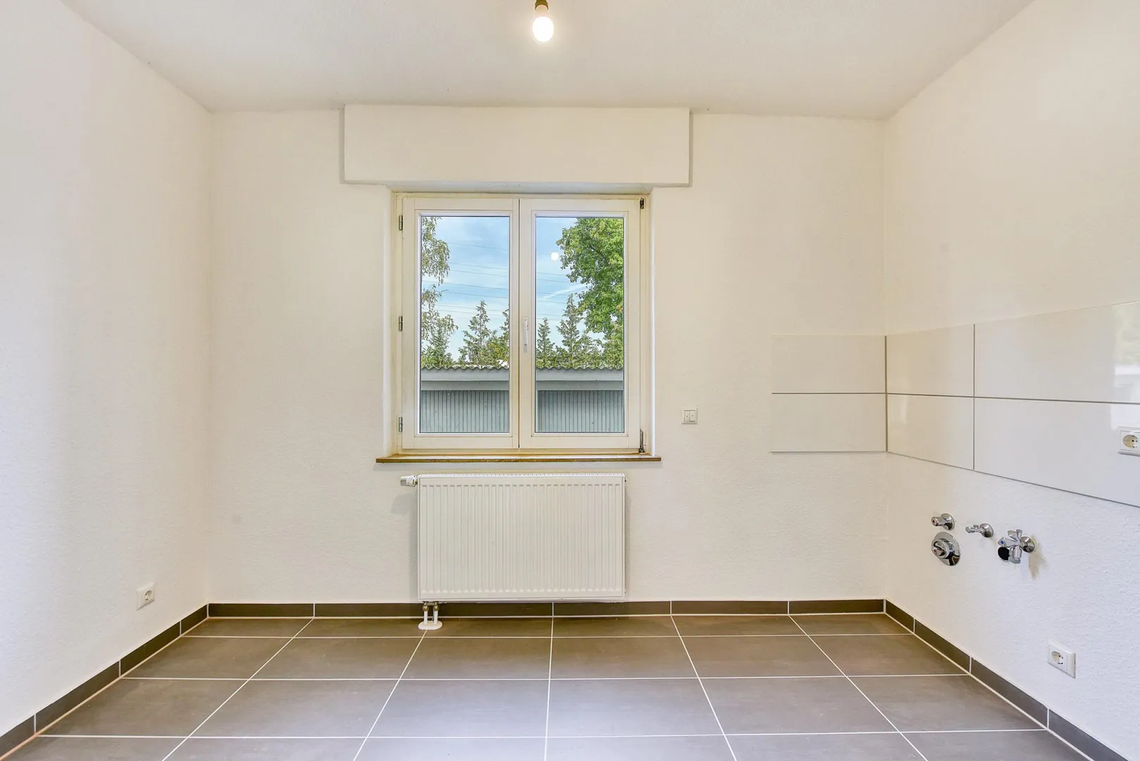 Die Küche verfügt über keine Einbauküche. Eine 60-er Waschmaschine kann in der Küche integriert werden.