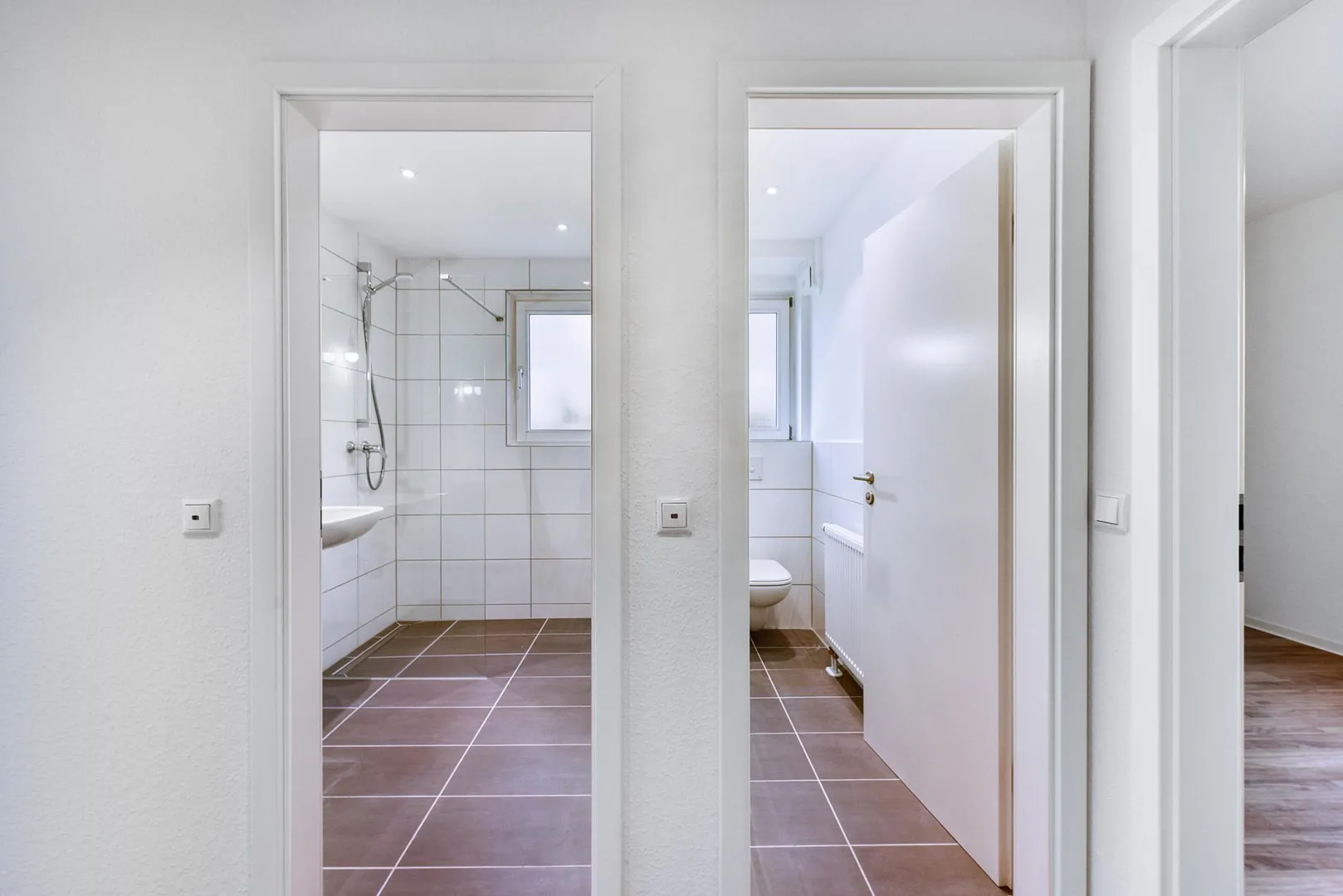 Das Badezimmer verfügt über ein Fenster. Das separate WC verfügt ebenfalls über ein Fenster.
