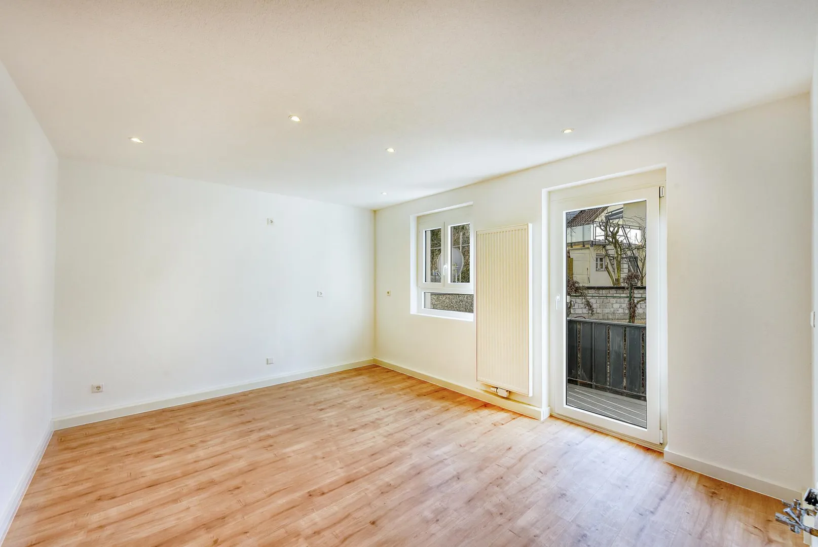 Diese frisch und hochwertig modernisierte 2-Zimmer-Etagen-Wohnung mit kleinem Balkon für eine Einzelperson (Nichtraucher) befindet sich im 1. Obergeschoss.