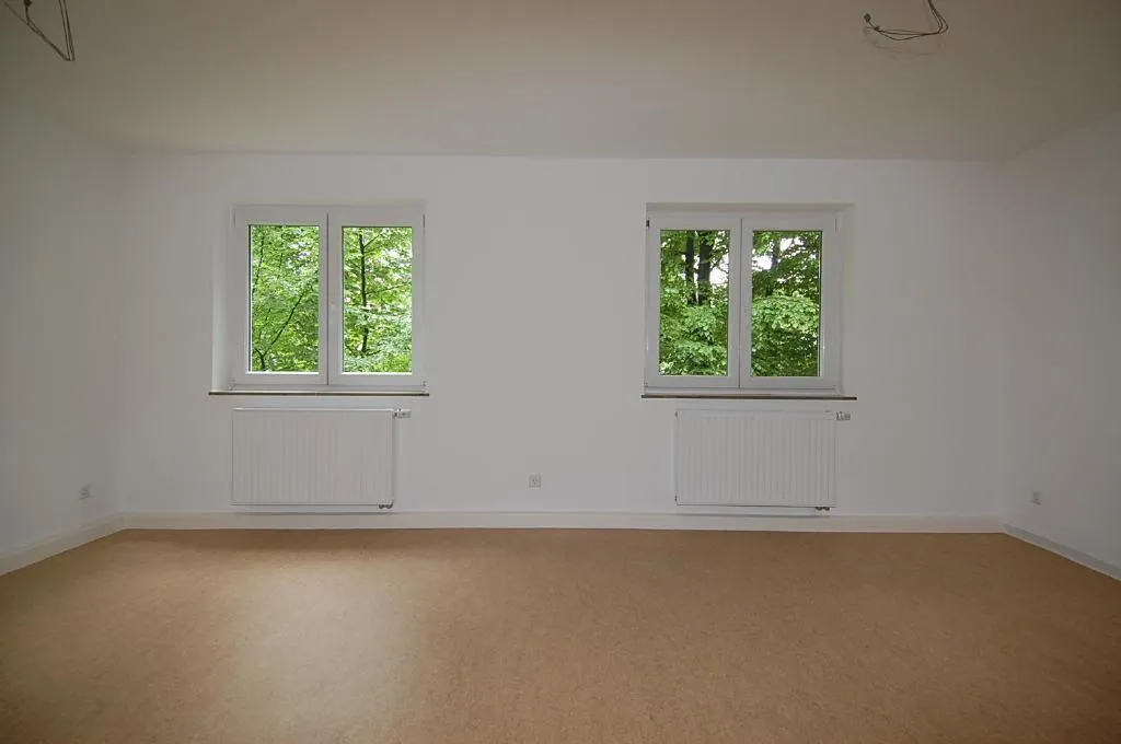 Die Böden sind mit Linoleum ausgestattet. Die Wände sind mit Raufaser tapeziert und frisch gestrichen.